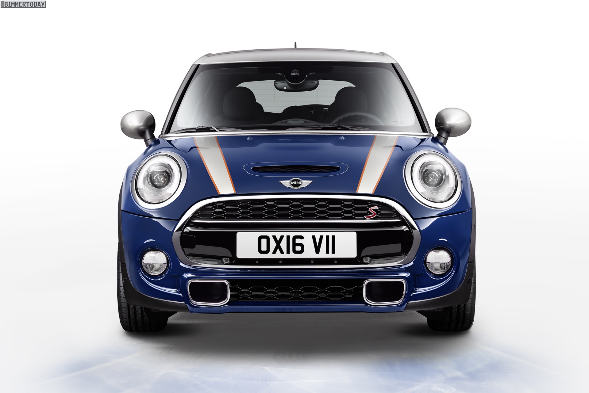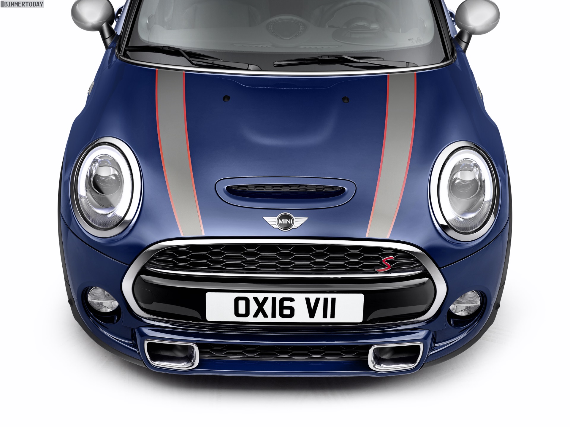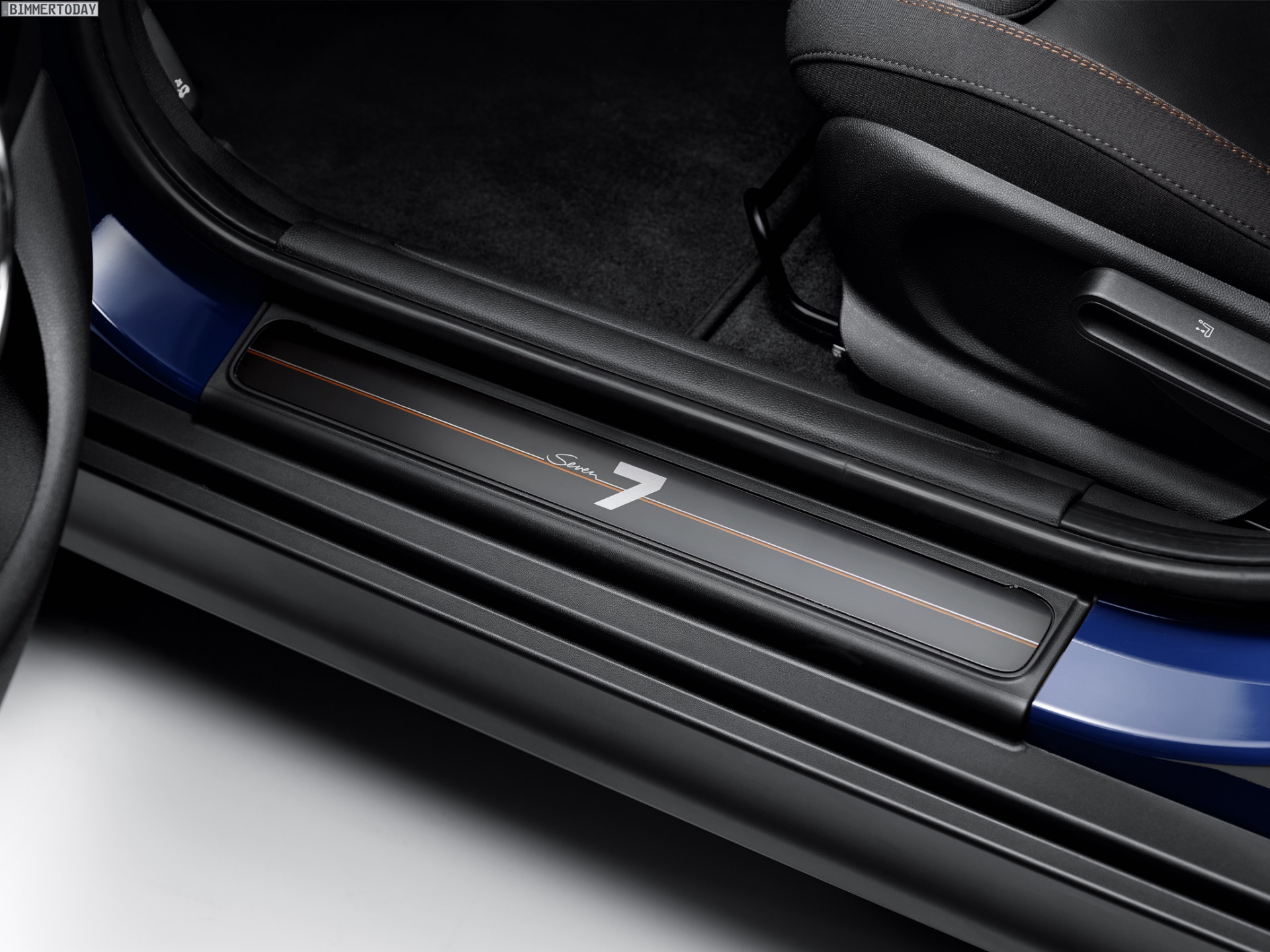 Die zukünftigen Besitzer eines MINI Seven können ihr Fahrzeug aber einigen Vorgaben zum Trotz sehr individuell gestalten. Das Sondermodell ist als Drei- (F56) und Fünftürer (F55) erhältlich und kann auf Wunsch auch in drei anderen Farben als Lapisluxury Blue bestellt werden. Allen Modellen gemeinsam sind die zahlreichen Bezüge zur Zahl 7. Diese taucht unter anderem auf den Side Scuttles der vorderen Kotflügel, auf den Einstiegsleisten und auf der Einfassung des zentralen Rundinstruments im Innenraum auf.