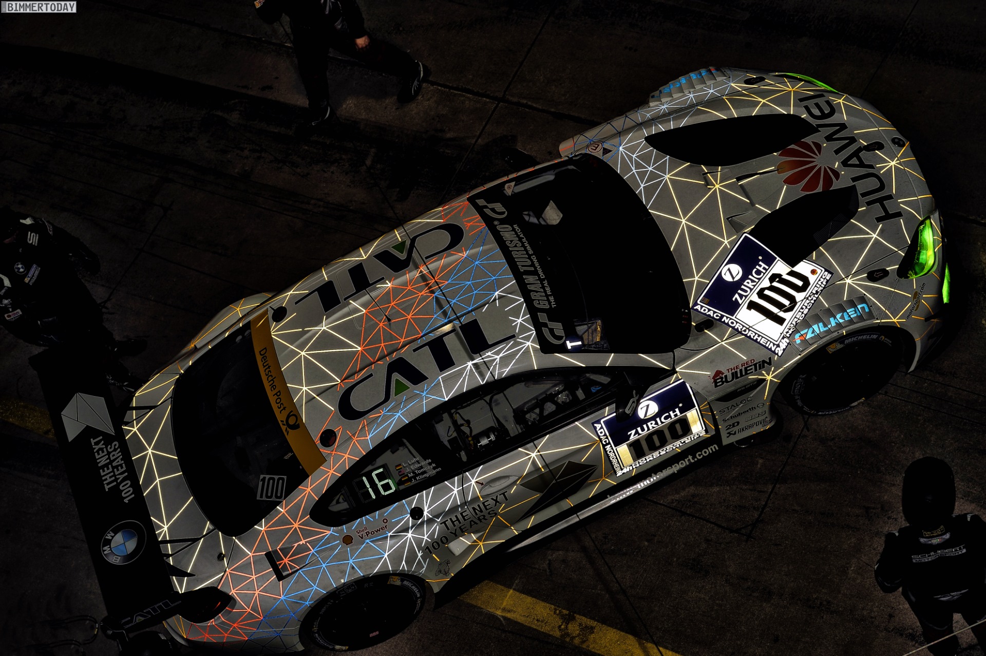 Der BMW M6 GT3 mit Startnummer 100 geht in einem speziellen Design zu Ehren des 100. Geburtstags von BMW an den Start und dürfte auch deshalb unter besonderer Beobachtung vieler Fans stehen. Vor allem bei Nacht sticht die Nummer 100 mit ihrem teilweise reflektierenden Design aus der Masse hervor und dürfte von den Fans an der Strecke jederzeit gut zu erkennen sein.