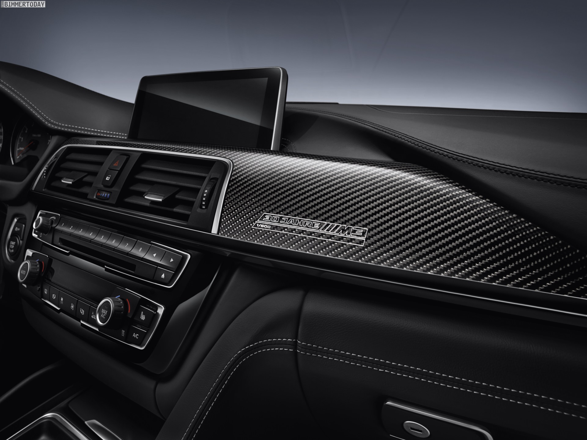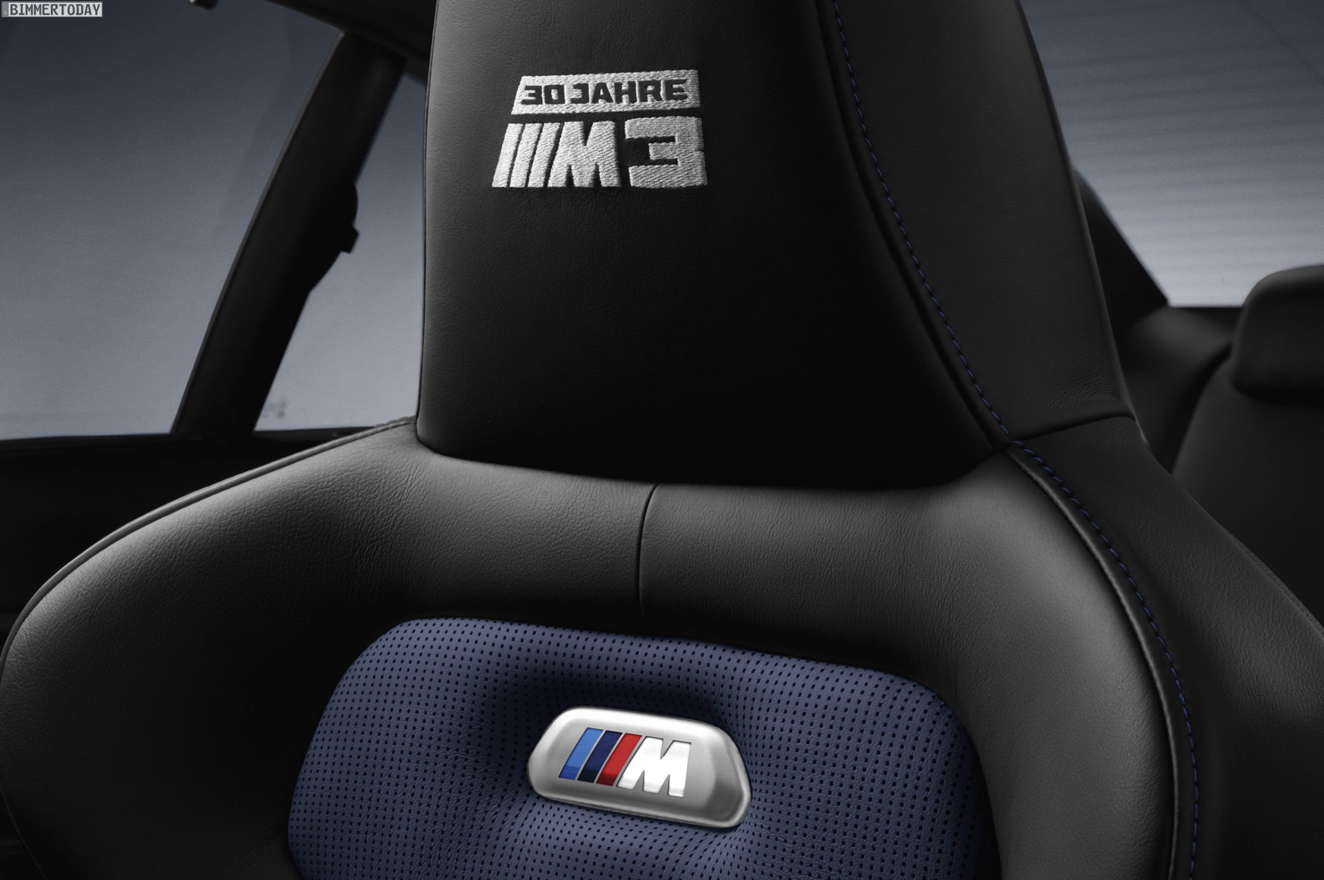 Neben der Lackierung in Macaoblau tragen die 500 “30 Jahre BMW M3″-Modelle auch im Innenraum exklusive Farben, die vom Competition Paket bekannten Sportsitze sind wahlweise in der Bicolor-Variante Schwarz-Fjordblau oder Schwarz-Silverstone erhältlich. Auf den Carbon-Interieurleisten, den Kopfstützen und den vorderen Einstiegsleisten finden sich Schriftzüge, die auf den 30. Geburtstag und die strenge Limitierung des Sondermodells hinweisen.