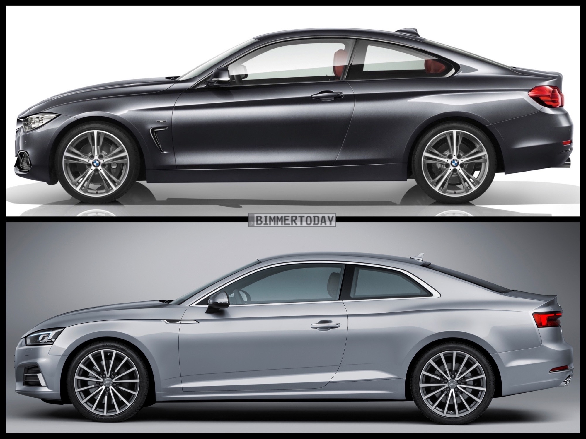 Mit dem neuen Audi A5 erhält das BMW 4er Coupé einen weiteren direkten Rivalen, der die gleiche Zielgruppe ins Visier nimmt und technisch dennoch einen ganz anderen Weg geht. Als technische Basis des zweiten Audi A5 dient der aktuelle A4, auch das Mittelklasse-Coupé aus Ingolstadt basiert folglich auf einer Frontantriebs-Architektur und trägt den größeren Teil des Gesamtgewichts auf der Vorderachse.