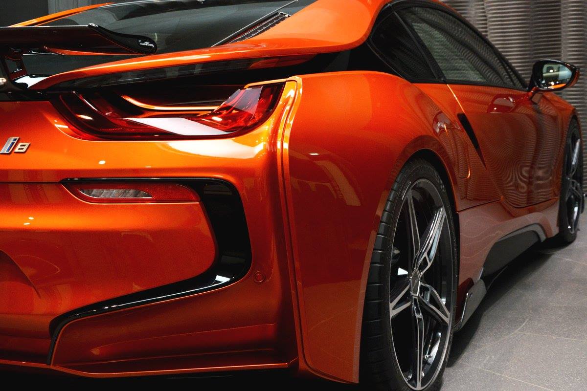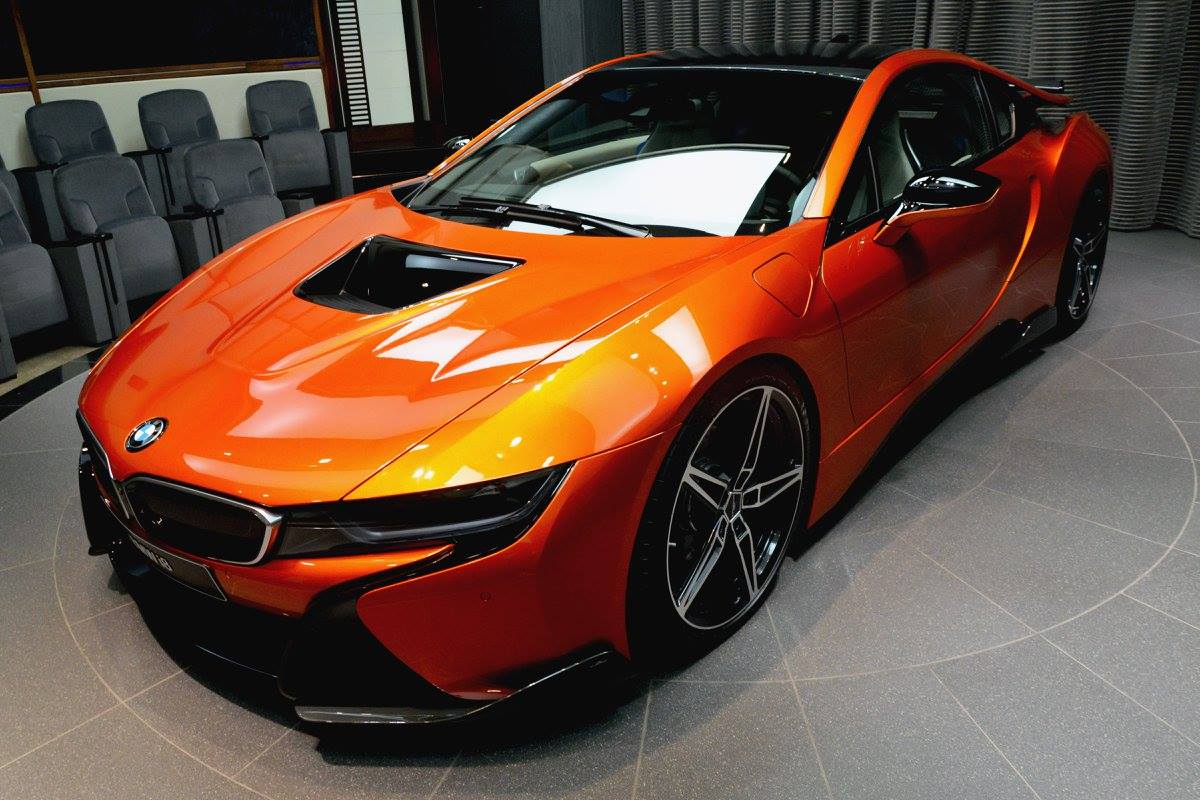 BMW Abu Dhabi Motors reagiert mit den exklusiv aufgelegten Farbenspielen auf den Umstand, dass die Farbpalette ab Werk ziemlich überschaubar ausfällt. Das neue BMW Individual-Programm mit einigen kräftigen Farben für den BMW i8 ist bisher nur in Großbritannien offiziell angelaufen, anderen Kunden stehen Farbtöne wie Java Grün oder Speed Gelb auch weiterhin nicht zur Wahl.