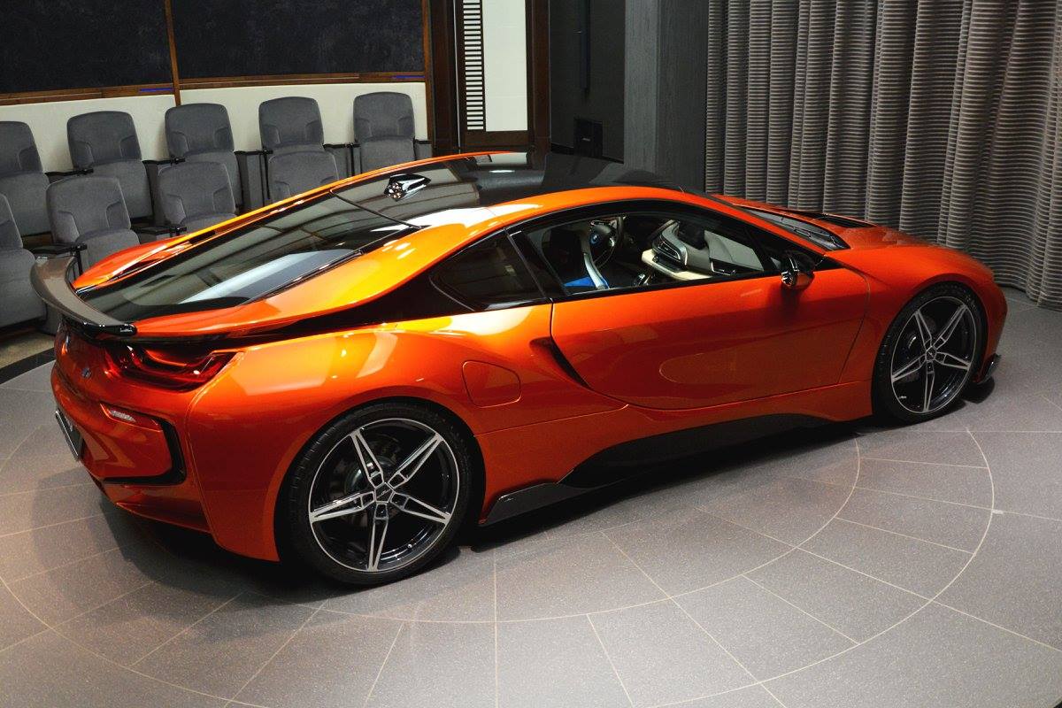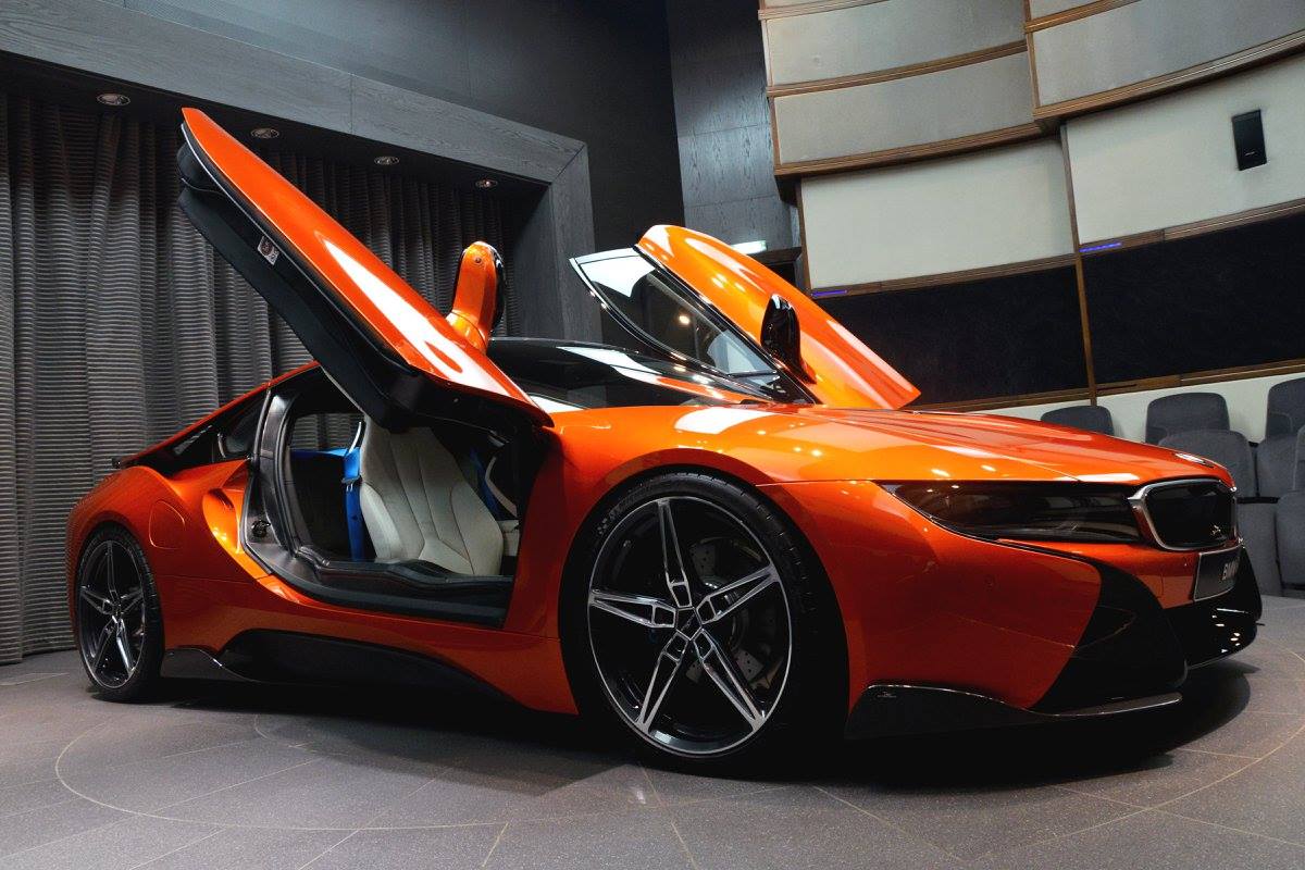 Ziemlich farbenfroh präsentiert sich ein weiterer BMW i8 von Abu Dhabi Motors. Lava Orange nennen die Araber eine neue Lackierung, die ein kräftiges Orange auf den Plug-in-Hybrid zaubert und ihm so zusätzliche Aufmerksamkeit sichern soll. Erst kürzlich war im gleichen Haus ein BMW i8 in Lava Red zu sehen und ist allem Anschein nach gut angekommen.