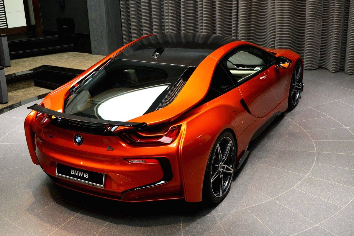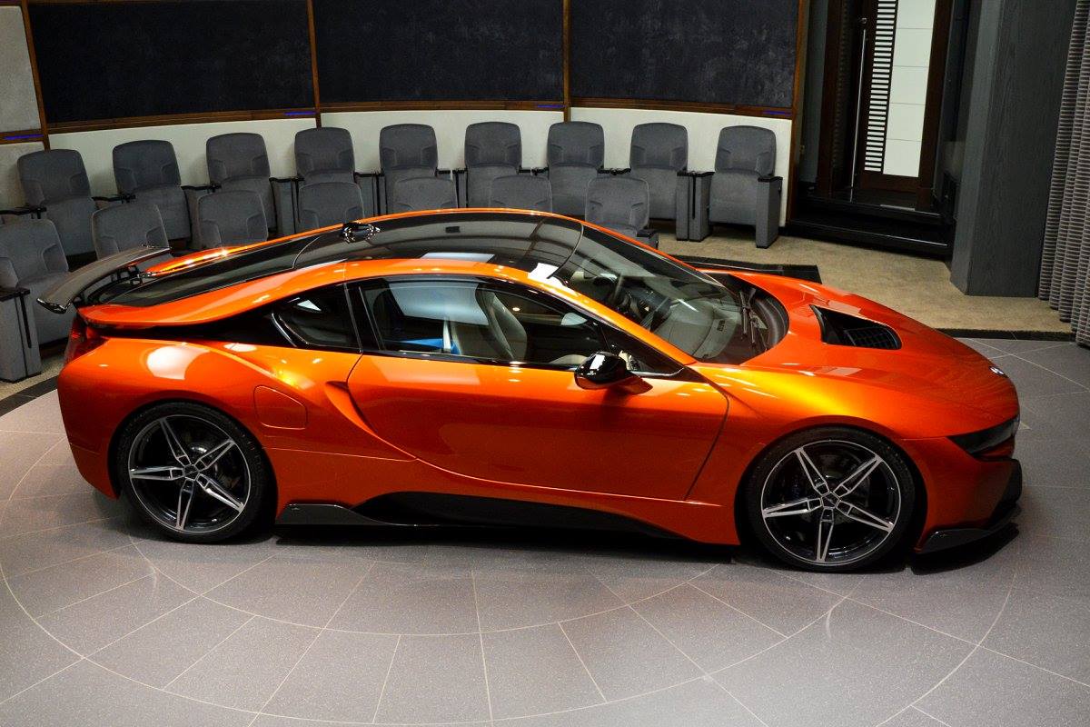 Wie üblich bleibt der Antriebsstrang des BMW i8 unverändert, Abu Dhabi Motors belässt es bei der gewohnten Systemleistung von 362 PS. Verantwortlich dafür sind ein 1,5 Liter kleiner Turbo-Dreizylinder im Heck und ein Elektromotor an der Vorderachse, beide Motoren arbeiten Hand in Hand und beschleunigen den i8 in 4,4 Sekunden von 0 auf 100 km/h. Dank einer elektrischen Reichweite von 37 Kilometern kommt der BMW i8 dennoch auf einen EU-Normverbrauch von nur 2,1 Liter auf 100 Kilometer.