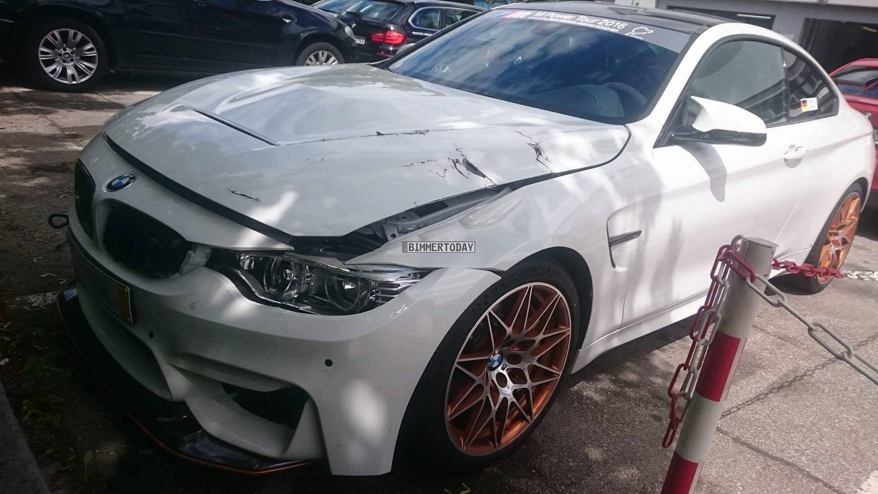 Vor wenigen Wochen begleiteten wir die Auslieferung der ersten BMW M4 GTS für den deutschen Markt, nur wenige Tage später war eines der Fahrzeuge nach einem Unfall schon wieder reif für die Werkstatt. Unser Freund und Leser Todor Todorov hat einen beschädigten BMW M4 GTS auf dem Gelände der Niederlassung München entdeckt und gleich drei Fotos für uns gemacht, um einen der weltweit ersten – aber leider auch nicht einzigen – Crashs mit einem der 700 Sportler zu dokumentieren.