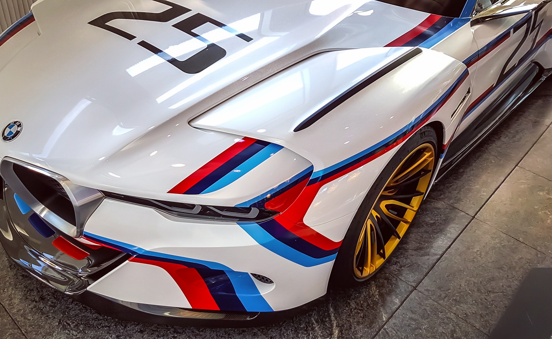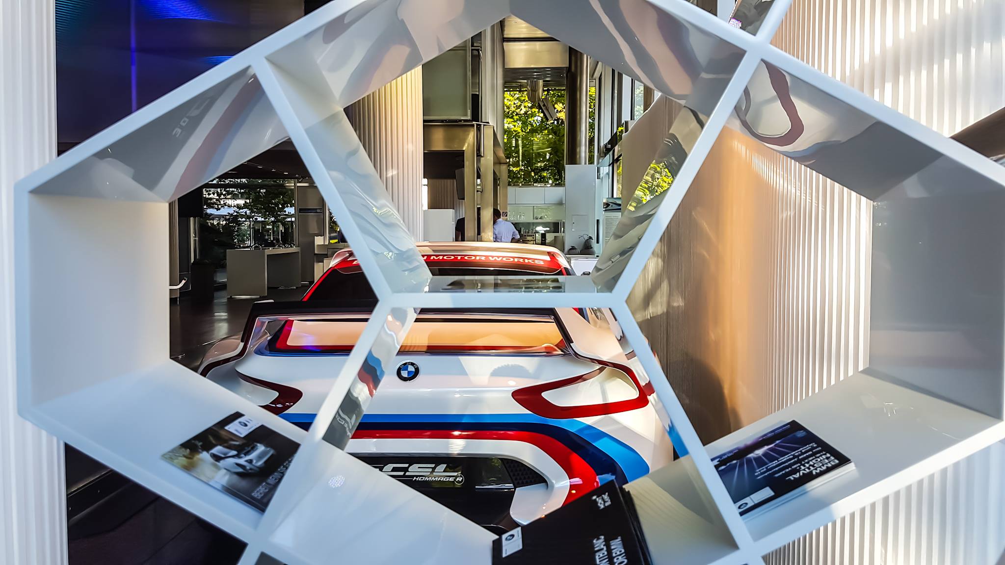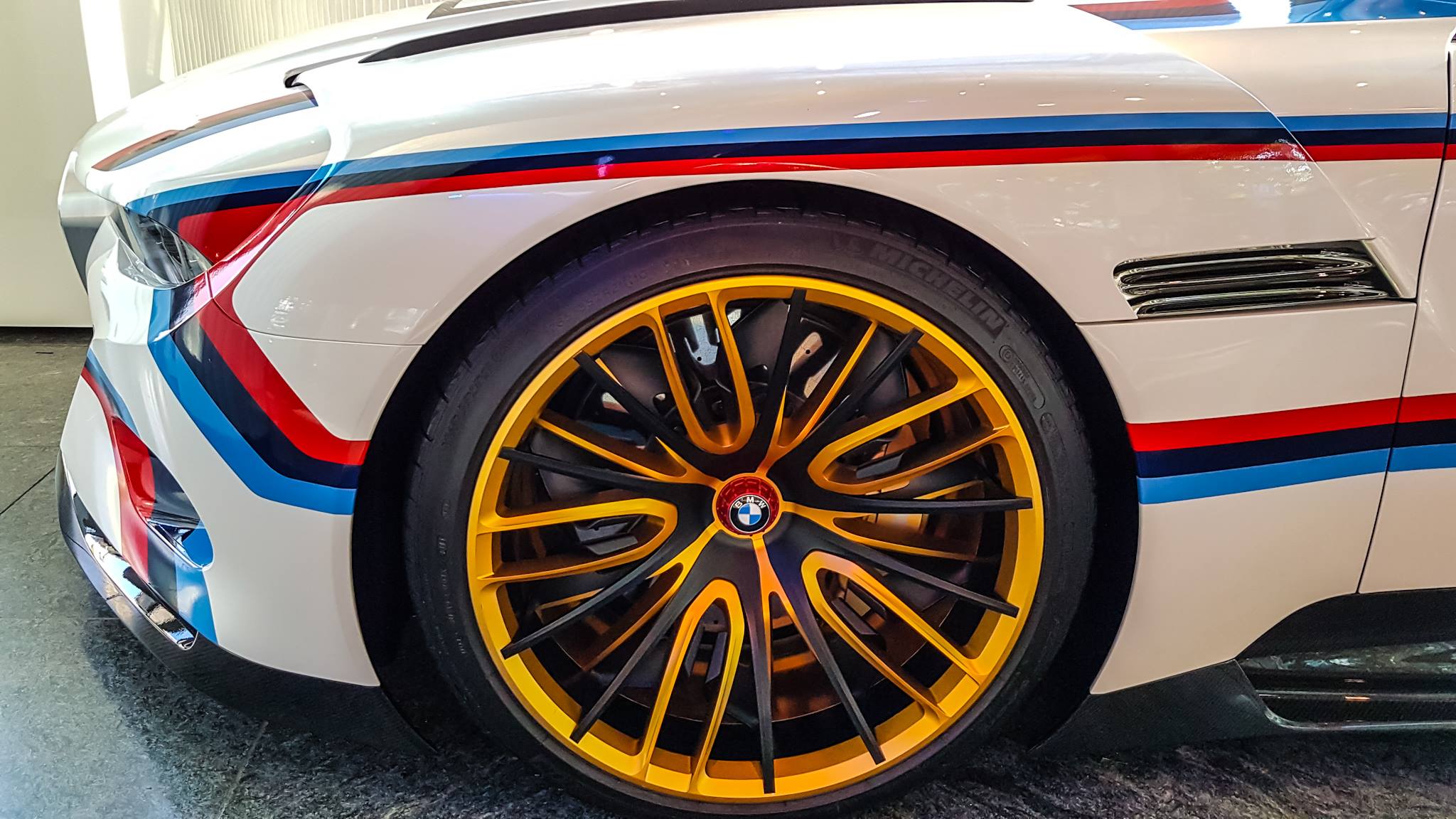 Derzeit ist das Showcar aus dem letzten Jahr im BMW Pavillon München am Lenbachplatz zu sehen und glänzt dabei noch immer mit einer enormen Präsenz, die aus stattlichen Proportionen auf der einen und kräftigen Farben auf der anderen Seite resultiert. Genau wie das historische Vorbild aus den 1970er-Jahren trägt auch die moderne Neuinterpretation goldene Felgen, die neben den BMW Motorsport-Farben auf weißem Grund einen weiteren farbigen Akzent setzen.