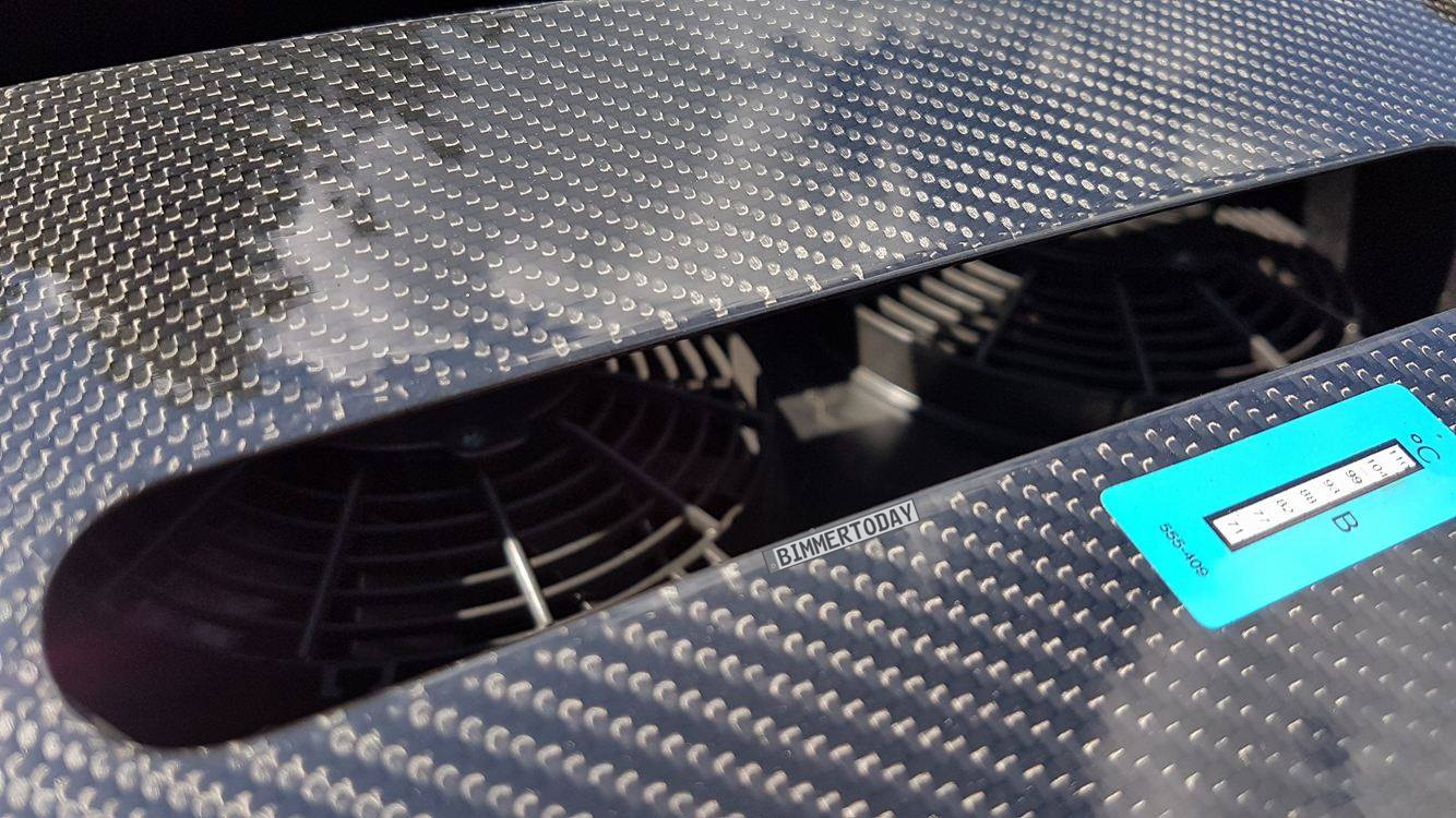 Unter der modifizierten Heckscheibe lassen sich zwei große Lüfter erkennen, die warme Luft vom Dreizylinder-Motor im Heck absaugen und durch die zusätzlichen Öffnungen aus dem Fahrzeug bringen. So kann der praktisch serienmäßige Verbrenner auch den Dauereinsatz auf der Rennstrecke überstehen, ohne in kritische Temperatur-Bereiche vorzudringen.
