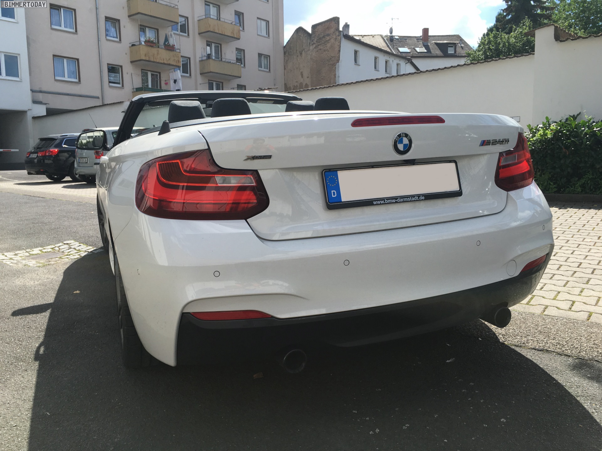 Wir vervollständigen das neue Kompaktsportler-Trio aus München mit den ersten Live-Fotos vom BMW M240i Cabrio F23, das unser Leser Jannis vor wenigen Tagen in Empfang genommen und gleich bei den ersten Sonnenstrahlen für uns fotografiert hat. Der Nachfolger des für nur rund eineinhalb Jahre angebotenen M235i Cabrio befindet sich erst seit wenigen Tagen im Handel und bietet neben dem neuen Schriftzug am Heck vor allem einen neuen Motor, der noch etwas mehr Leistung hat und so für nochmals verbesserte Fahrleistungen sorgt.