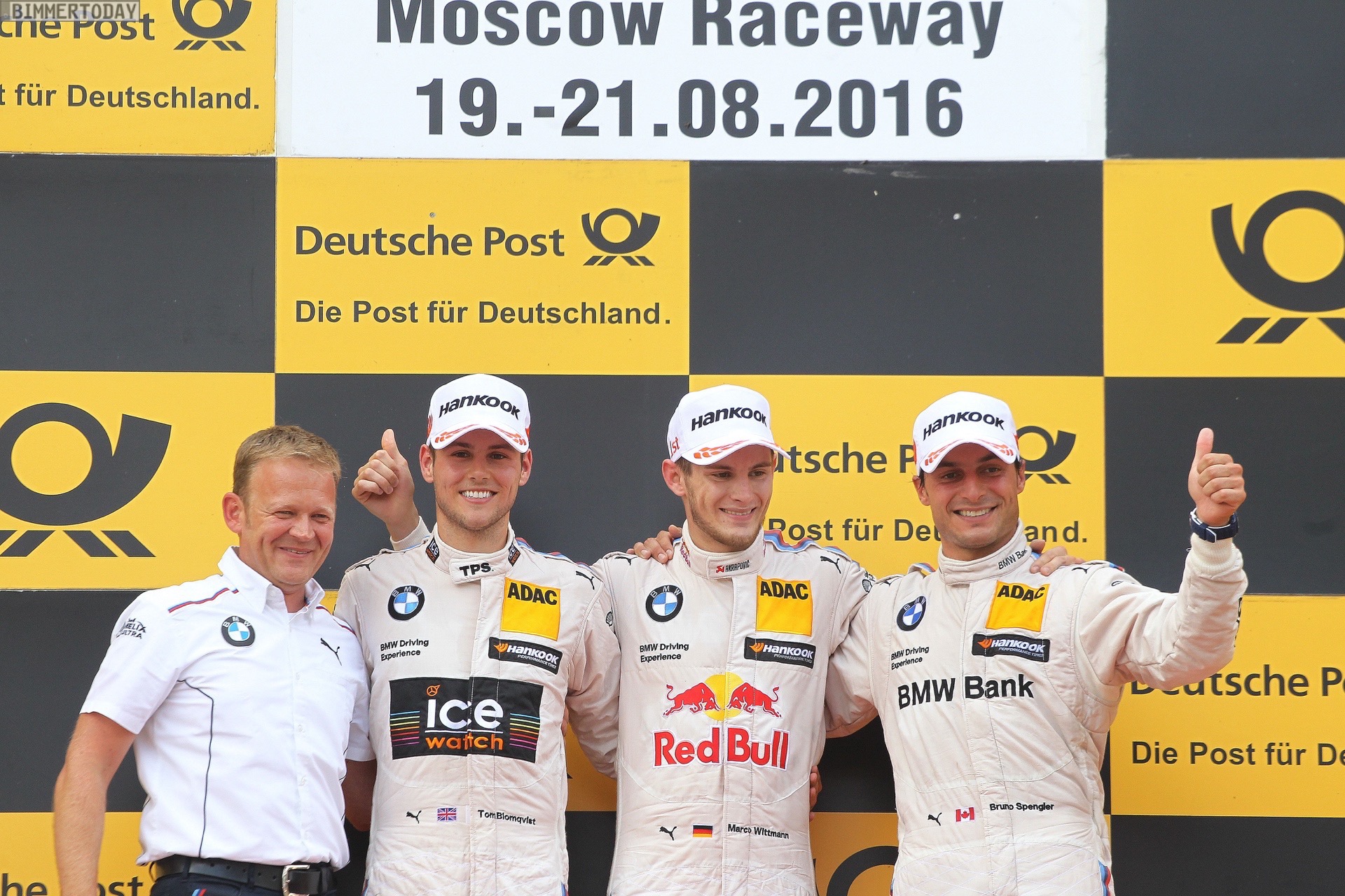 Mit einer starken Performance am Sonntag hat sich BMW Motorsport in der DTM 2016 die Führung in der Meisterschaft zurückerobert. Auf dem Moscow Raceway dominierte der BMW M4 DTM zunächst das Qualifying und sicherte den BMW-Piloten die ersten drei Startplätze, danach gaben die Münchener auch im Rennen den Ton an und sicherten sich gleich die ersten vier Plätze: Beim zweiten Saisonsieg von Marco Wittmann fuhren Tom Blomqvist, Bruno Spengler und Augusto Farfus auf die weiteren Spitzenplätze und sicherten ein vollständig von BMW belegtes Podium.