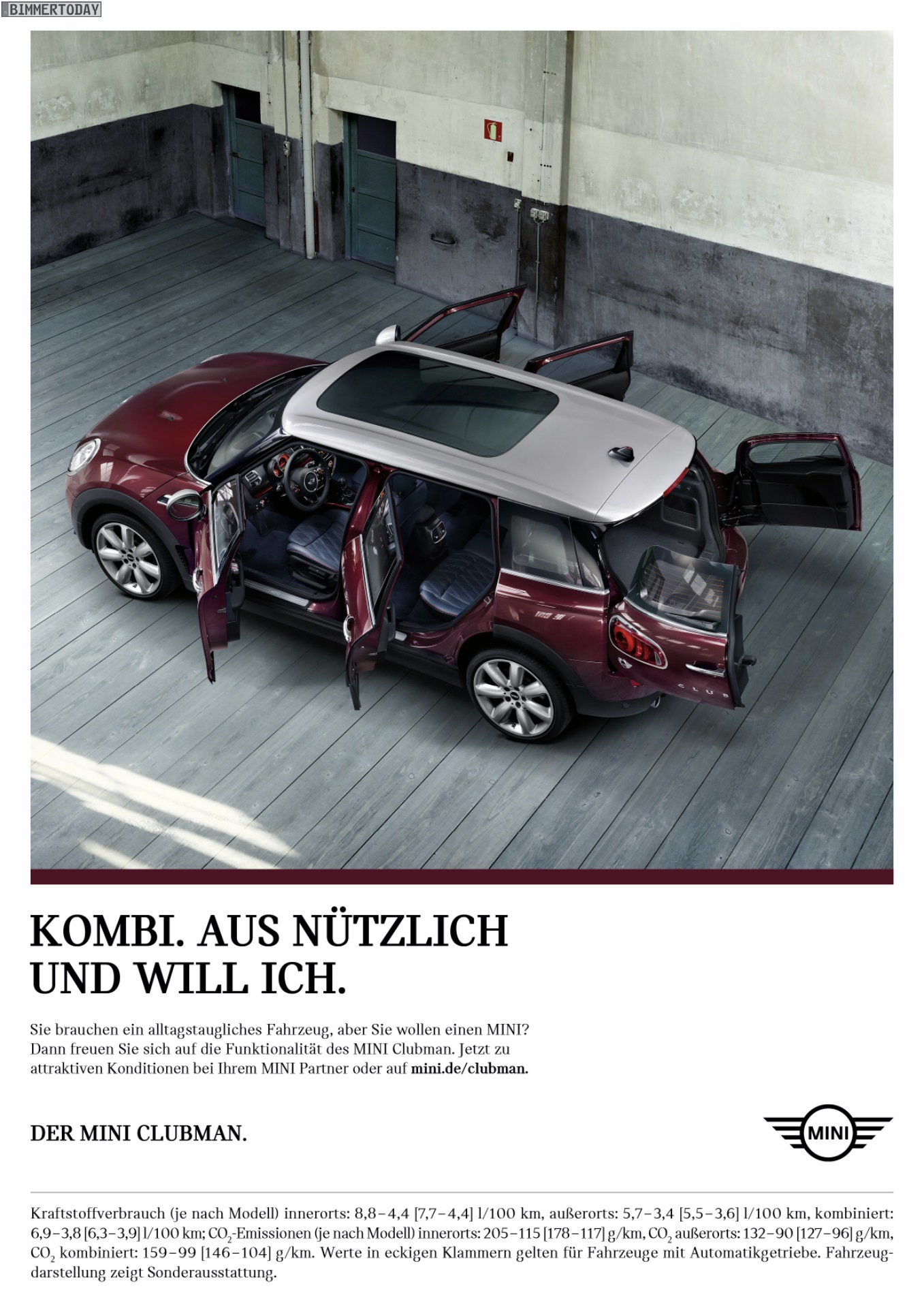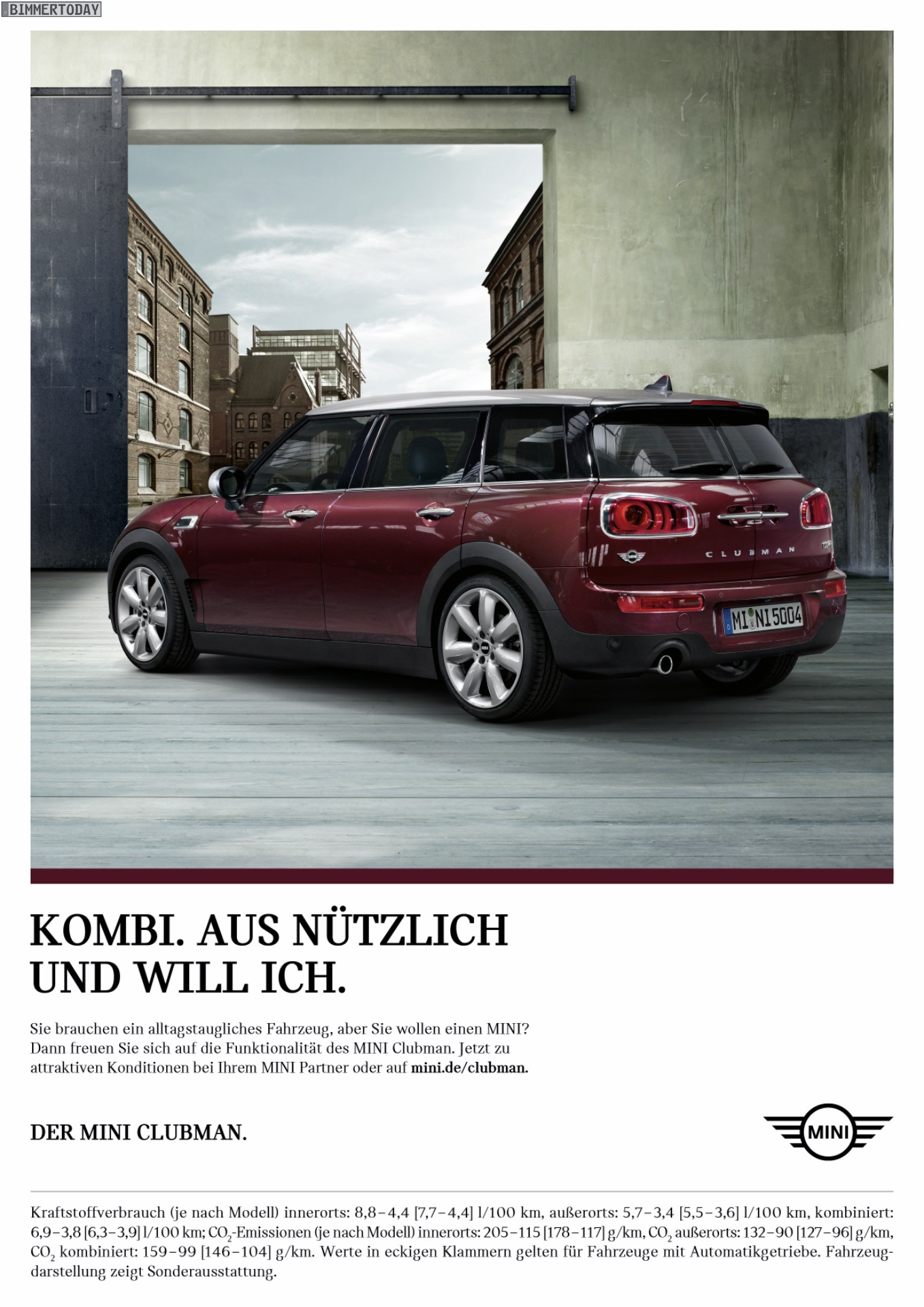 Im Sommer 2016 macht MINI mit einer neuen Werbe-Kampagne erneut auf das jüngste Mitglied der Modellpalette aufmerksam und rückt dabei erwartungsgemäß die praktischen Qualitäten in den Vordergrund. Der MINI Clubman F54 wird als Kombi(nation) aus “nützlich” und “will ich” dargestellt, weil er neben dem sympathischen Markenimage und dem unverwechselbaren Design auch bis zu 1.250 Liter Stauraum bietet – nur 20 Liter weniger als der Klassenprimus VW Golf.