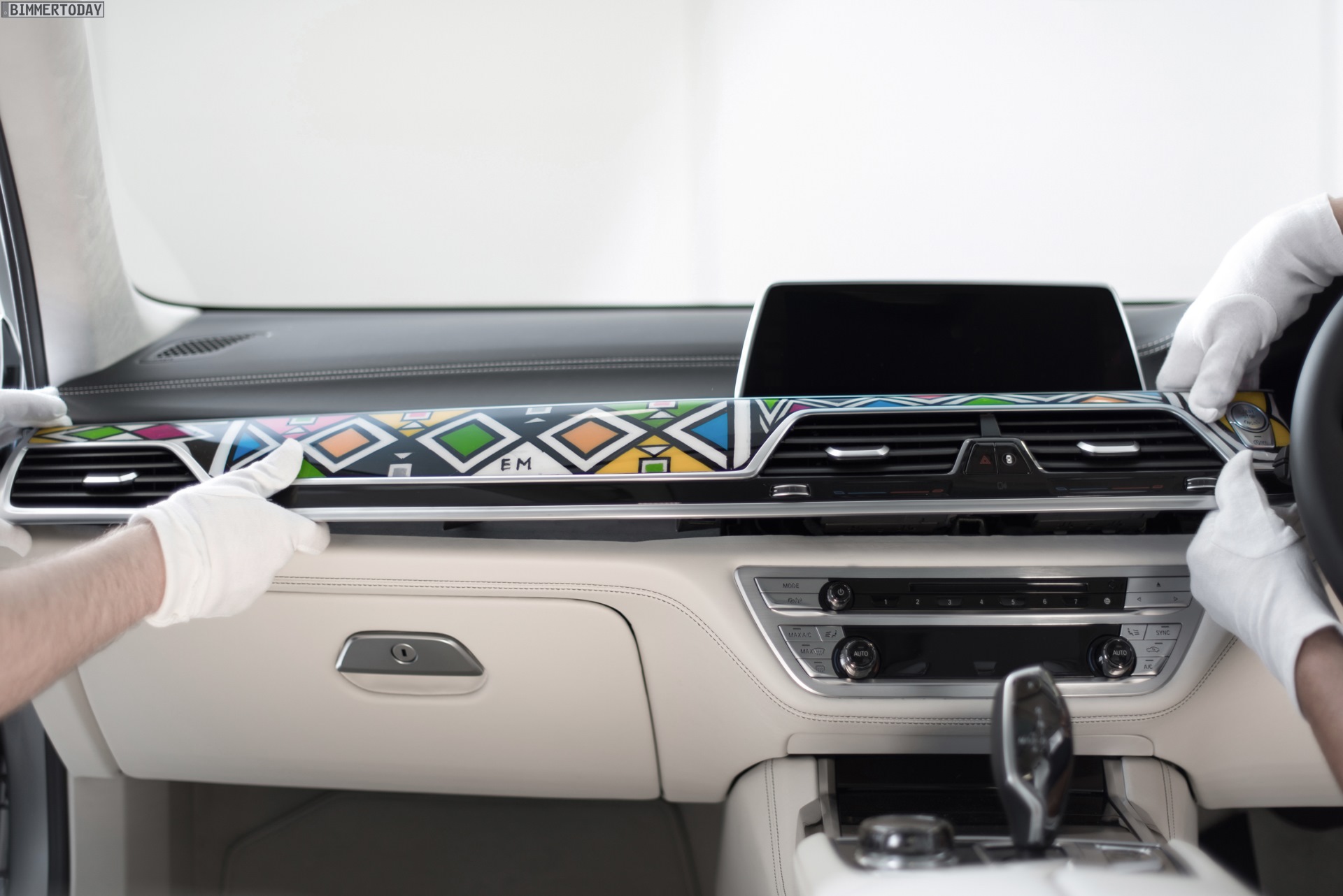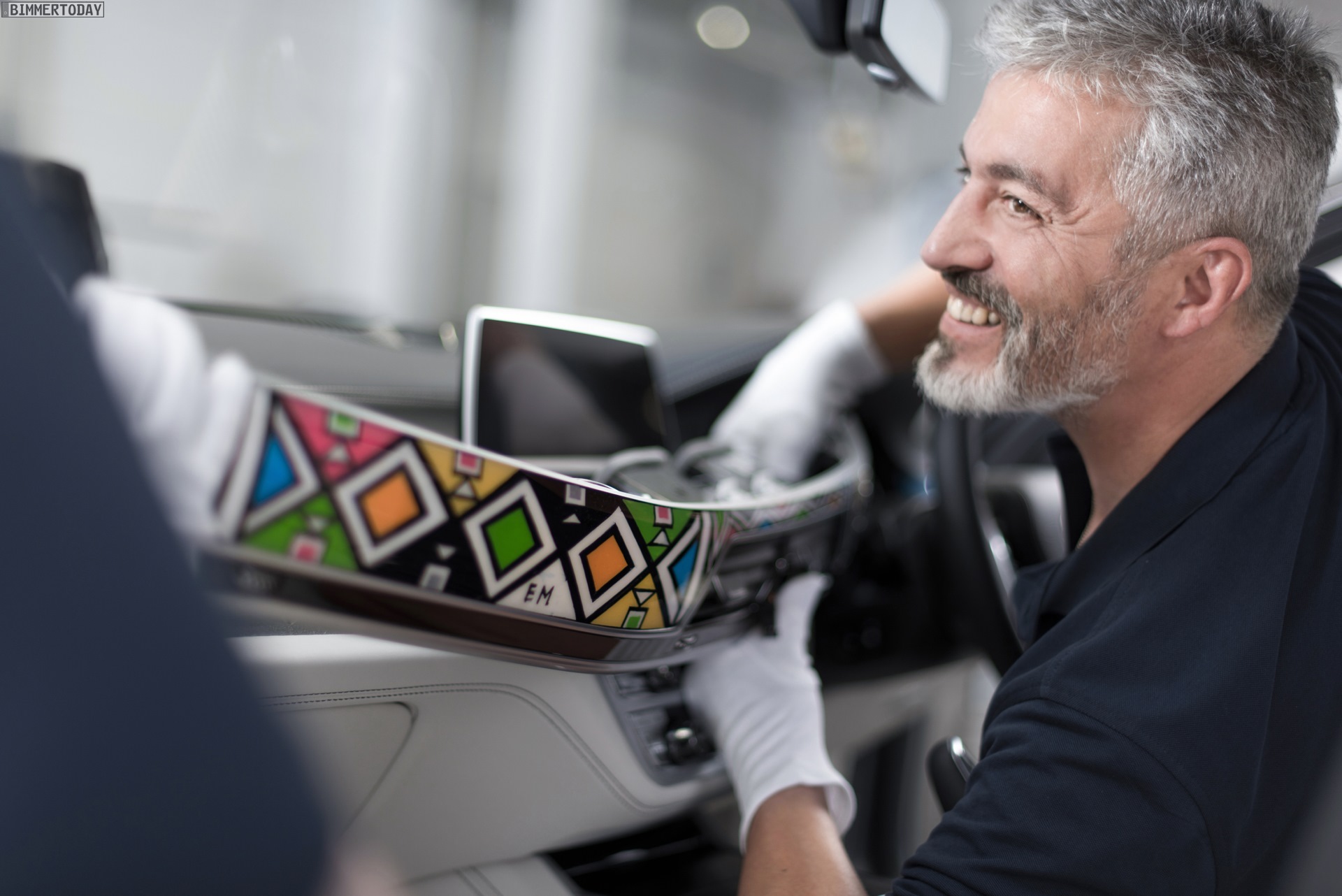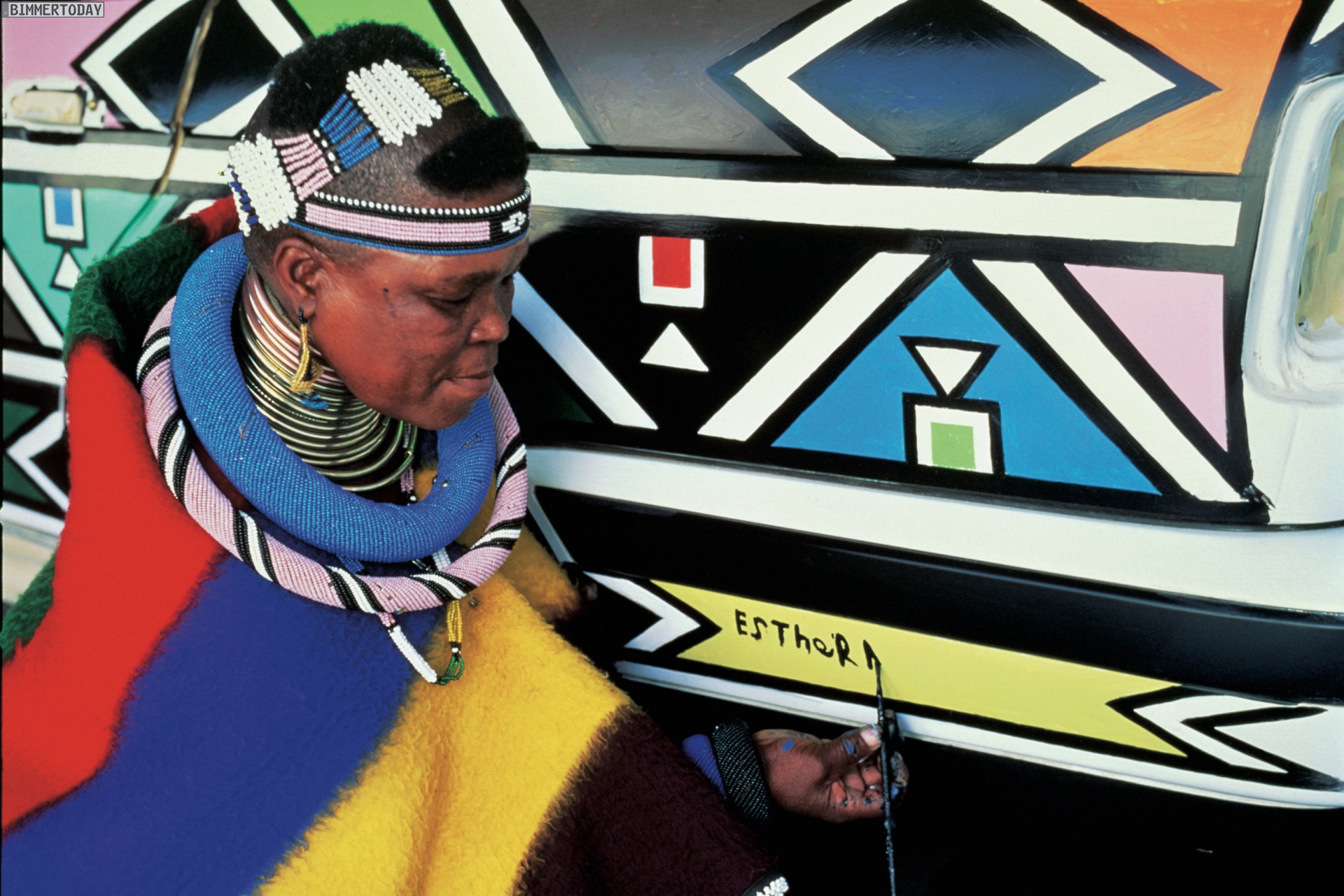 Ein Vierteljahrhundert nach ihrem ersten BMW Art Car hat die südafrikanische Künstlerin Esther Mahlangu erneut ein Automobil aus München verziert. Stand bei ihrem BMW 525i E34 noch das Exterieur im Fokus, ging es nun ausschließlich um den Innenraum. Für die BMW Individual Manufaktur gestaltete Esther Mahlangu die Interieur-Leisten eines aktuellen BMW 7er G12 und bringt so die deutsche Hightech-Limousine mit traditionellen südafrikanischen Mustern zusammen.
