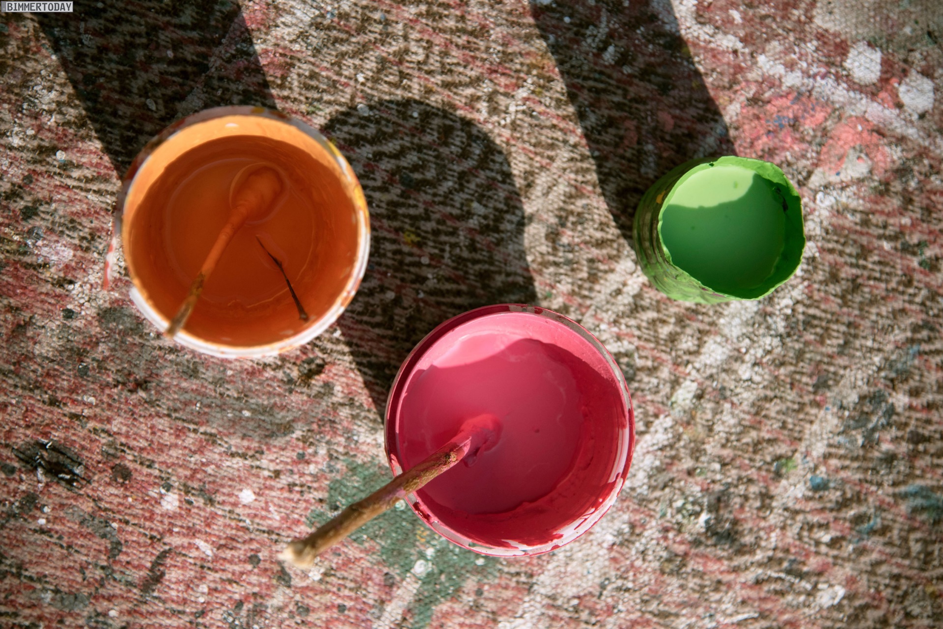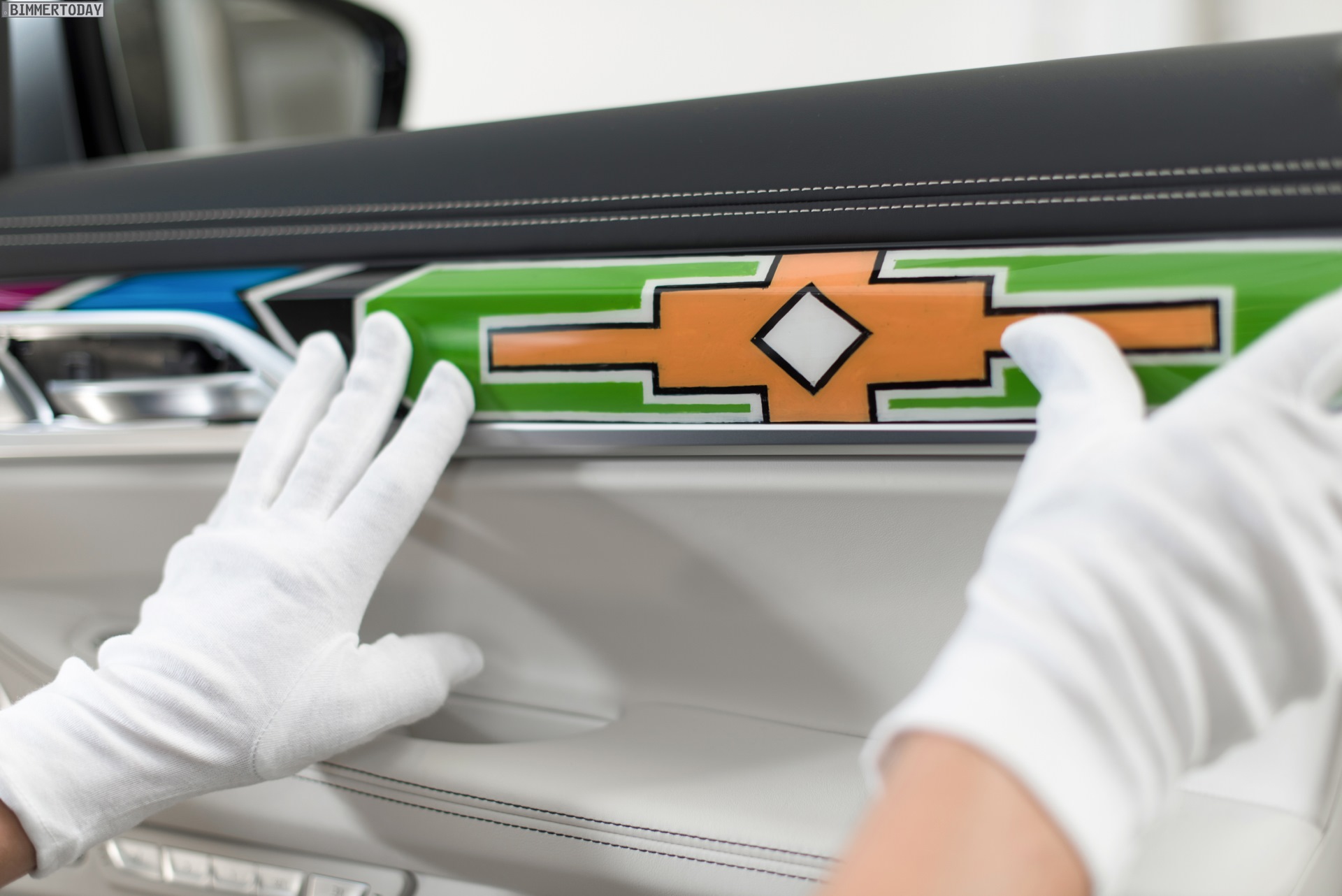 Für das Projekt stellte die BMW Individual Manufaktur der Künstlerin weiß eingefärbte Edelholz-Furniere zur Verfügung, im Anschluss an den künstlerischen Prozess wurden die neuen Interieurleisten bei BMW versiegelt und so auf den dauerhaften Einsatz im Automobil vorbereitet. Das Ergebnis ist ein faszinierendes Einzelstück, das mit seinen kräftigen Farben begeistert und definitiv von jedem Mitfahrer als etwas ganz Besonderes wahrgenommen wird.