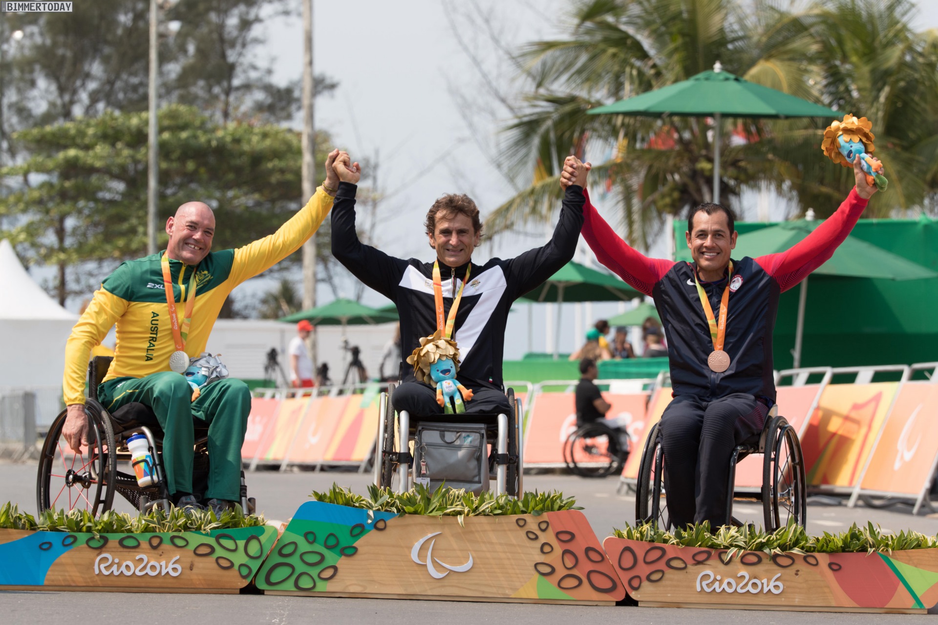 Alessandro Zanardi: “Es war eine lange Reise, die praktisch am Tag nach den Spielen von London begonnen hat, als ich beschlossen habe, mich in meinem Leben auf einen neuen Horizont zu konzentrieren – und zwar auf Rio de Janeiro. Man muss auch wissen, dass das Stadion und die Sportstätten in Rio dort gebaut wurden, wo früher die Indycar-Strecke lag. Ich war dort immer schnell, habe aber nie ein Rennen gewonnen. Tief in mir dachte ich also, dass dies nun eine weitere Möglichkeit sein wird, diese Bilanz geradezurücken und in Rio endlich etwas zu erreichen. Nach den aufregenden Jahren der Vorbereitung, und angesichts der Tatsache, dass mir der Kurs technisch gesehen eigentlich weniger liegt, ist es einfach fantastisch, erneut Gold in Händen zu halten.
