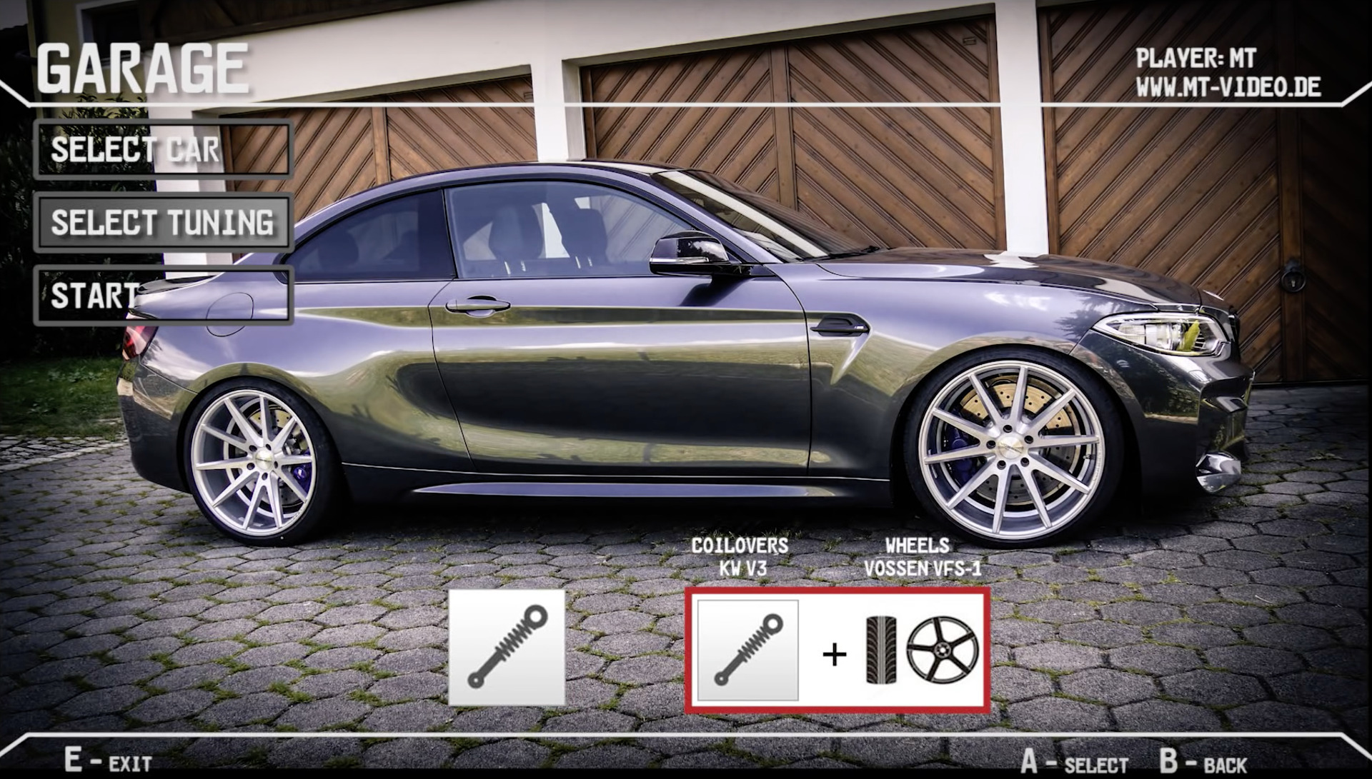 Nach der Wahl des BMW M2 Coupé in der gut bestückten Garage entscheidet sich der “Spieler” für ein KW V3 Gewindefahrwerk mit entsprechender Tieferlegung, außerdem werden die Serien-Felgen durch 20 Zoll große Leichtmetallräder von Vossen Wheels ersetzt. Die VFS-1 kommen auch dank der Tieferlegung besonders gut zur Geltung und heben den gezeigten BMW M2 nicht nur in der Seitenansicht vom Serienfahrzeug ab.