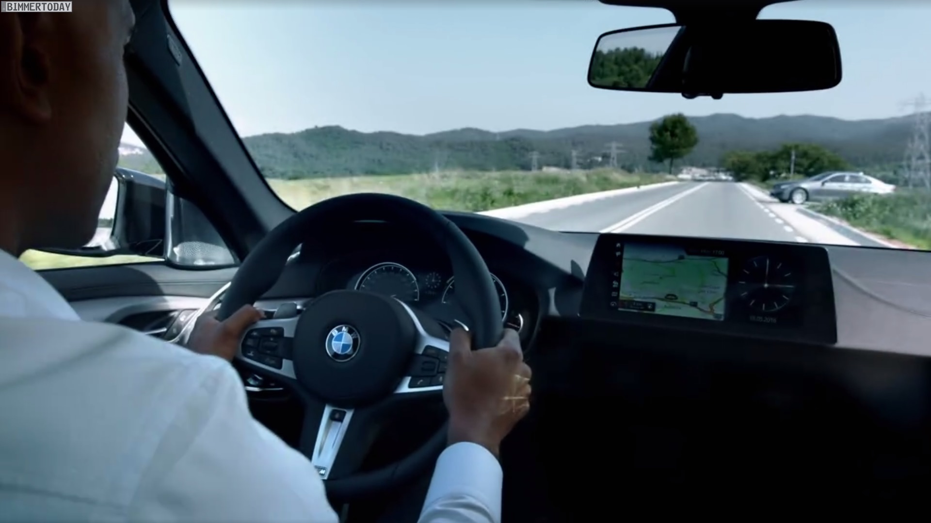 Außerdem sehen wir erstmals den Bereich des vorderen Kotflügels, der stark an den aktuellen 7er erinnert – und das gezeigte Fahrzeug endgültig als ein Exemplar mit M Sportpaket entlarvt. Die schwarzen Felgen passen dabei hervorragend zu den schwarz verchromten Air Breather-Elementen, die für einen Luftauslass hinter den vorderen Radhäusern sorgen und so ihren Beitrag zum aerodynamischen Gesamtkonzept leisten. Den eigentlichen Schwerpunkt legt das neue Teaser-Video allerdings auf die Assistenzsysteme des BMW 5er G30, schließlich soll die Limousine in dieser Hinsicht sogar den aktuellen 7er übertreffen.