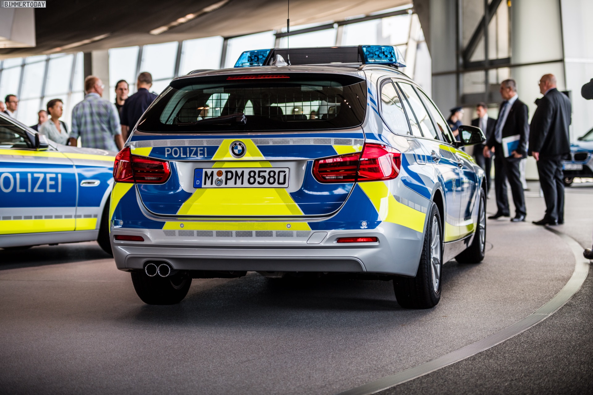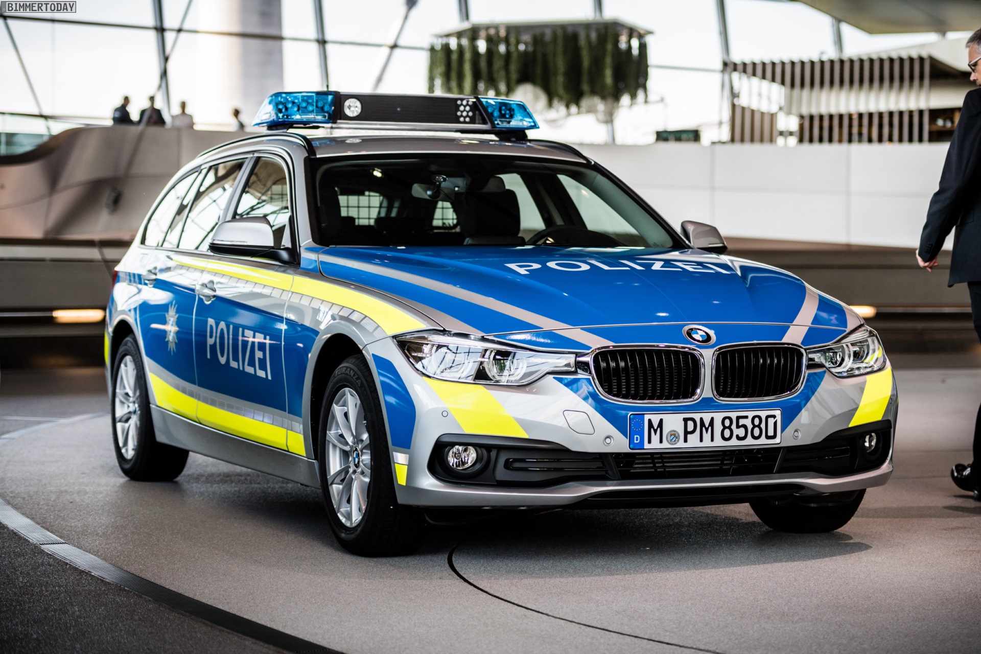 Genau wie viele andere Bundesländer setzt auch der Freistaat Bayern auf Einsatz-Fahrzeuge von BMW. Die Münchner schöpfen aus einer über 60-jährigen Erfahrung im Bau von Polizeiautos, was auch gestern in der BMW Welt zu sehen war: Auch ein Barockengel im Polizei-Design war vor Ort, mit diesem begann das Polizei-Engagement von BMW in den 50er-Jahren des vergangenen Jahrhunderts. Noch in diesem Jahr übernimmt die Polizei Bayern 190 BMWs im neuen Design, 2017 folgt eine noch größere Anzahl der blauen Streifenwagen.
