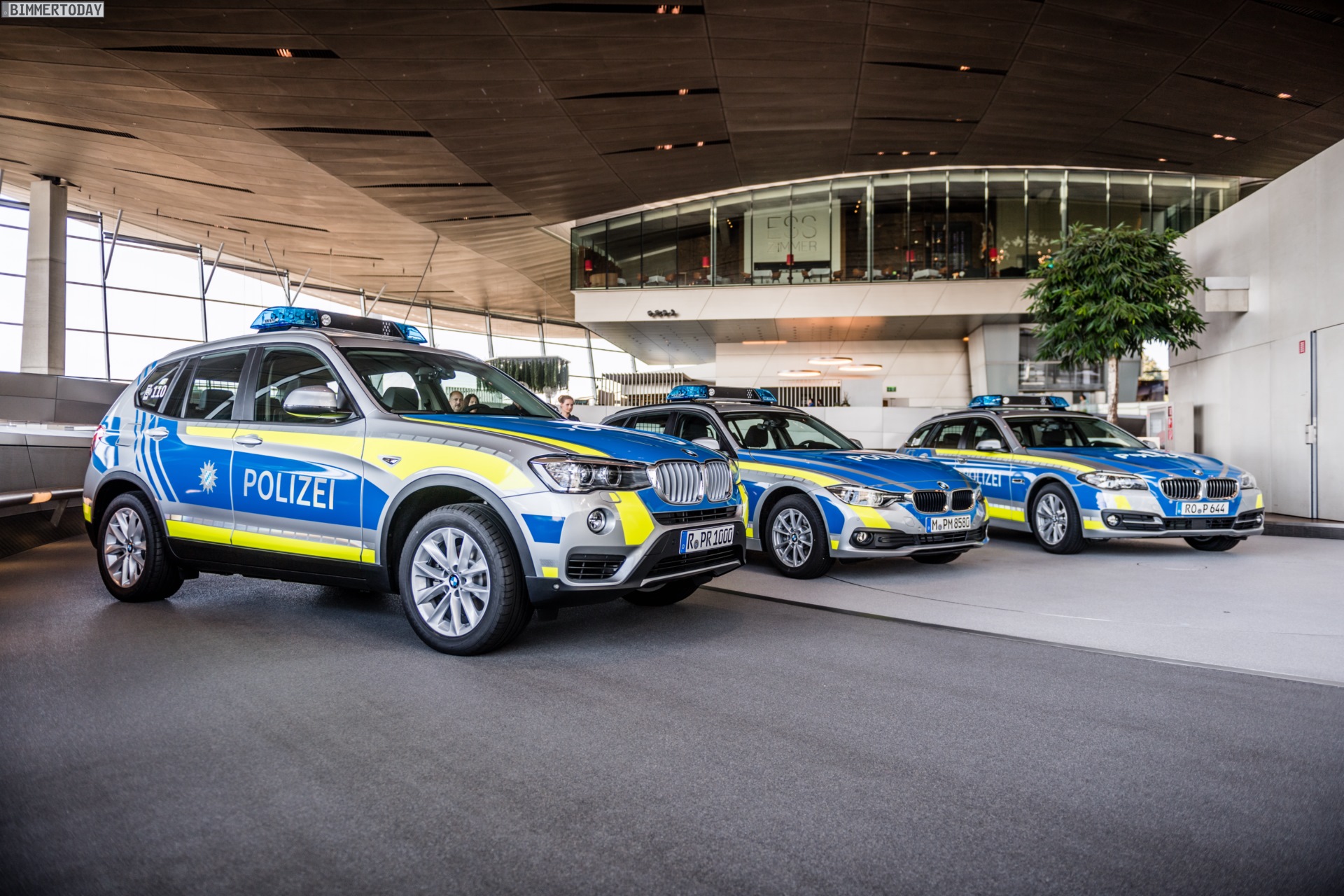 Die bayerische Polizei setzt weiterhin auf Einsatzfahrzeuge von BMW. Gestern wurden in der BMW Welt München die ersten neuen Streifenwagen mit blauem Dekor übernommen, bisher setzte man in Bayern auch bei Neuanschaffungen auf das bisherige Dekor in kräftigem Grün. Mit der blauen Folierung samt neon-gelben Akzenten passen sich die Bayern an den aktuellen Bundes-Standard an und bringen einen zumindest für viele Münchner noch ungewohnten Look auf die Straße.