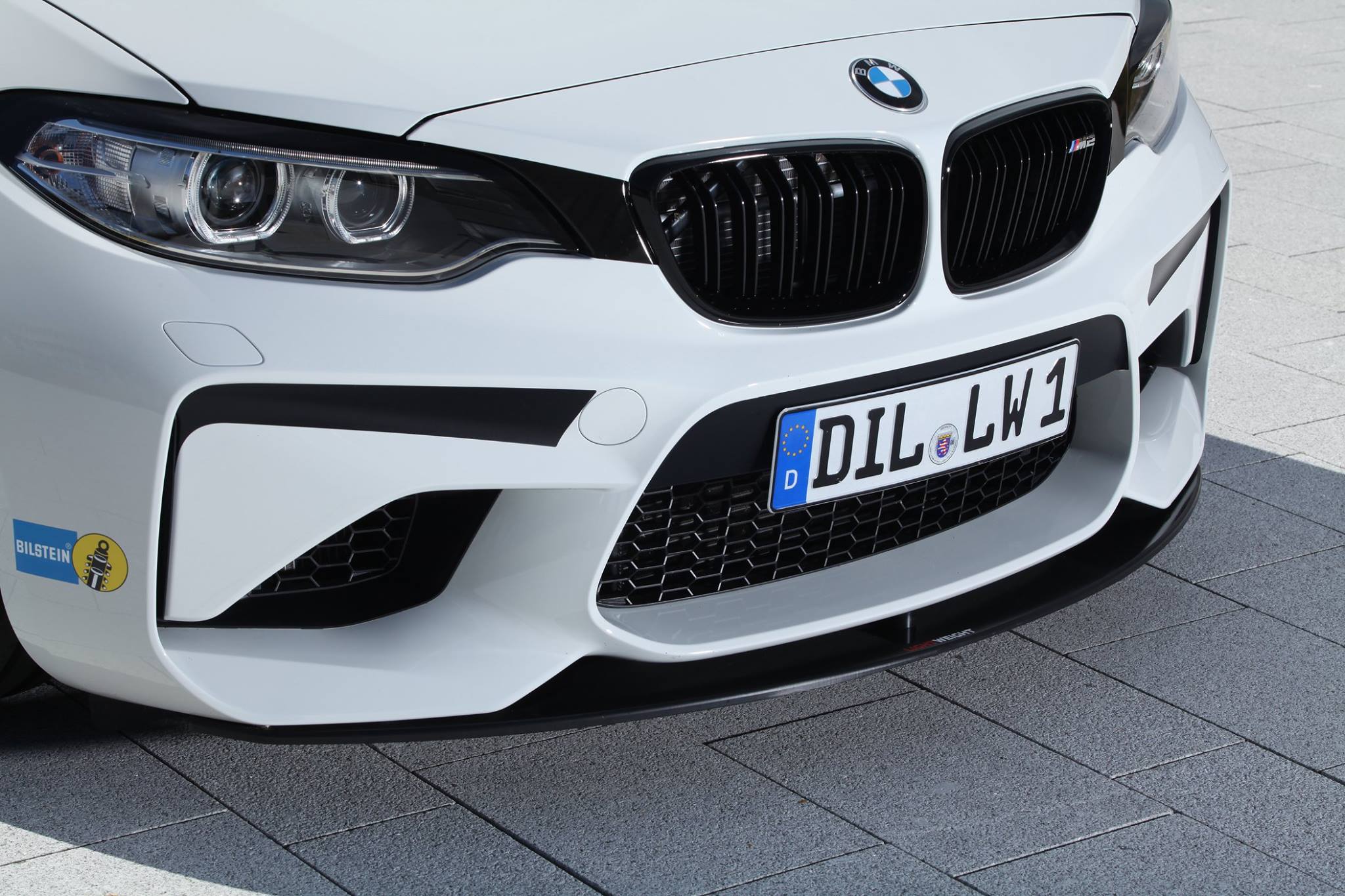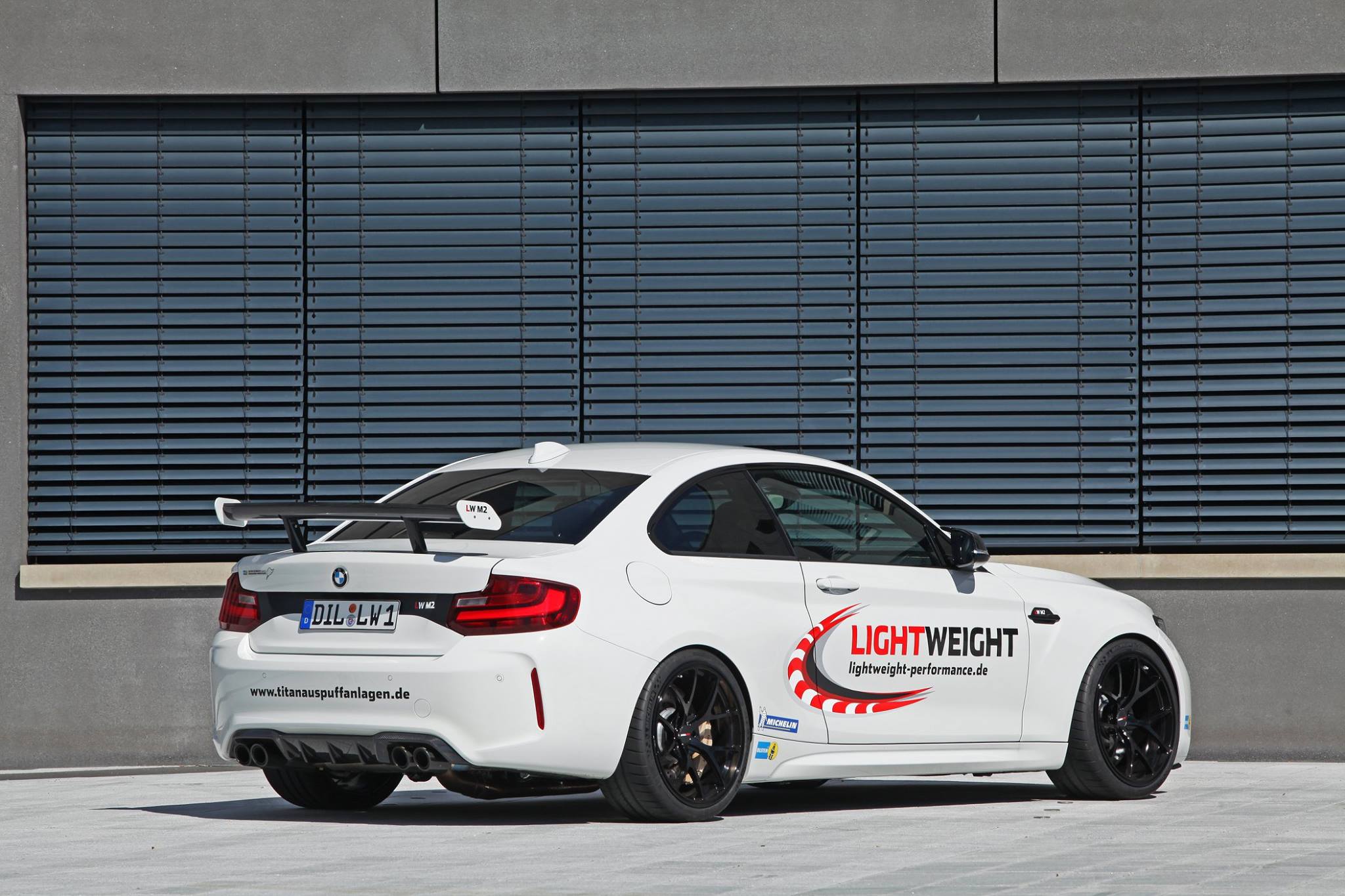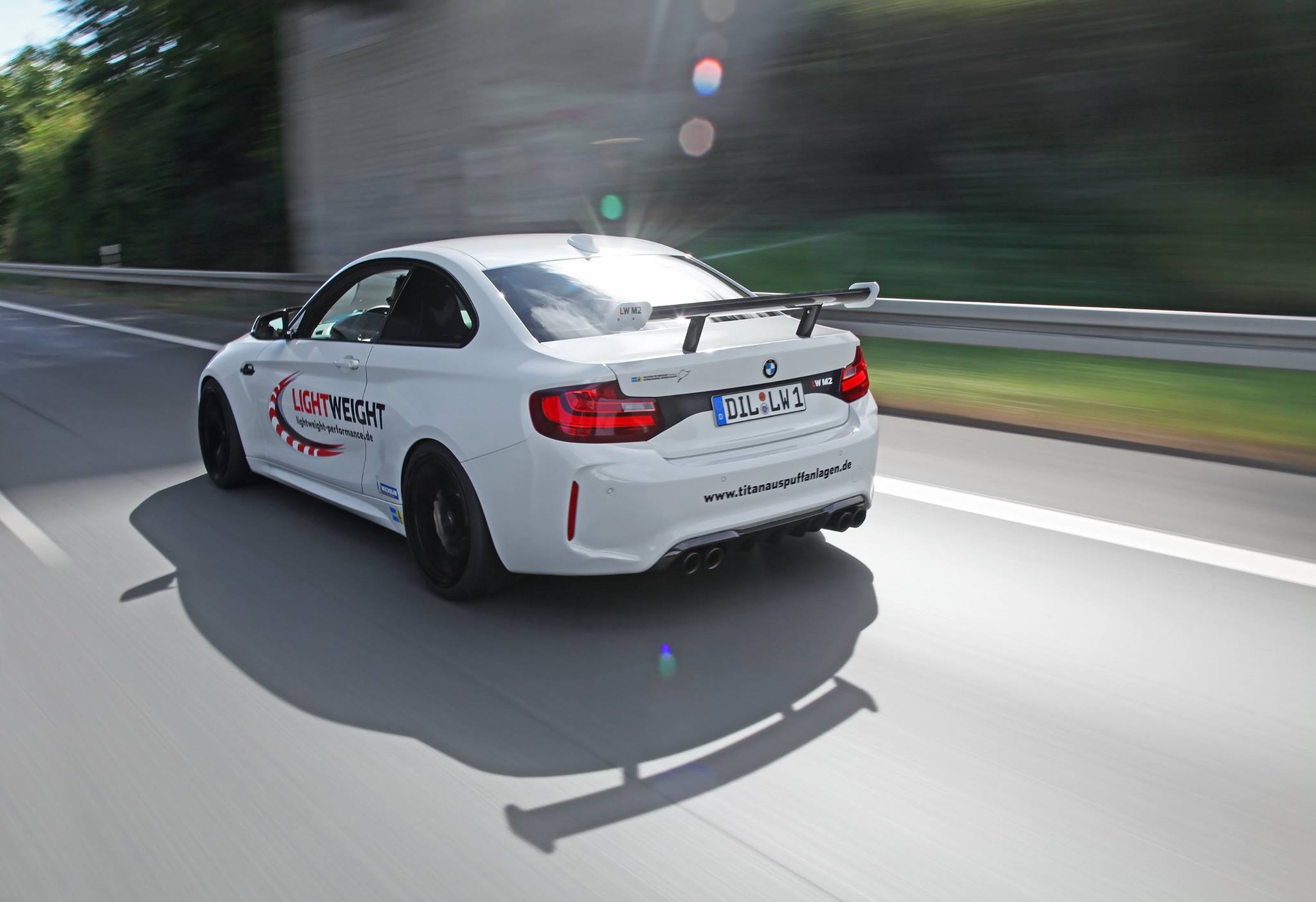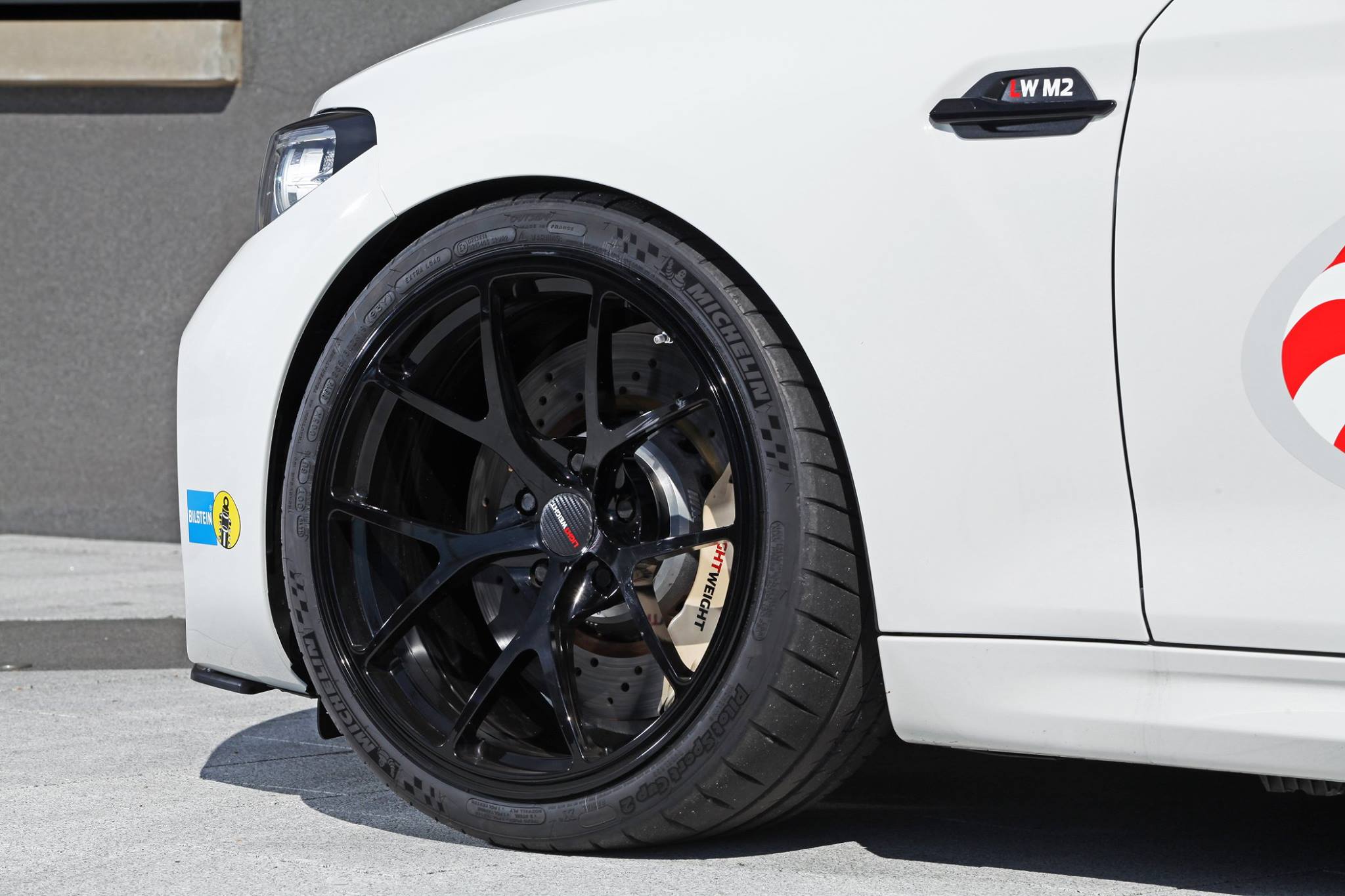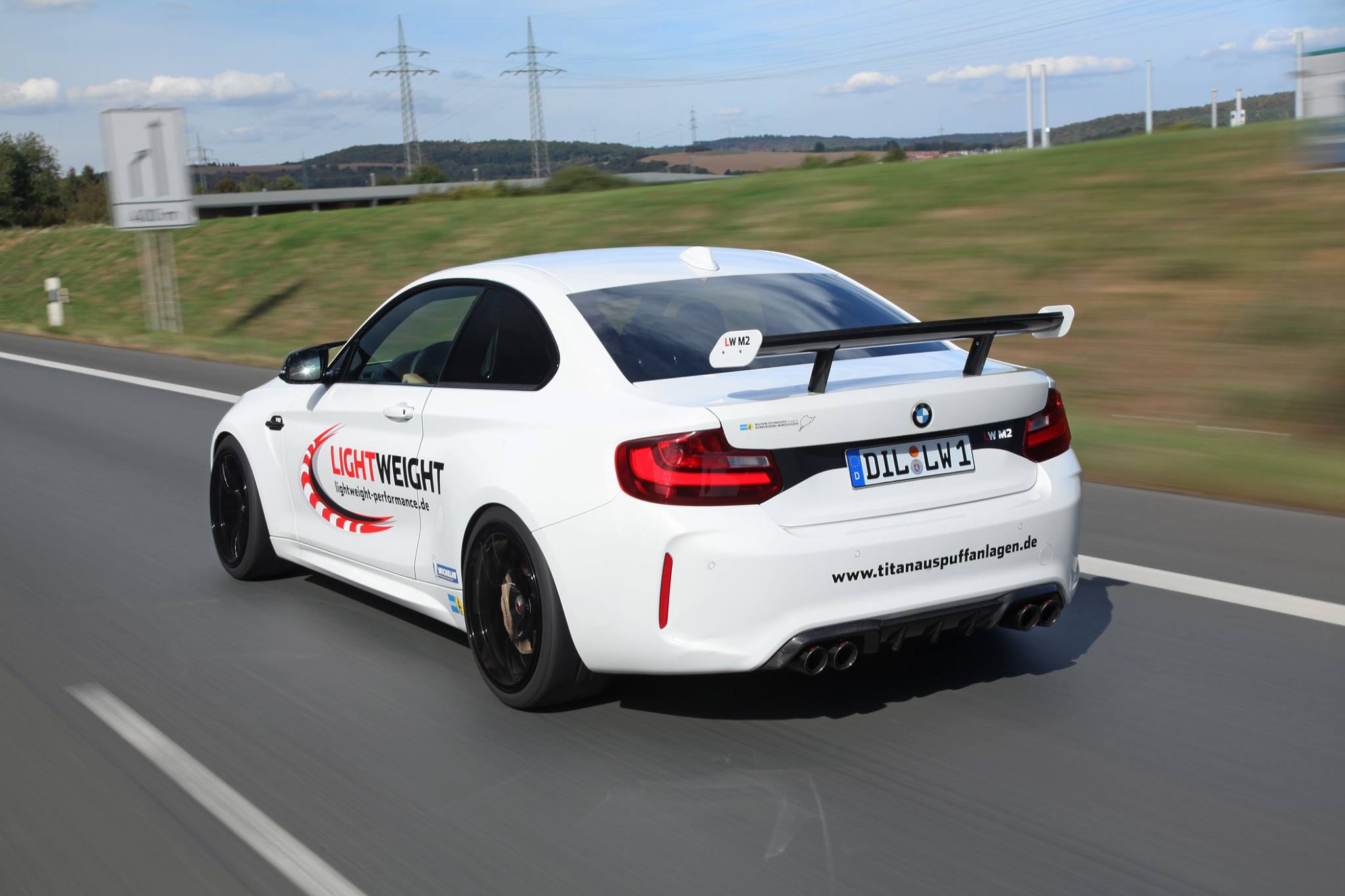 Aufwändig modifiziert wurde auch der Antriebsstrang des BMW M2, denn der LW M2 kommt einer satten Leistungssteigerung für seinen N55-Motor. Statt serienmäßiger 370 verspricht Lightweight Performance volle 450 PS, was vor allem mit Hilfe einer geänderten Ansaugluftführung und 300-Zellen-Downpipes realisiert wird. Der Reihensechszylinder-Sound profitiert von einem Titan-Endschalldämpfer mit Carbon-Endrohren und grenzt den LW M2 auch akustisch klar von der Serie ab.