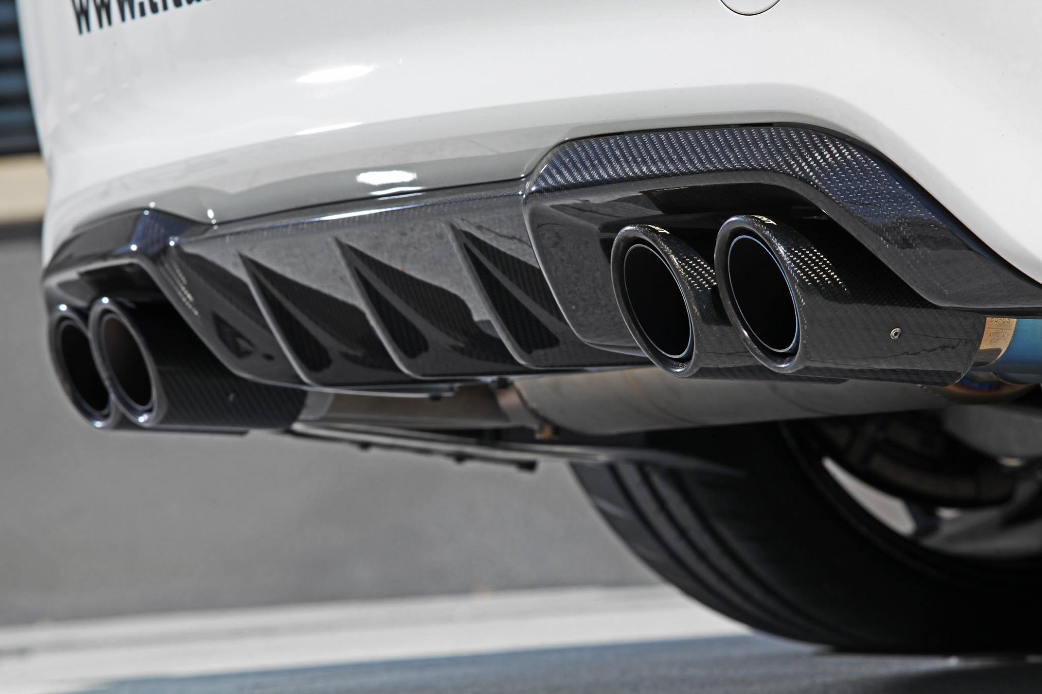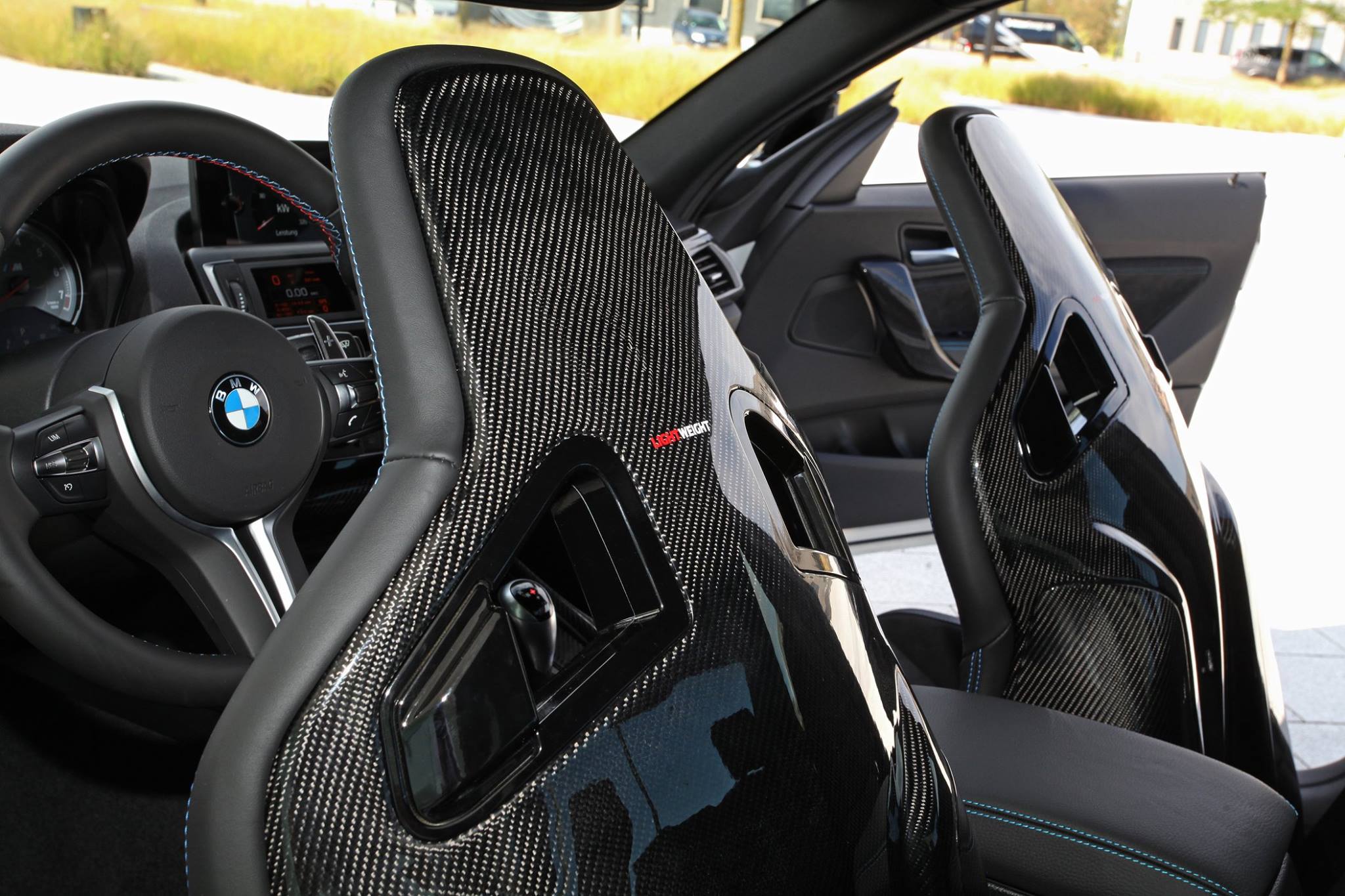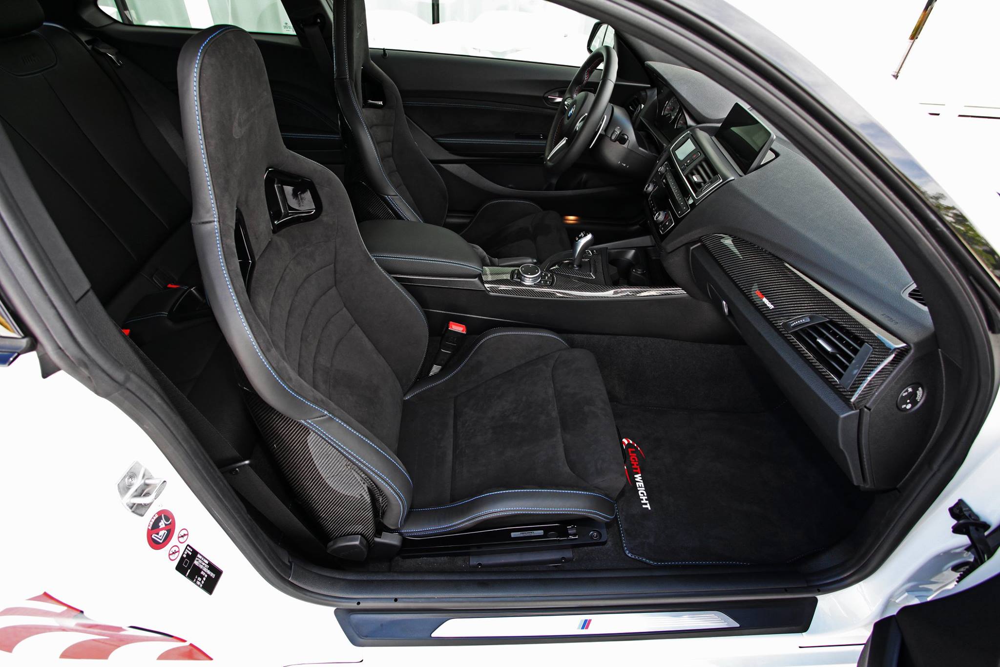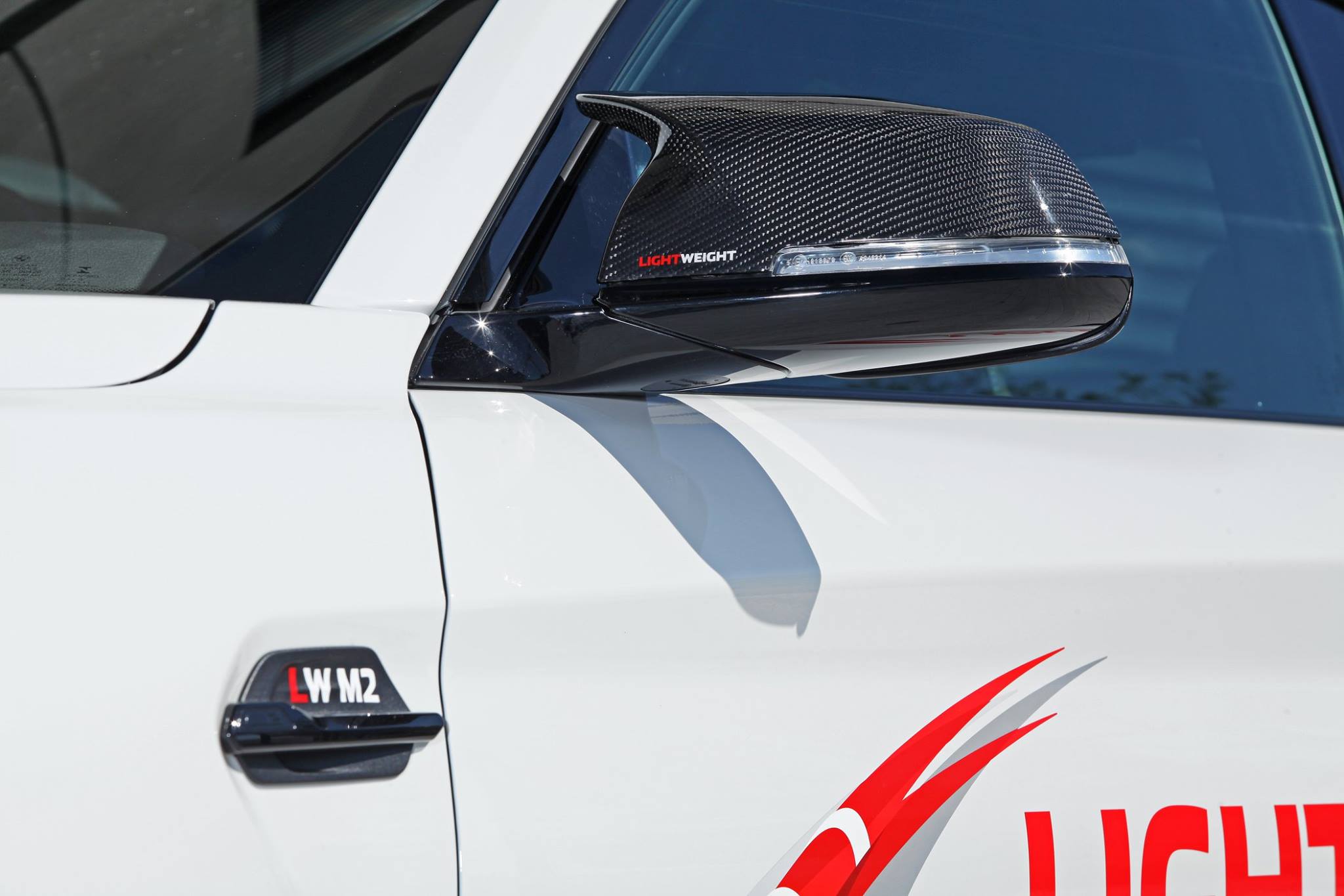 Die gezielten Maßnahmen lassen den BMW M2 im Rückspiegel noch breiter wirken, was angesichts der ohnehin stämmigen Kotflügel durchaus beachtlich ist. Und wer Lightweight Performance kennt weiß, dass auch der große Heckflügel auf der Kofferraum-Haube alles andere als Deko ist. Gemeinsam mit dem ebenfalls aus Carbon gefertigten Frontspoiler-Schwert sorgt der große Flügel für spürbar weniger Auftrieb und verbessert so die Stabilität bei hohen Geschwindigkeiten.