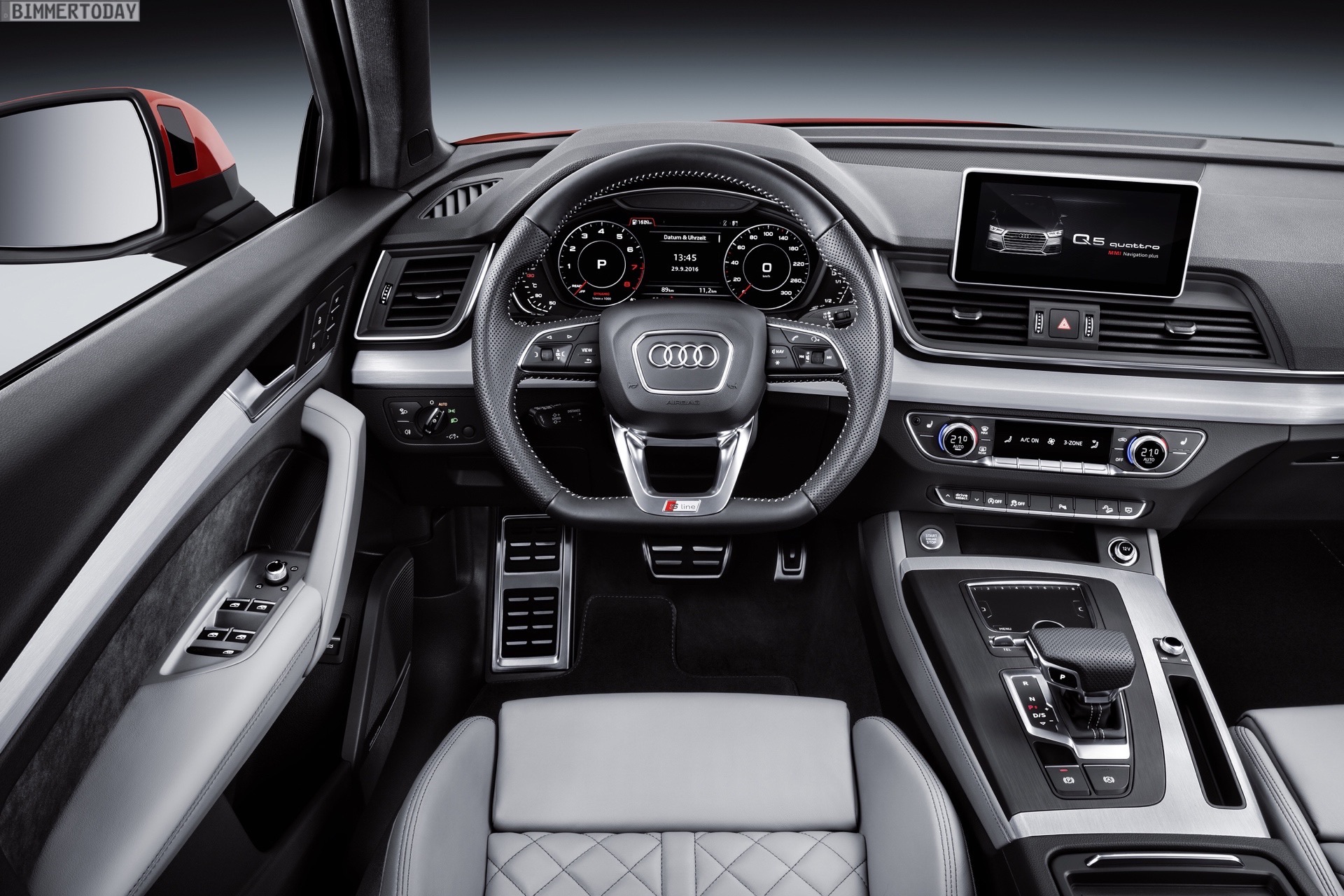 Die Motorenpalette für den Audi Q5 2017 umfasst zunächst fünf Motoren, darunter drei 2.0 TDI Vierzylinder-Diesel mit 150, 163 und 190 PS. Neben diesen drei Volumen-Bringern gibt es den 2.0 TFSI mit 252 PS und den Top-Diesel 3.0 TDI, der 286 PS und 620 Newtonmeter Drehmoment bietet. Wie üblich wird die Motorenpalette in den Monaten nach dem Marktstart weiter ausgebaut, auch ein neuer Audi SQ5 TDI mit Biturbo-Diesel ist zu erwarten. Während die schwächeren Q5-Varianten auf Frontantrieb setzen, kommt für die stärkeren Motoren der Allradantrieb quattro zum Einsatz – nun auch in der “ultra” genannten Variante, die die Hinterräder nicht permanent antreibt und so etwas weniger Verbrauch verspricht.