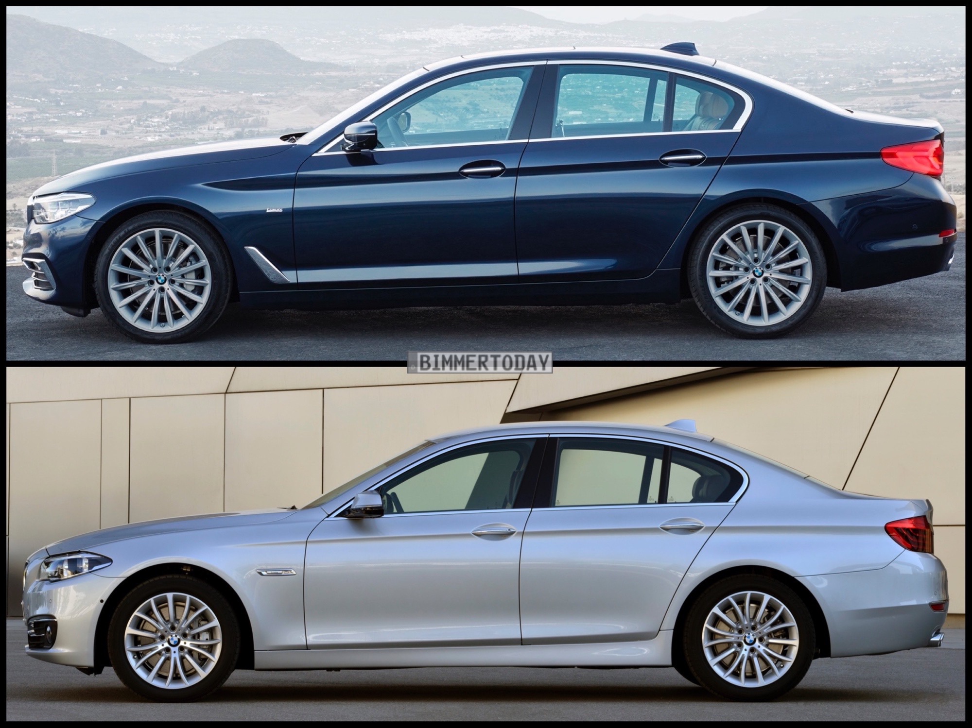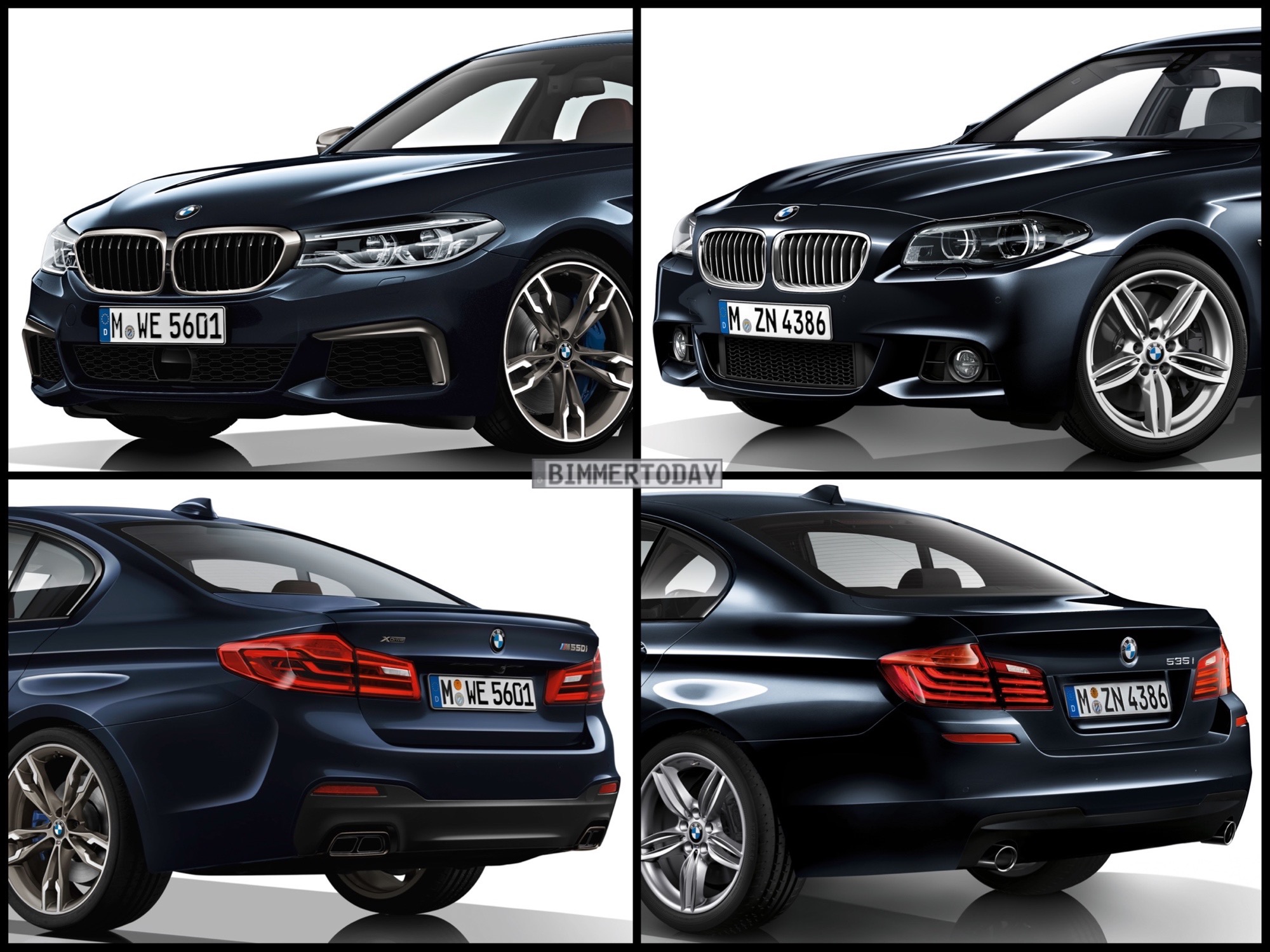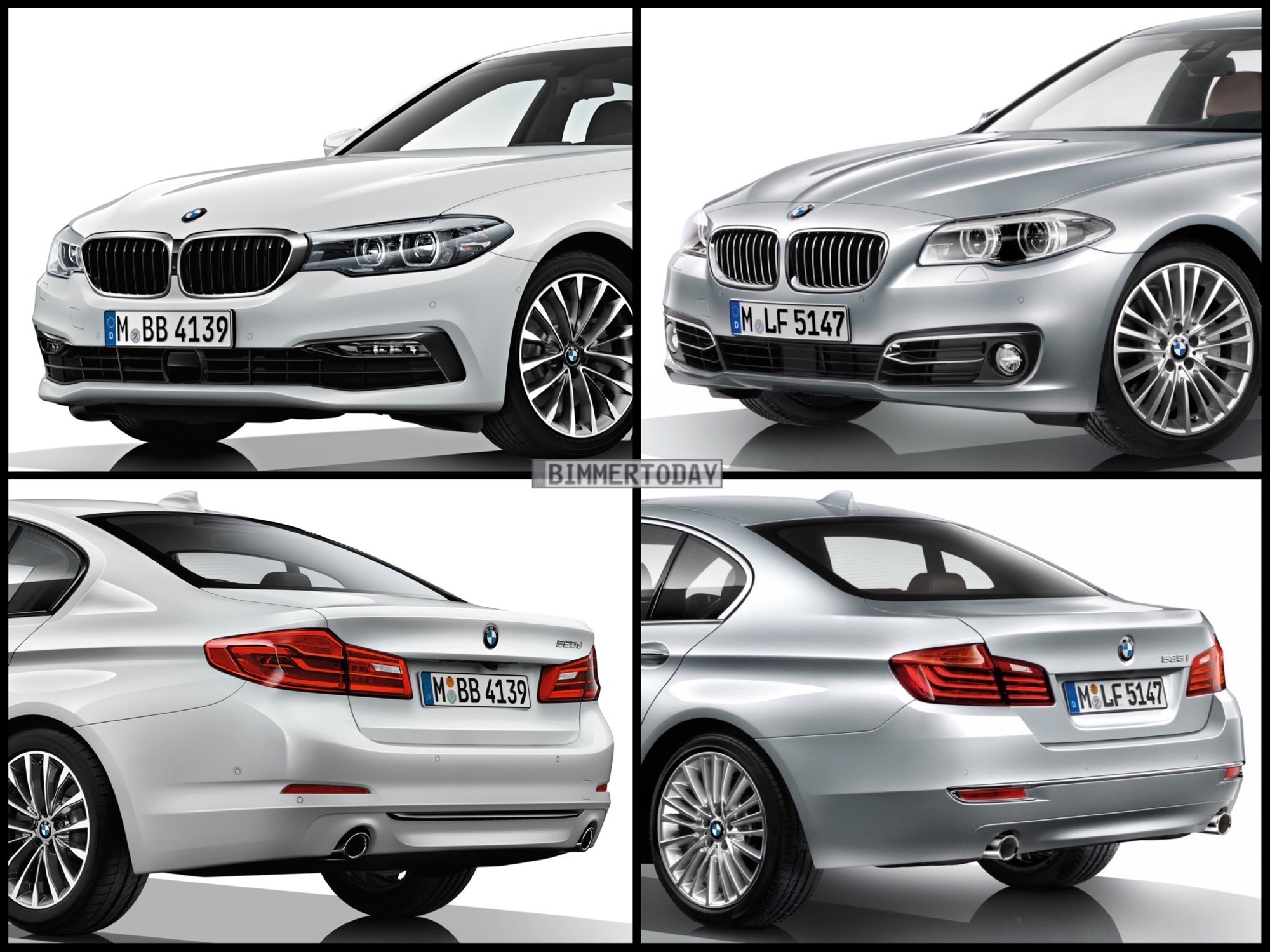 Nicht auf den ersten Blick sichtbar sind viele weitere Verbesserungen wie das Head-Up-Display mit 70 Prozent größerer Anzeigefläche und natürlich das weiterentwickelte Fahrwerk, das sowohl den Komfort als auch die Dynamik des BMW 5er G30 weiter steigern soll. Wie sich die beiden 5er-Generationen optisch gegenüberstehen, zeigt unser Bild-Vergleich. Neben Modellen ohne M Sportpaket haben wir unserer Galerie auch einige Fotos hinzugefügt, die die beiden 5er mit dem optionalen Sportpaket gegenüberstellen.