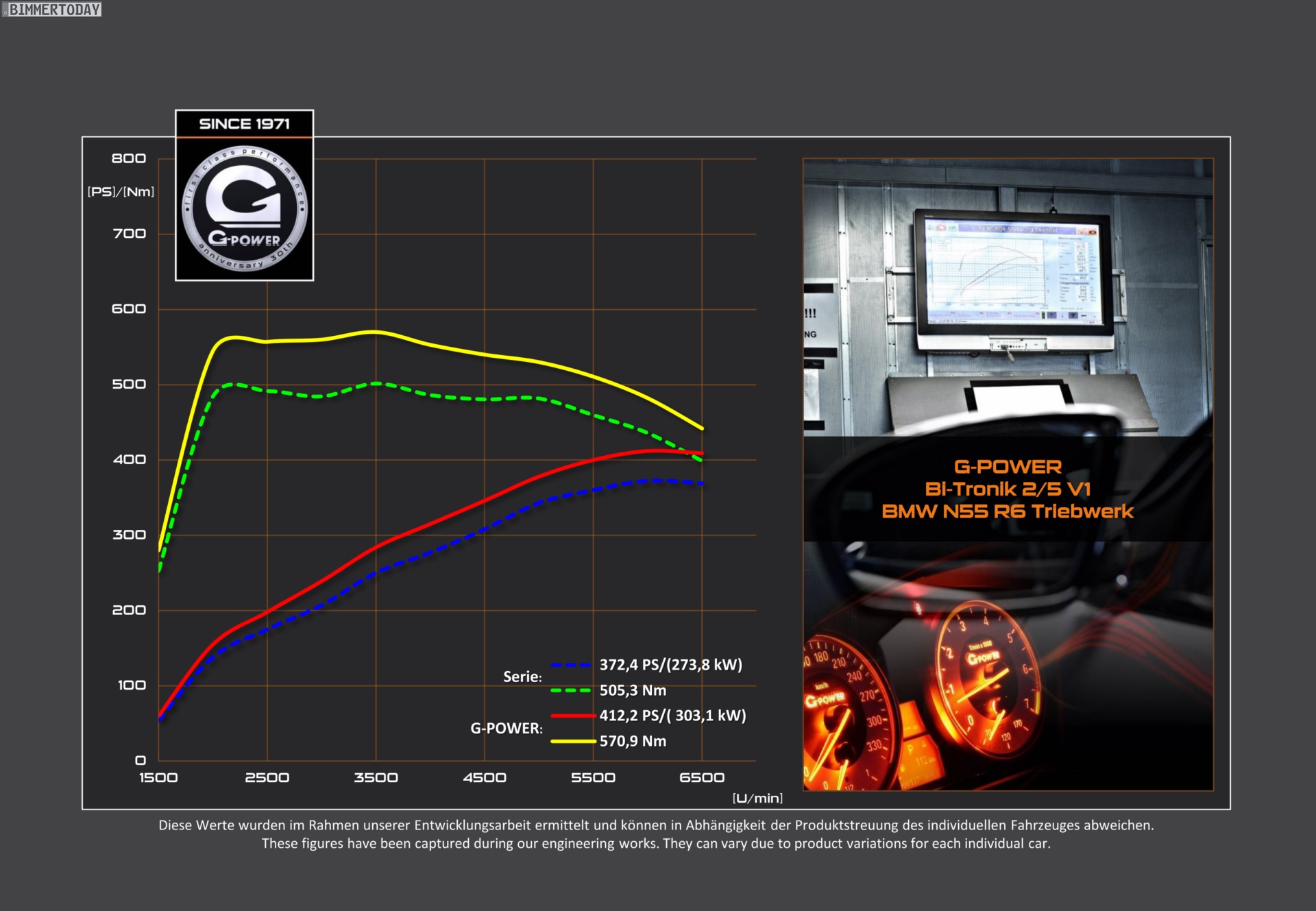 Während sich das Leistungsmodul für eine einfache Installation per Plug&Play eignet und bei Bedarf auch mit wenigen Handgriffen wieder zurückgerüstet werden kann, handelt es sich bei der Kennfeldänderung um eine individuelle Optimierung des spezifischen Triebwerks unter der eigenen Motorhaube. G-Power betont, das alle serienmäßigen Motorschutz-Funktionen bei beiden Lösungen uneingeschränkt in Betrieb bleiben und den Reihensechszylinder beispielsweise vor einer Überhitzung schützen.