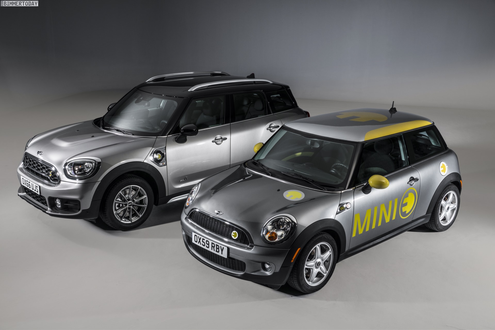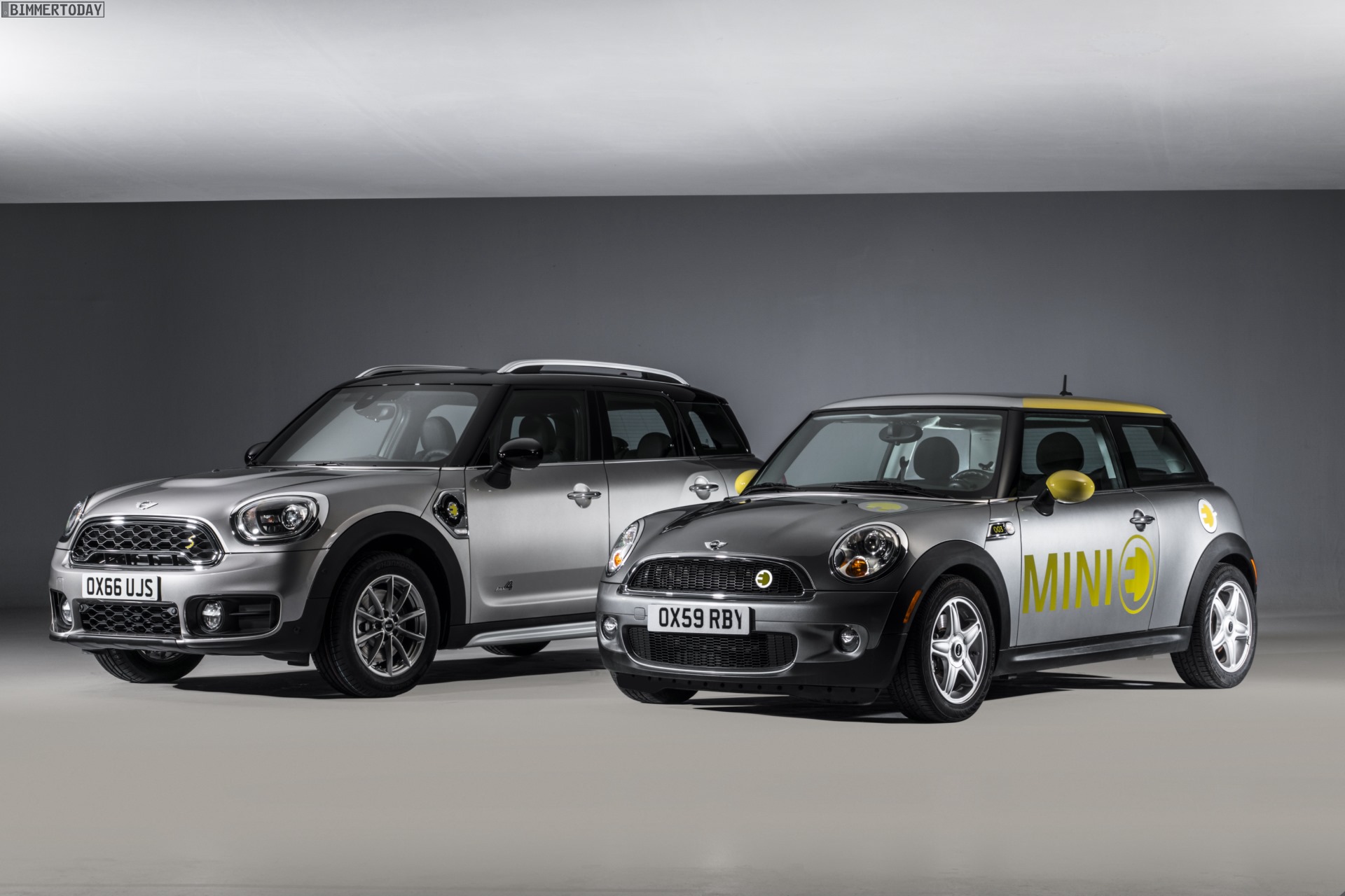 Auf einigen der offiziellen Fotos sehen wir den bisher größten Serien-MINI aller Zeiten übrigens Seite an Seite mit einem alten Bekannten: Der rein elektrisch angetriebene MINI E der Generation R56 soll offenbar zeigen, dass sich die BMW-Tochter schon länger mit elektrifizierten Antriebssträngen befasst hat und der Schritt zur Großserie nun nicht mehr als die logische Konsequenz einer langen Entwicklung darstellt.