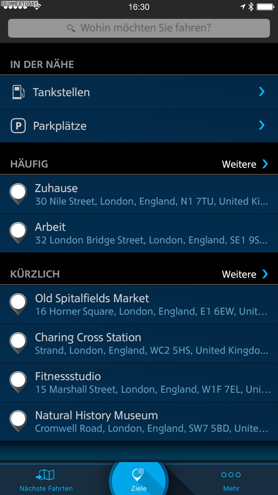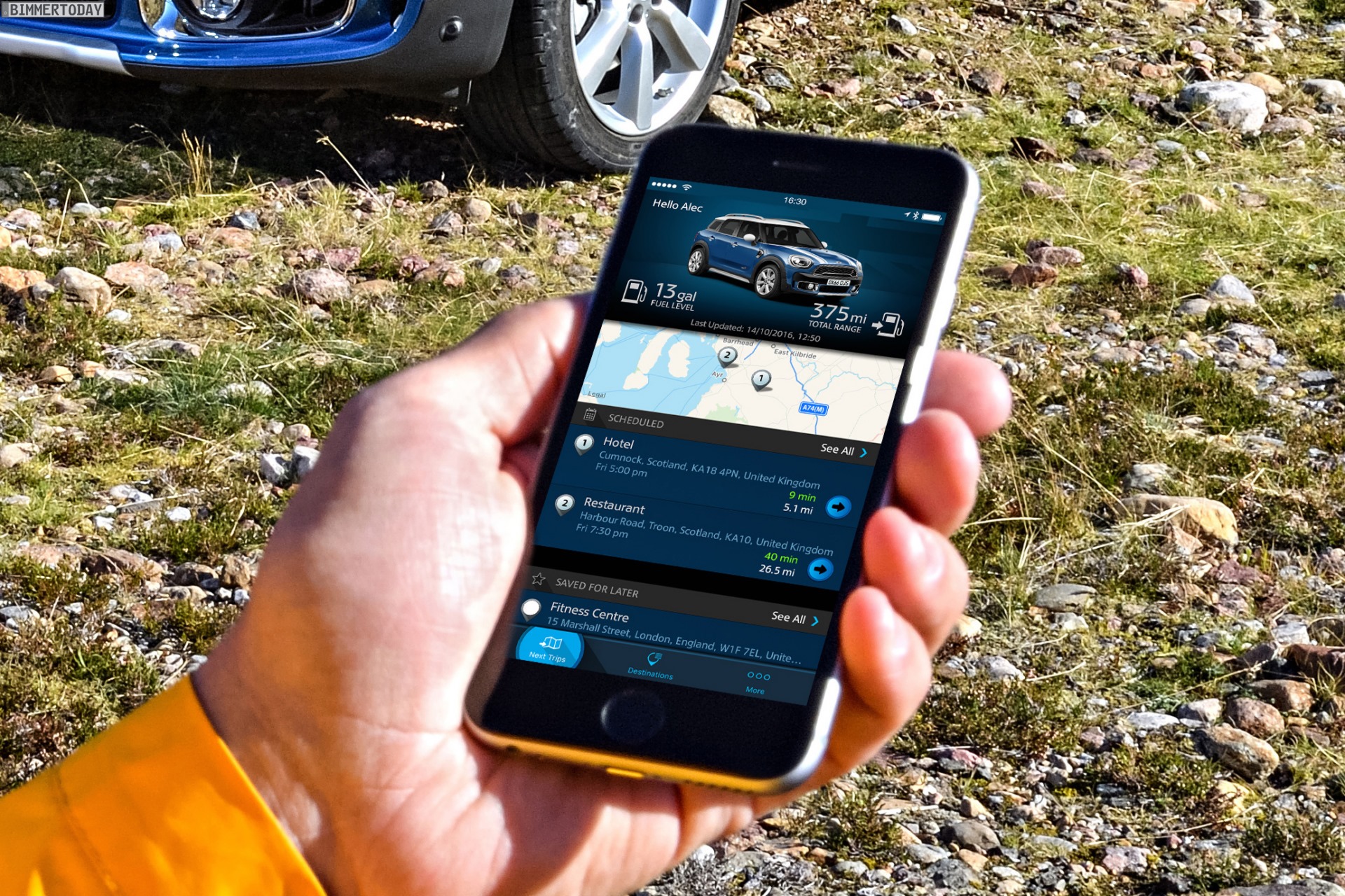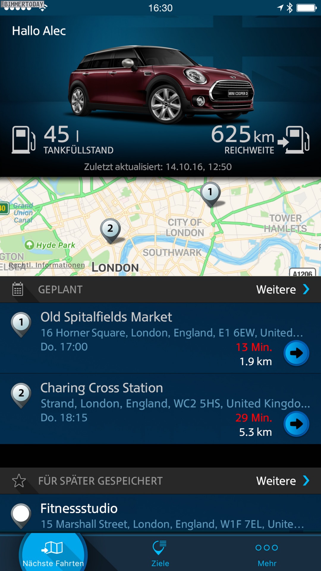Die Reiseplanung und -Organisation nennt sich bei MINI Journey Management und versucht, den Kunden in seinem individuellen Tagesablauf optimal zu unterstützen. Wer der App den Zugriff auf den eigenen Kalender gewährt, kann sich beispielsweise rechtzeitig vor einem Termin an die optimale Abfahrtszeit erinnern lassen – unter Berücksichtigung der dank RTTI bekannten Verkehrslage. So lässt es sich im Idealfall vermeiden, von einem Stau überrascht zu werden und deshalb später als zu dieser Uhrzeit nötig loszufahren.