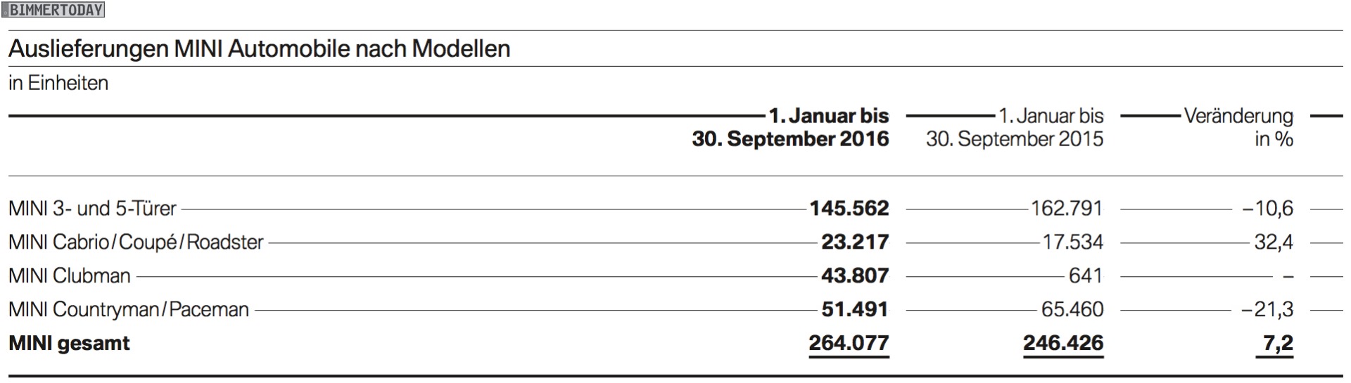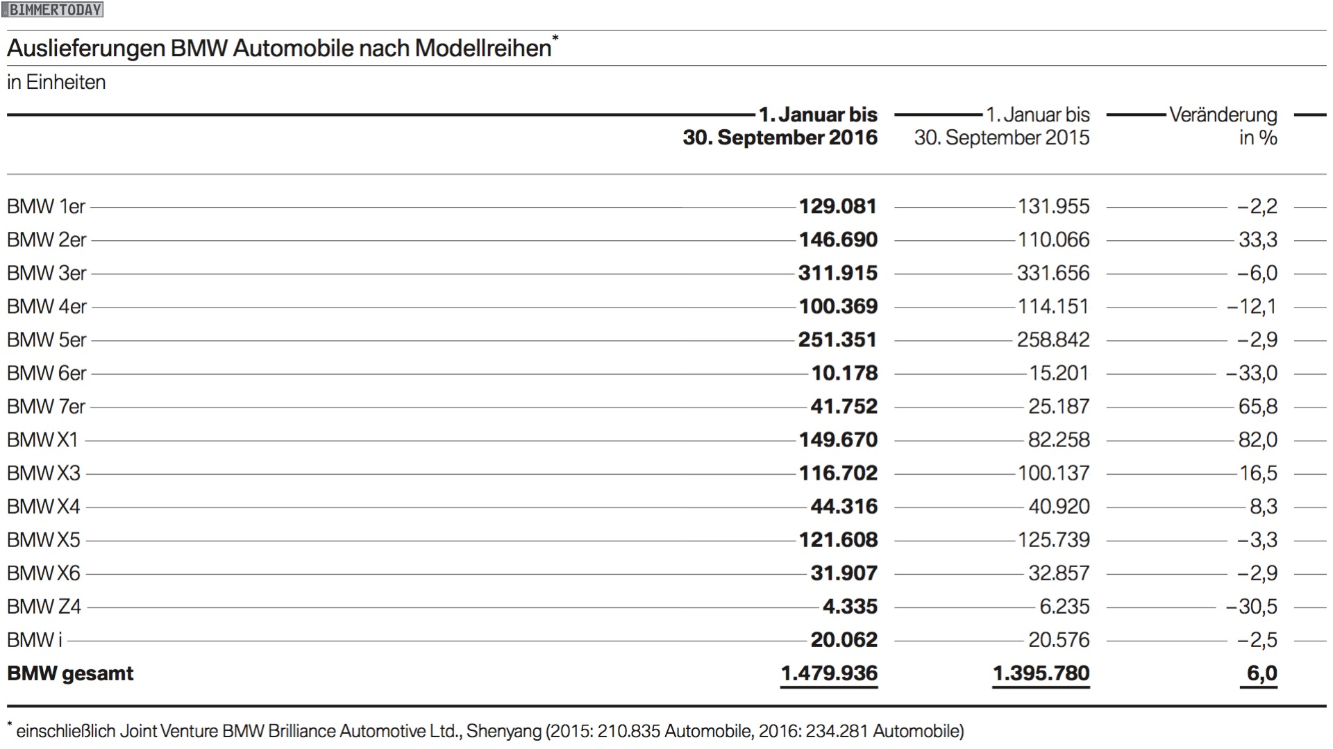 Regional betrachtet steht das Wachstum der BMW Group auch in Q3 auf einem breiten Fundament: Auf dem Heimatkontinent Europa konnte der Absatz im dritten Quartal um 8,7 Prozent auf 264.327 Einheiten gesteigert werden, in Asien entsprechen 187.418 verkaufte Fahrzeuge einem Plus von 12,9 Prozent. Weniger erfreulich stellt sich die Situation in Amerika dar, hier lagen die Verkaufszahlen in Q3 2016 bei 114.907 Einheiten und damit 3,6 Prozent unter dem Vorjahr.