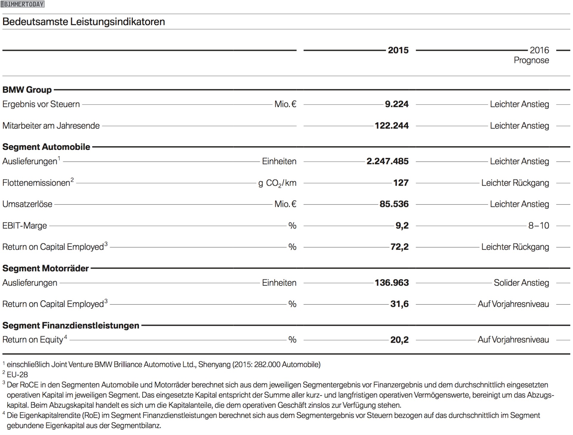 Weniger positiv aufgenommen wurde von Analysten die Nachricht, dass die EBIT-Marge von 9,1 auf 8,5 Prozent zurückging. Verantwortlich dafür sind hohe Entwicklungskosten im Zusammenhang mit der aktuellen Konzernstrategie Number One > Next, die das Unternehmen bereit für die Herausforderungen der Zukunft machen und die Stellung als weltweit führender Hersteller von Premium-Automobilen festigen soll. Mit ihrem Wert von 8,5 bewegt sich die EBIT-Marge weiterhin im angestrebten Zielkorridor von 8 bis 10 Prozent, was der BMW Group damit bereits zum 26. Mal in Folge gelungen ist.