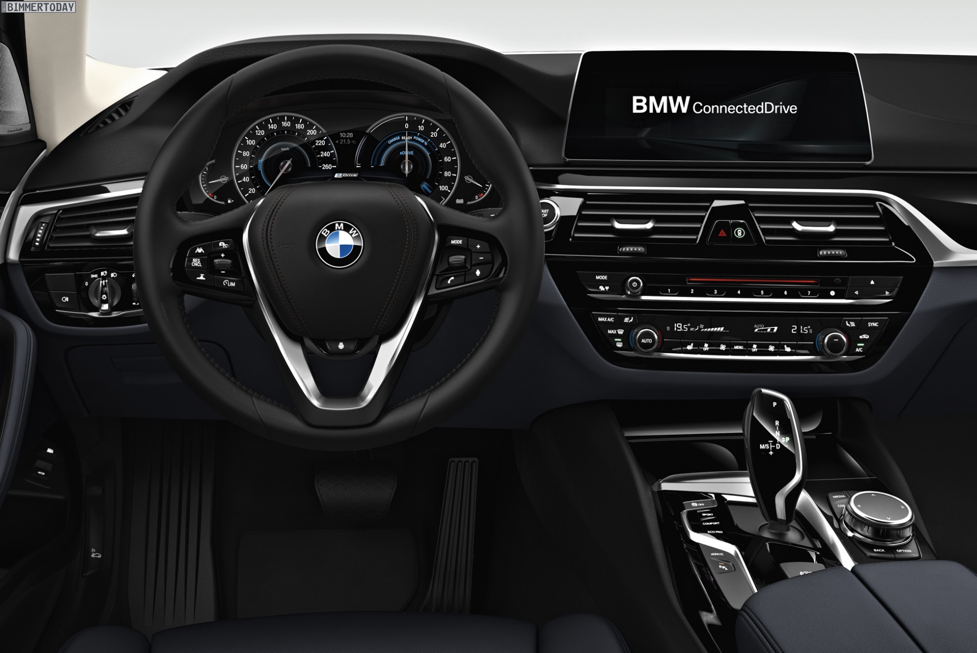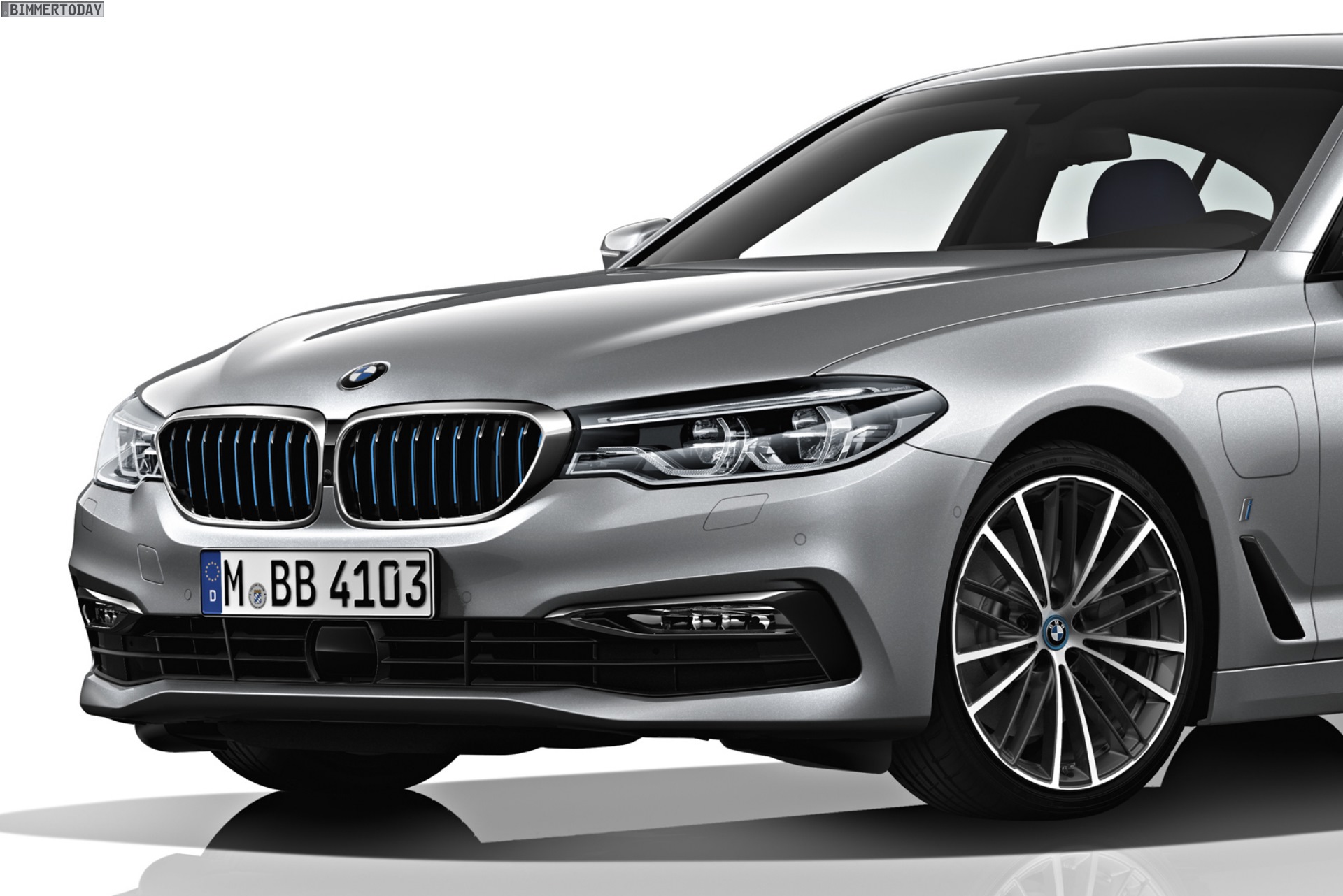 Alle anderen auf den ersten Blick erkennbaren Merkmale des BMW 530e, das BMW i-Logo am vorderen Kotflügel und die eDrive-Schriftzüge an den C-Säulen, lassen sich genau wie die Modellschriftzüge anderer 5er auch abbestellen. Auch sonst dürfen sich 530e-Kunden auf viele Optionen freuen, denn weder bei den Ausstattungspaketen noch bei den Felgen gibt es relevante Einschränkungen – wer möchte, kann auch den Plug-in-Hybrid mit M Sportpaket und großen Rädern bestellen.