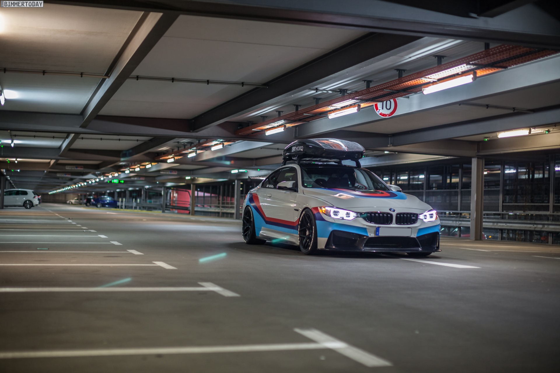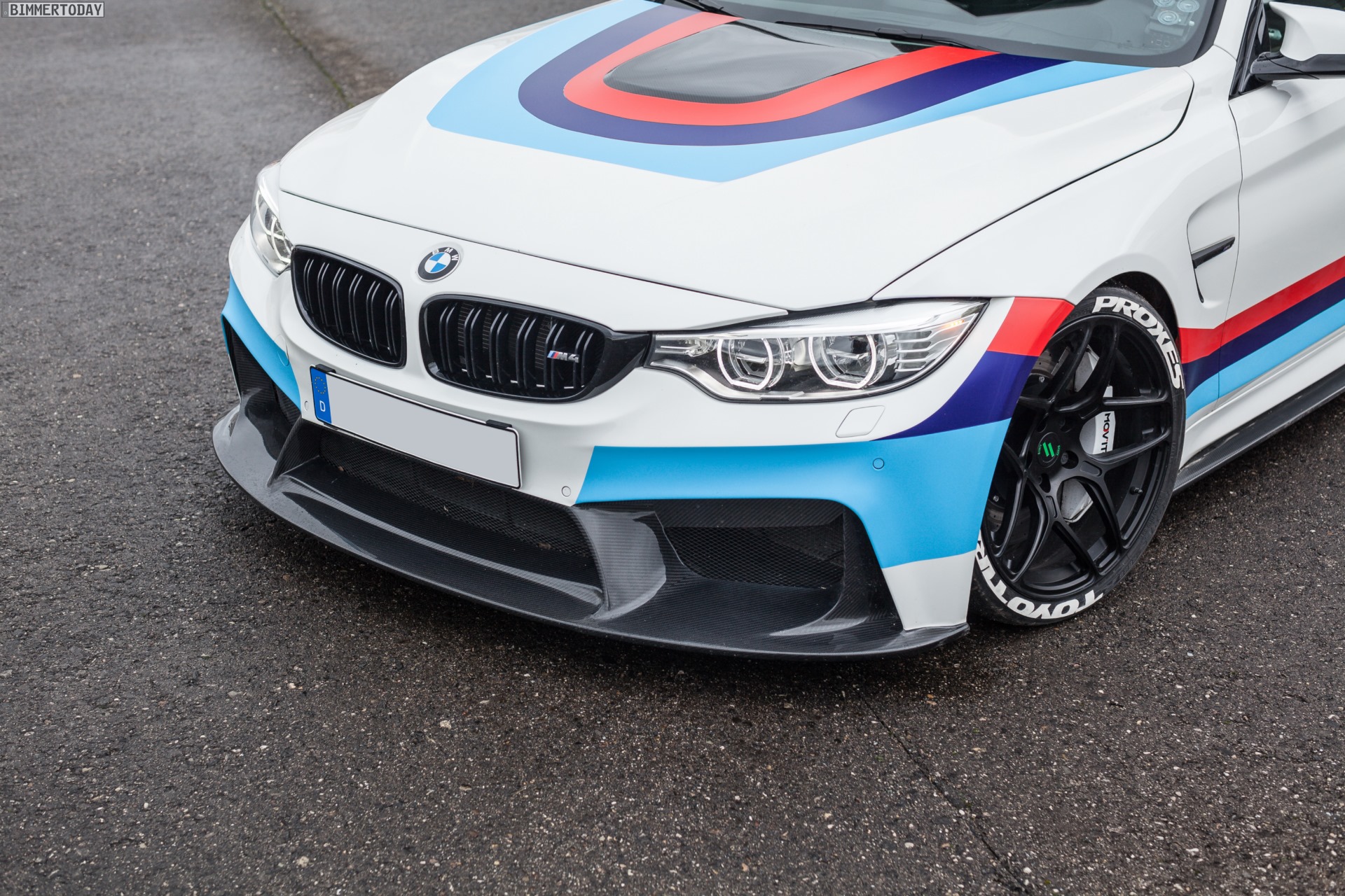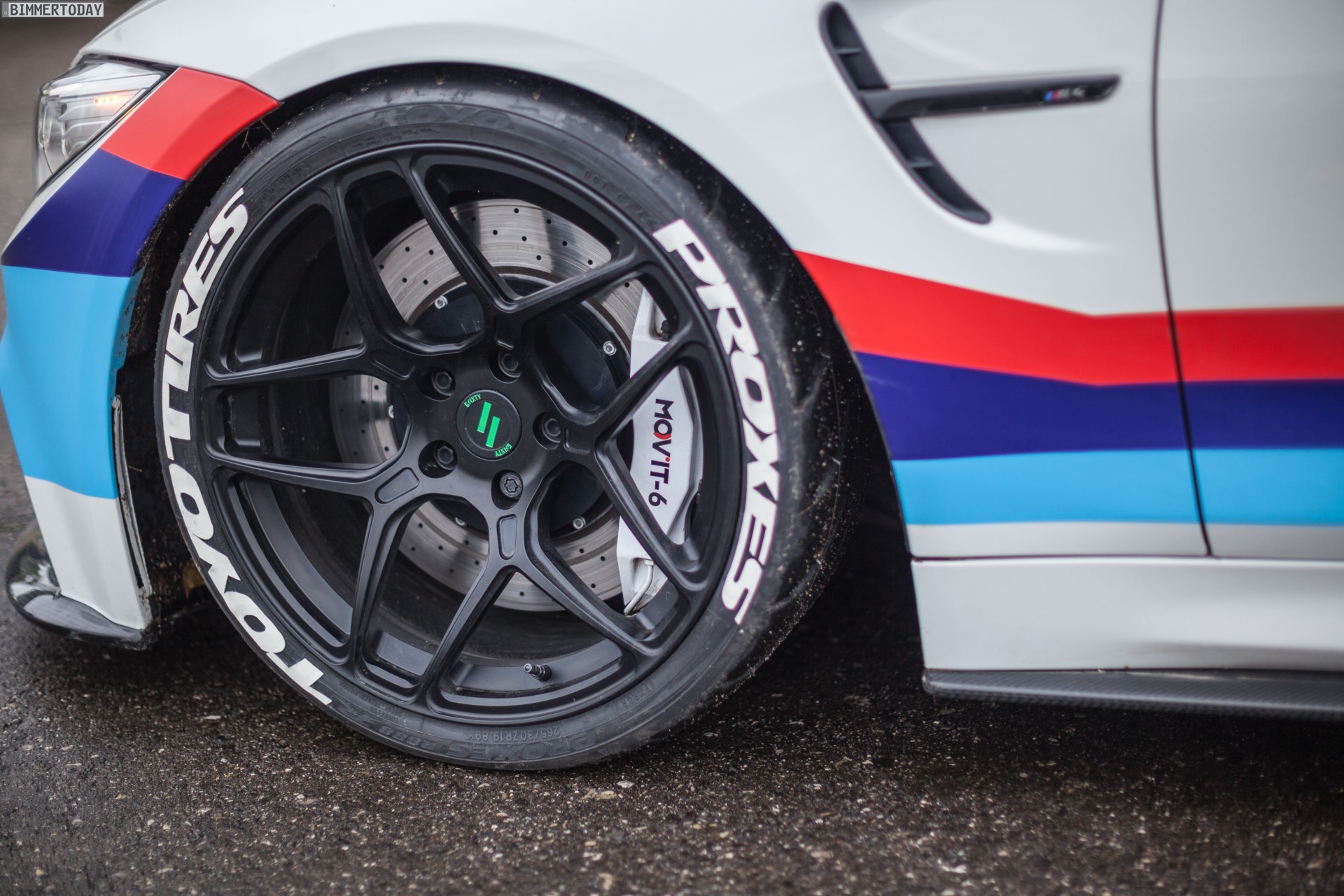 Der deutlich nachgeschärfte Auftritt wird mit einer Revowrap-Folierung in den BMW Motorsport-Farben und 19 Zoll großen Felgen perfektioniert. Die Schmiedefelgen stammen von 6sixty und sind mit der R888R-Semislick-Bereifung von Toyo bezogen, mit 305 Millimeter Breite ist für die nötige Traktion an der angetriebenen Hinterachse gesorgt – könnte man zumindest meinen, bevor man von der Leistungssteigerung hört.
