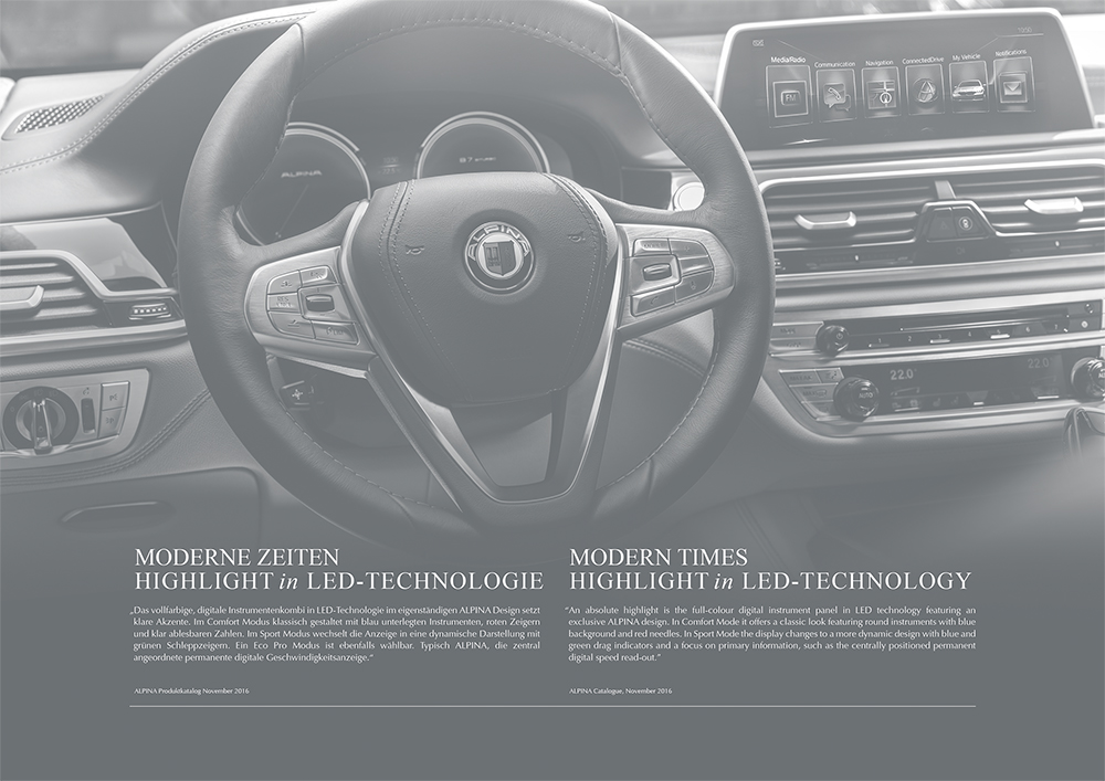 Der BMW Alpina-Kalender 2017 hat sich ganz dem Luxus verschrieben und konzentriert sich auf die lange Historie von Fahrzeugen aus Buchloe, die auf verschiedenen Generationen der BMW 7er-Reihe basieren. Die exklusive Limousinen-Historie begann 1977 mit dem BMW 733i E23, dessen Reihensechszylinder von Alpina auf 240 PS gebracht wurde. Beim heutigen BMW Alpina B7 Biturbo liegt diese Leistung praktisch permanent an, maximal sorgen damals unvorstellbare 608 PS für Vortrieb.