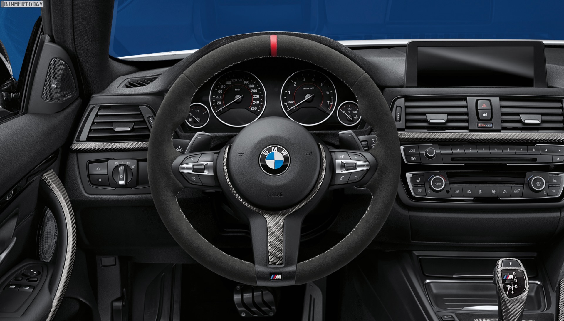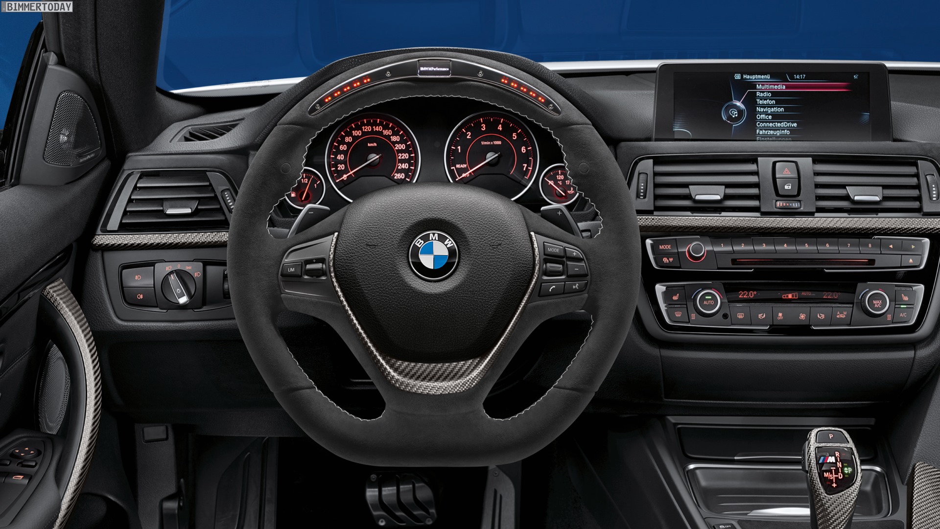 Erneut präsentiert werden die neuen Aerodynamik-Bauteile für BMW M3 und M4, die bereits vor wenigen Wochen auf der SEMA in Las Vegas ihre Weltpremiere feiern durften und voraussichtlich ab Sommer 2017 verfügbar sind. Wichtigstes Bauteil dieser Kategorie ist der neue Heckspoiler mit dem aktualisierten M Performance-Schriftzug an den seitlichen Blades. Schon jetzt gibt es ein überarbeitetes BMW M Performance Sportfahrwerk für M3 und M4, das mit einer stufenlos verstellbaren Tieferlegung von 5 bis 20 Millimeter ausgerüstet ist.