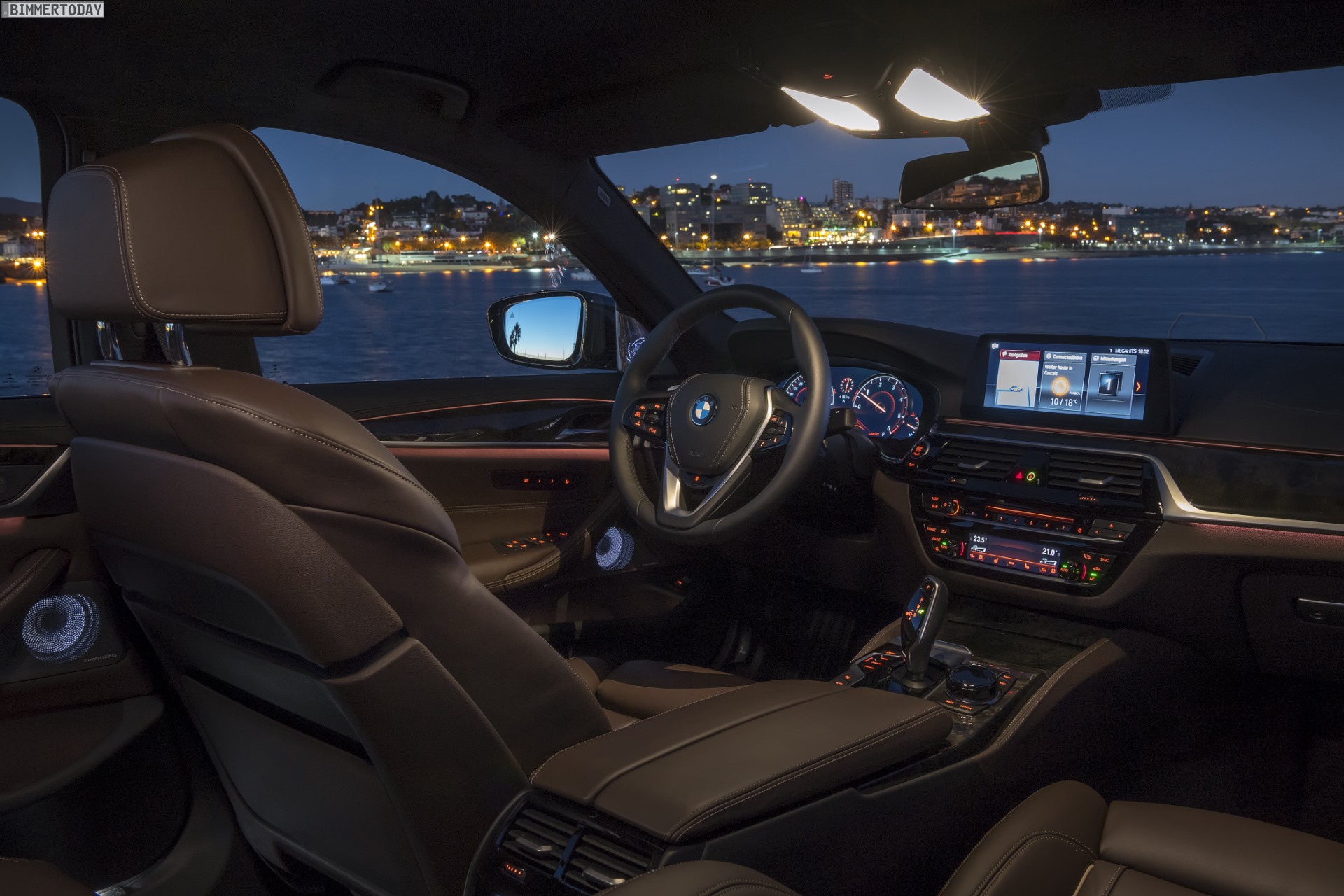 Das schon angesprochene Display funktioniert erstmals in einem 5er auch als Touchscreen und verfügt über eine neue Software-Generation, die das erst vor rund einem Jahr eingeführte Kachel-Design auf das nächste Level hebt: Die Kacheln lassen sich nun individuell anpassen und in Sekundenschnelle in die vom Fahrer gewünschte Reihenfolge bringen. So kann jeder Fahrer selbst wählen, welche Menüs und Funktionen er auf den ersten Blick griffbereit haben möchte und welche Optionen in seinem Alltag nur in die zweite Reihe gehören. Noch komfortabler ist es allerdings, iDrive mit Hilfe der weiterentwickelten Sprachsteuerung zu bedienen: Wer will, kann die frei programmierbare Zwei-Finger-Geste der aus dem 7er bekannten Gestiksteuerung nutzen, um die Spracheingabe zu aktivieren und im Anschluss völlig frei seine Wünsche äußern – was auf Anhieb verblüffend häufig funktioniert und mit etwas Übung ähnlich reibungslos wie der Umgang mit Siri & Co. gelingen soll.