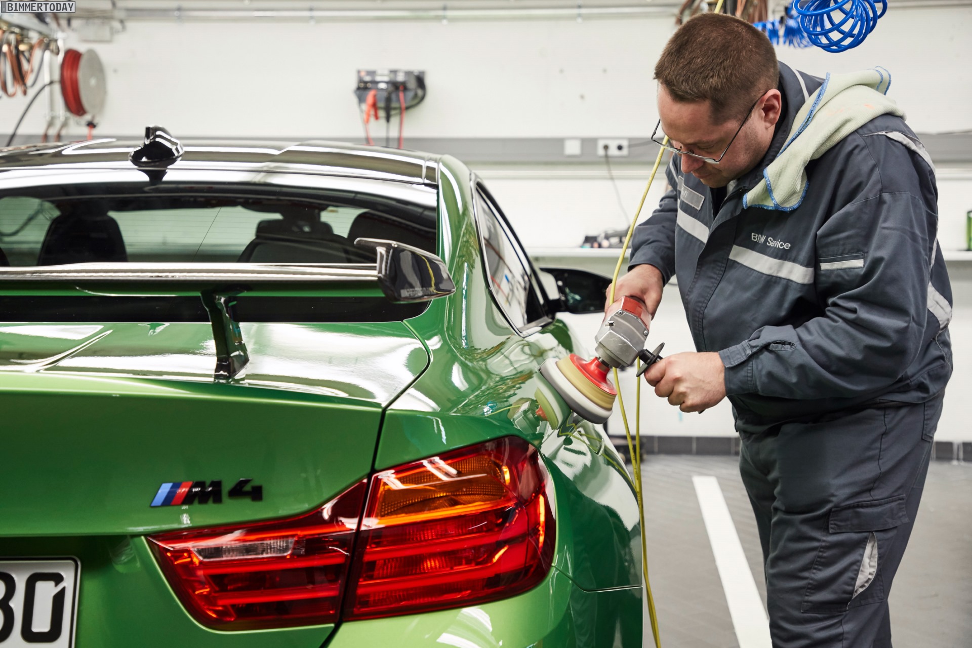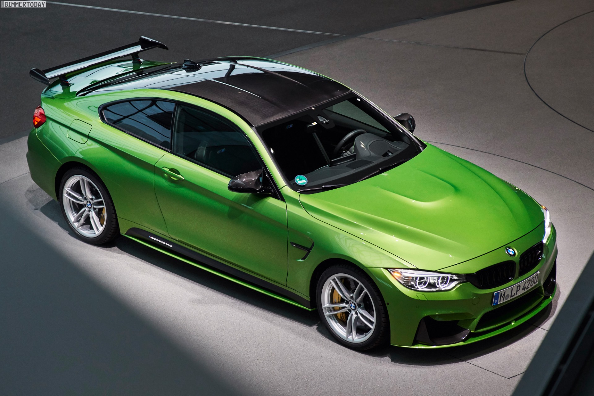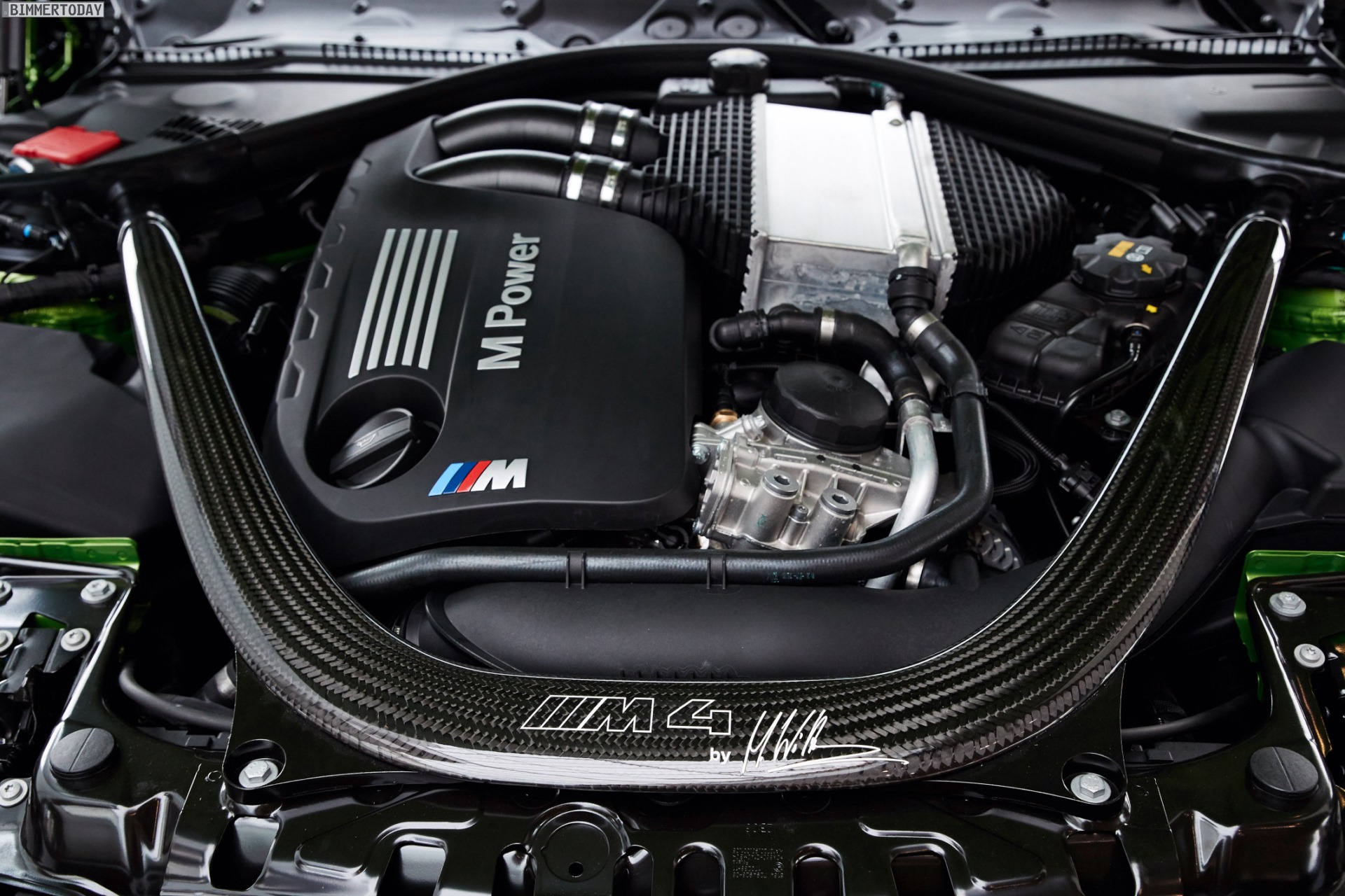 Der neue Dienstwagen ist bereits mit dem erst kürzlich auf der SEMA in Las Vegas vorgestellten M Performance-Heckflügel ausgestattet, außerdem kommen unter anderem die Aufsätze für Frontschürze und Seitenschweller sowie ein Diffusor-Einsatz aus Carbon zum Einsatz. Die schwarzen Nieren setzen gemeinsam mit dem serienmäßigen Carbon-Dach einen dunklen Akzent, der das Fahrzeug noch etwas weiter aus der Masse heraushebt.