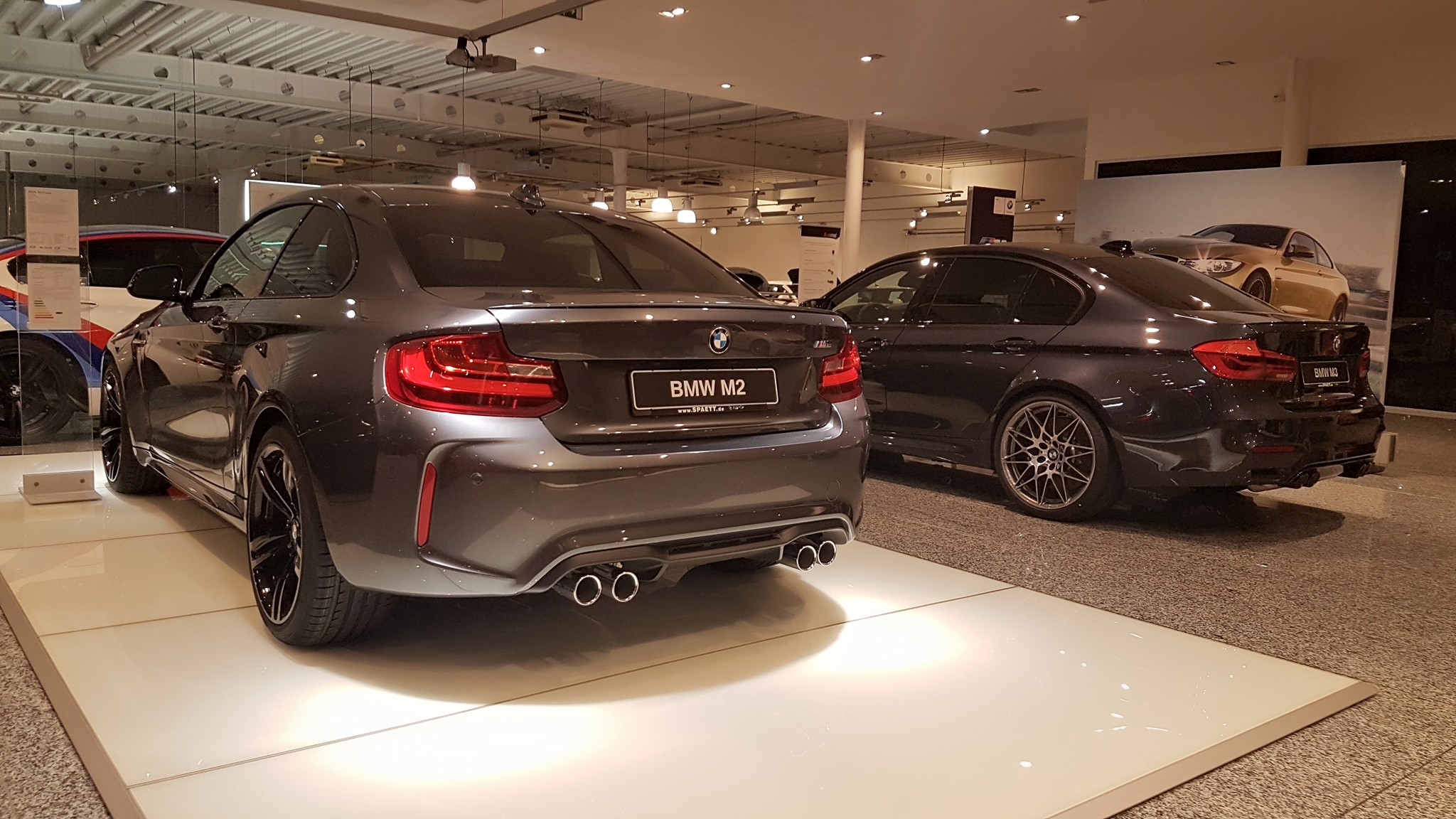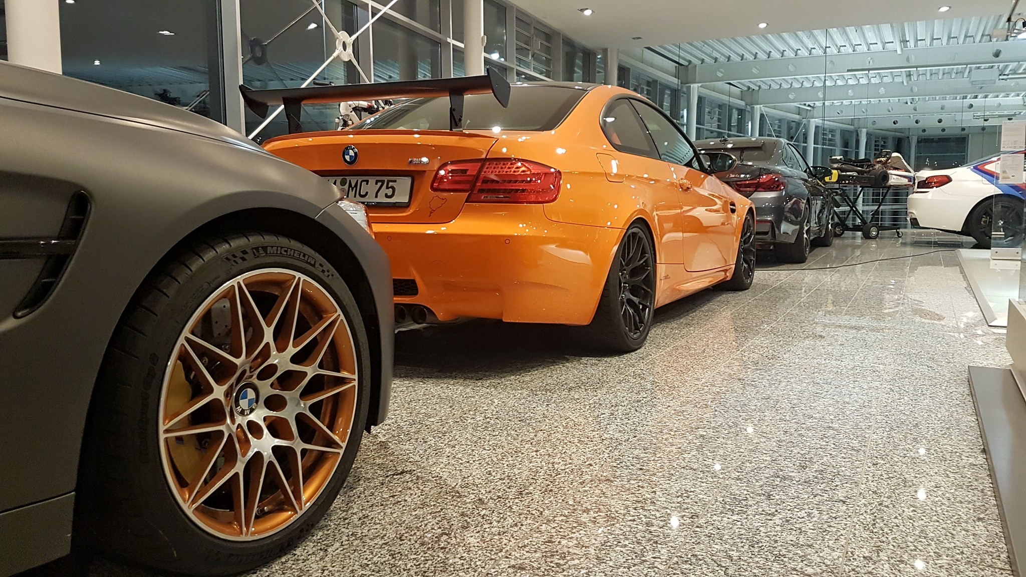 Bei BMW Spaett in Ismaning steht der feuerorange BMW M4 GTS in äußerst exklusiver Gesellschaft, denn neben dem Unikat finden sich auch ein in identischer Farbe gehaltenes Exemplar des Vorgängers M3 GTS, ein Sondermodell 30 Jahre M3 in Macao Blue, ein graues M2 Coupé und zwei weitere M4 GTS in Frozen Dark Grey und Mineralgrau im äußerst exklusiv bestückten Showroom des Händlers.