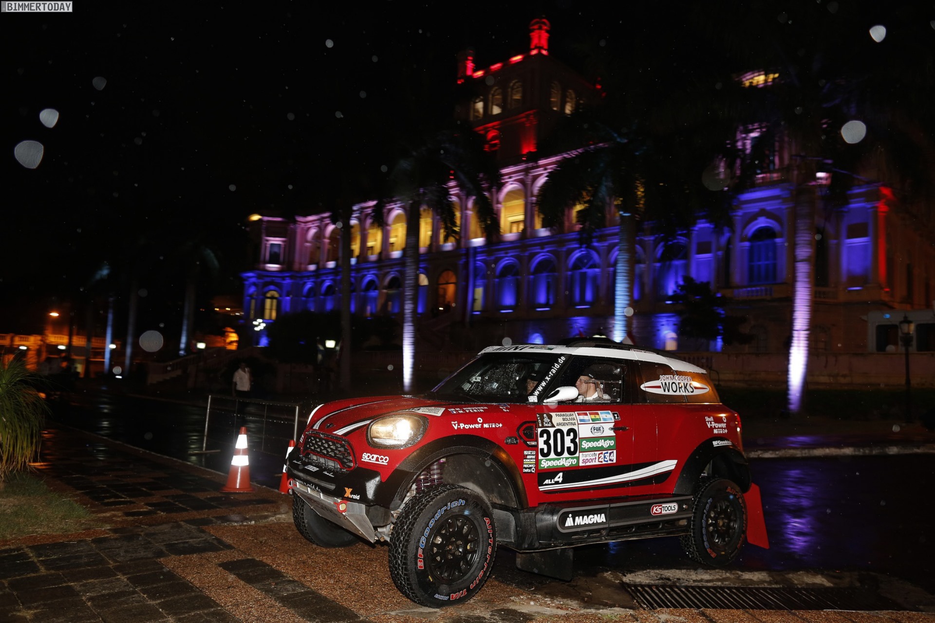 Die Rallye Dakar 2017 ist unterwegs! Am ersten Tag meisterte das Feld die 454 Kilometer von Paraguays Hauptstadt Asunción ins argentinische Resistencia, wobei eine 39 Kilometer lange Special Stage in erster Linie zum Festlegen der Start-Reihenfolge für die zweite Etappe diente. Die acht gestarteten MINI John Cooper Works Rally im Look der neuen Countryman-Generation F60 absolvierten die erste Prüfung ohne Probleme traten aber auch nicht mit übermäßig schnellen Zeiten in Erscheinung.