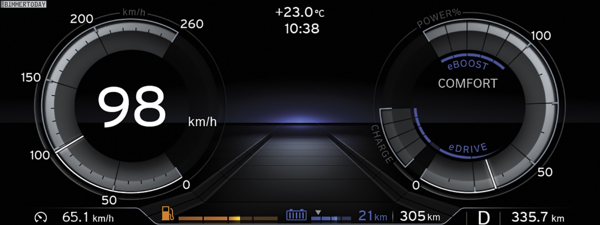 Welche Inhalte der Fahrer dabei zu sehen bekommt, hängt in erster Linie vom gewählten Fahrmodus ab. Im üblicherweise zumindest direkt nach dem Start des Fahrzeugs genutzten Comfort-Modus erinnert die Anzeige des multifunktionalen Instrumenten-Displays in BMW 3er und 4er an die klassischen BMW-Rundinstrumente, die animierte Hervorhebung der aktuell gefahrenen Geschwindigkeit erleichtert aber auch in dieser Ansicht das schnelle Erfassen der wichtigsten Informationen.