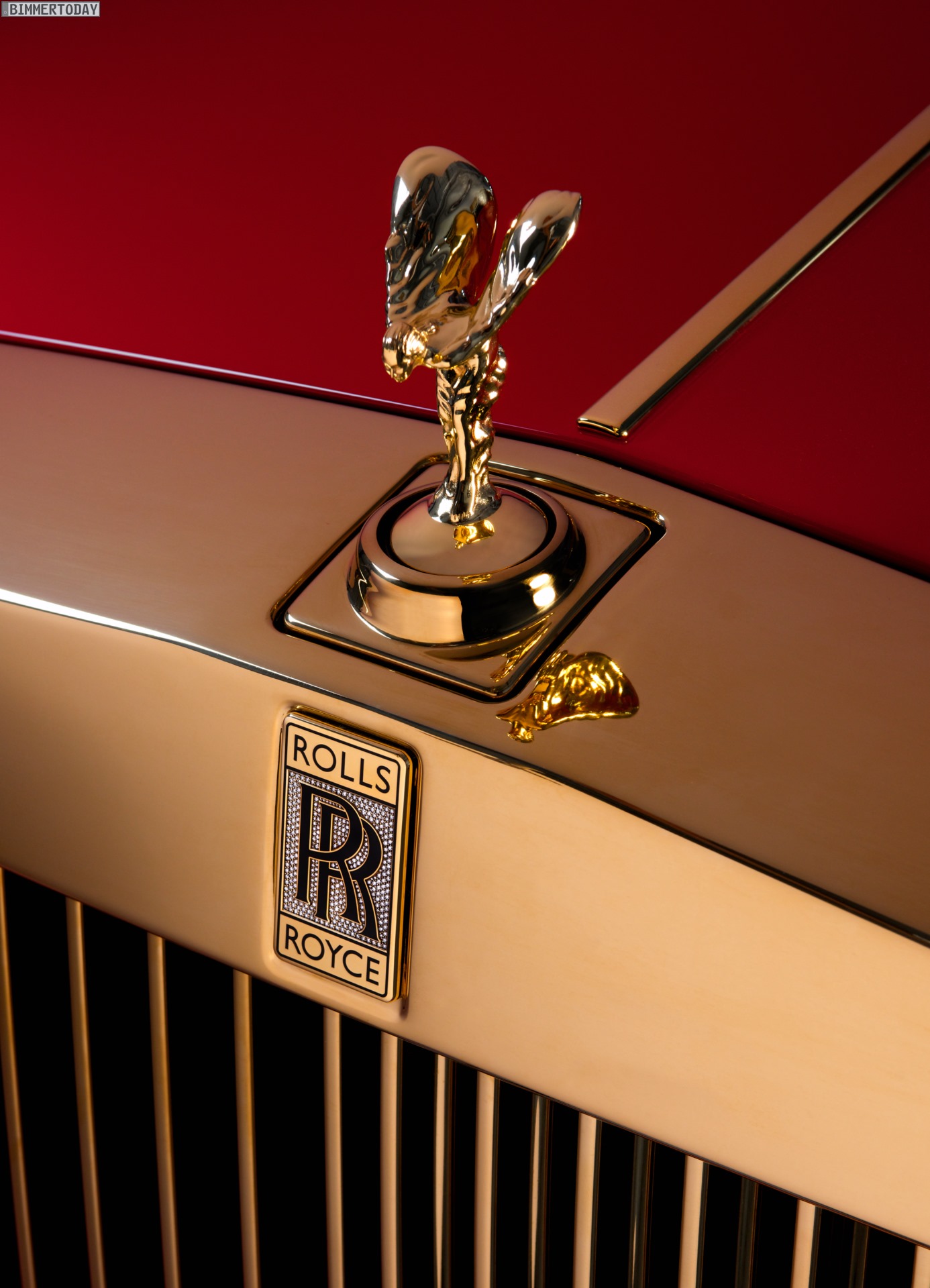 Bevor die goldene Lackierung für den Rolls-Royce Phantom den Ansprüchen der Luxus-Experten in Goodwood gerecht werden konnte, waren acht Anläufe und die Anschaffung neuen Equipments erforderlich. Das Ergebnis ist eine Lackierung mit zehn Schichten, die neben Gold auch Glas und Aluminium enthält und insgesamt 250 Prozent mehr Material verwendet als die übliche Phantom-Lackierung. Dass auch die über dem goldenen Pantheon-Grill und einem zusätzlich mit Diamanten verzierten Rolls-Royce-Logo thronende Spirit of Ecstasy aus Gold mit einem Feingehalt von 24 Karat gefertigt wurde, versteht sich angesichts des in Goodwood gepflegten Perfektionismus von selbst.