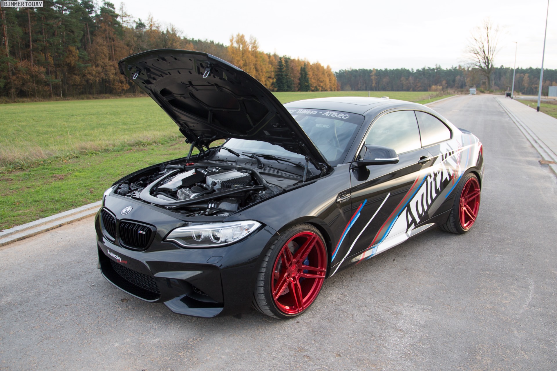 BMW M2 F87 von Aulitzky Tuning (Foto: StreetPix)Mit diesen Eckdaten stellt der Aulitzky-M2 allerdings nicht nur die 370 PS starke Serie in den Schatten, auch der ab Werk mit 431 bis 450 PS erhältliche Biturbo-Reihensechszylinder S55 benötigt für 620 PS eine gründliche Überarbeitung. Unter anderem kommen neue Turbolader, Downpipes, ein eventuri-Ansaugkit aus Carbon, eine Remus-Abgasanlage und eine Wasser-Methanol-Einspritzung zum Einsatz, um das Triebwerk in die nächsthöhere Leistungsklasse vorstoßen zu lassen.