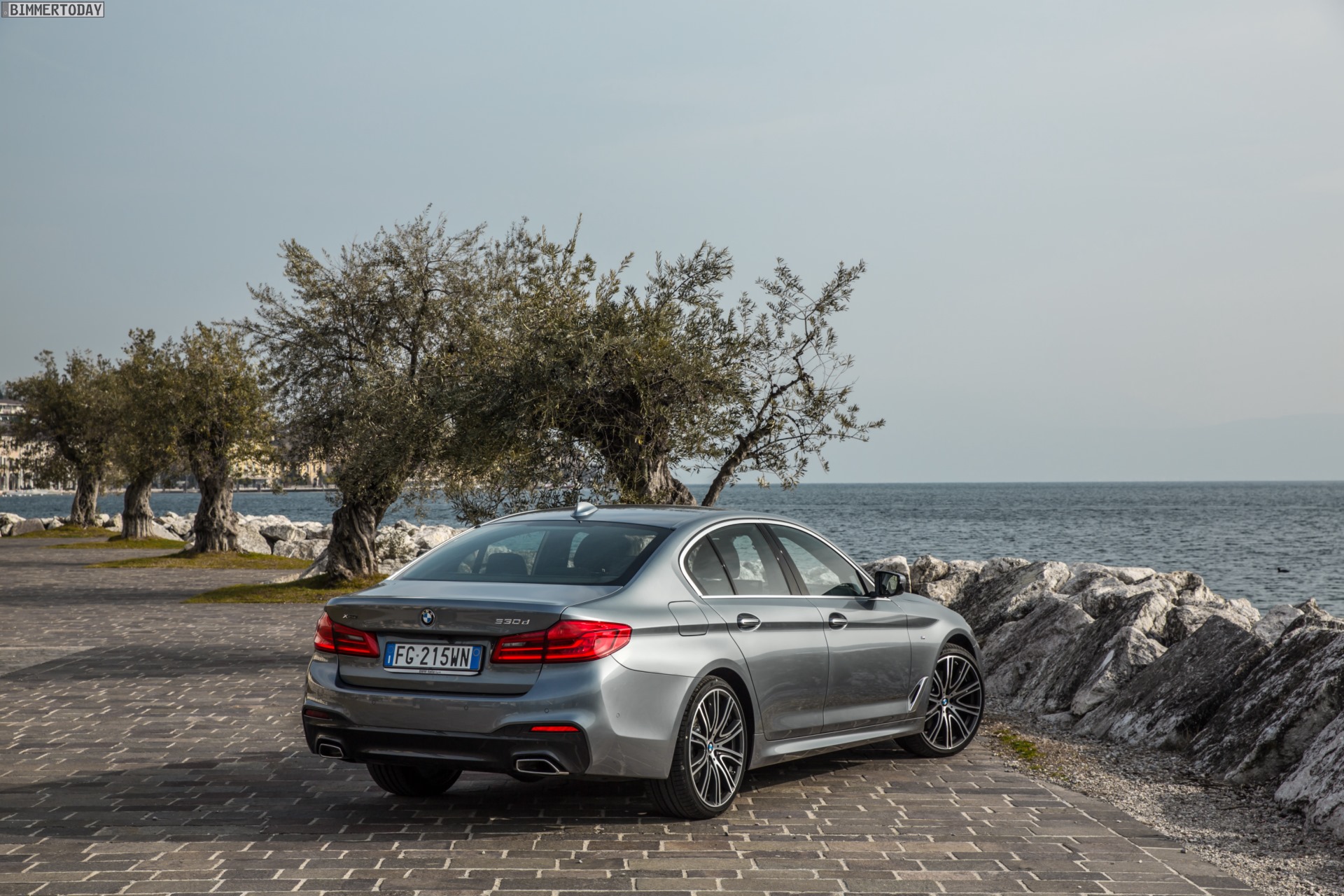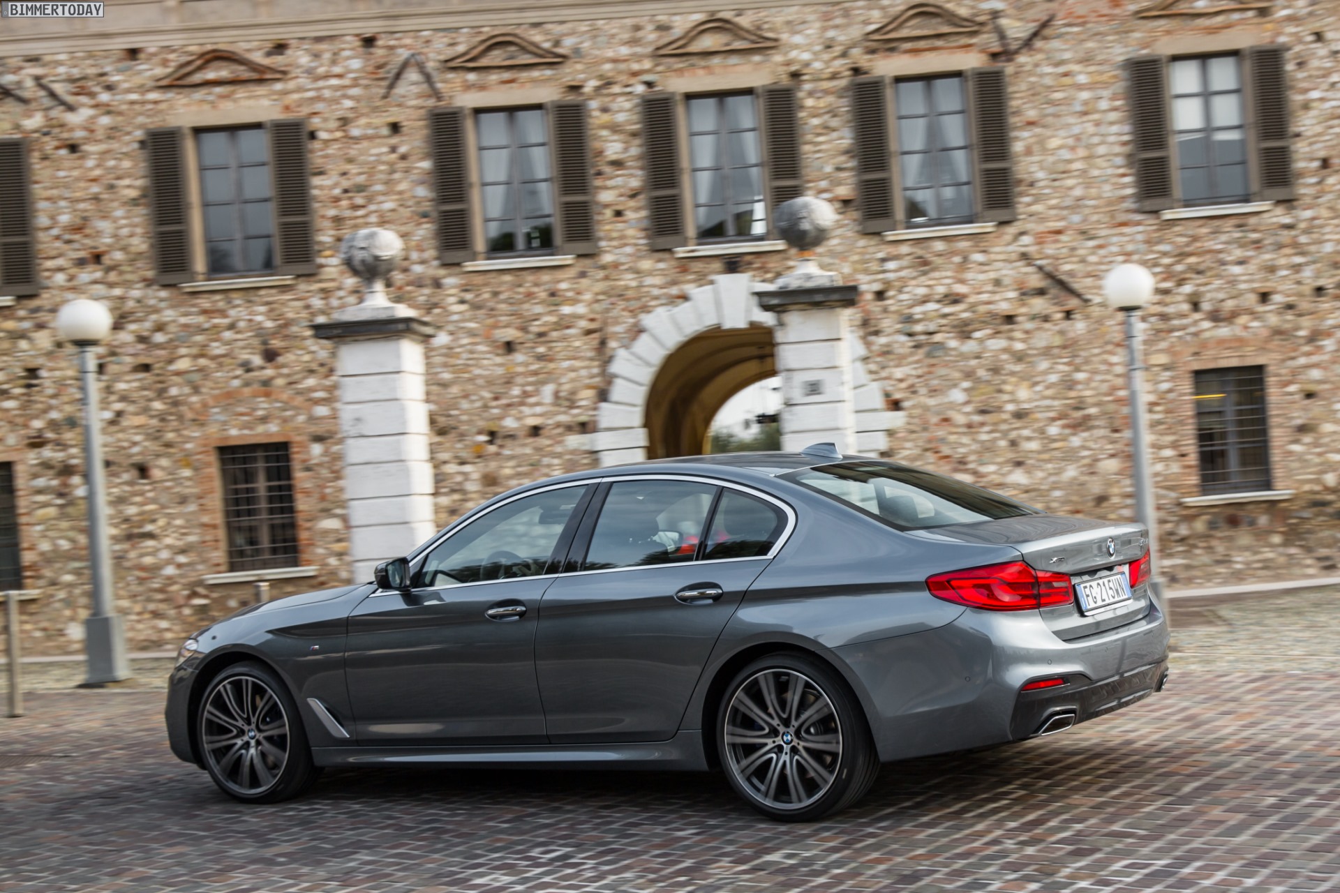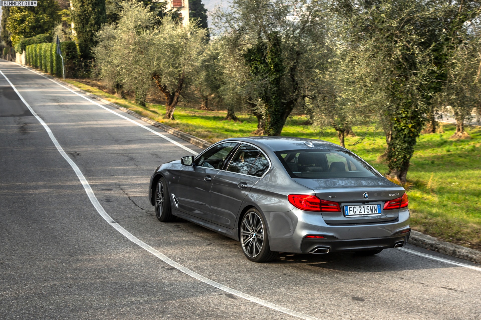 Eine neue Foto-Galerie aus Italien zeigt uns den BMW 5er G30 mit M Sportpaket und Lackierung in Bluestone metallic aus vielen weiteren Perspektiven. Die Limousine feierte am vergangenen Samstag auch auf der Apenninen-Halbinsel ihren offiziellen Marktstart und soll schon bald in vielen tausend Exemplaren über die Straßen Südeuropas rollen. Weil der Großteil des italienischen BMW-Absatzes im kühlen und stellenweise gebirgigen Norden über die Bühne geht, gehört Italien übrigens zu den Märkten mit besonders hohem xDrive-Anteil.