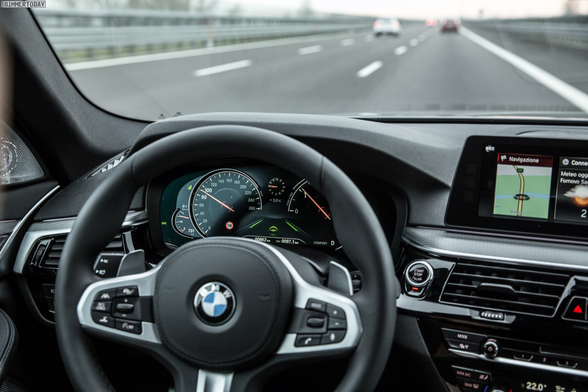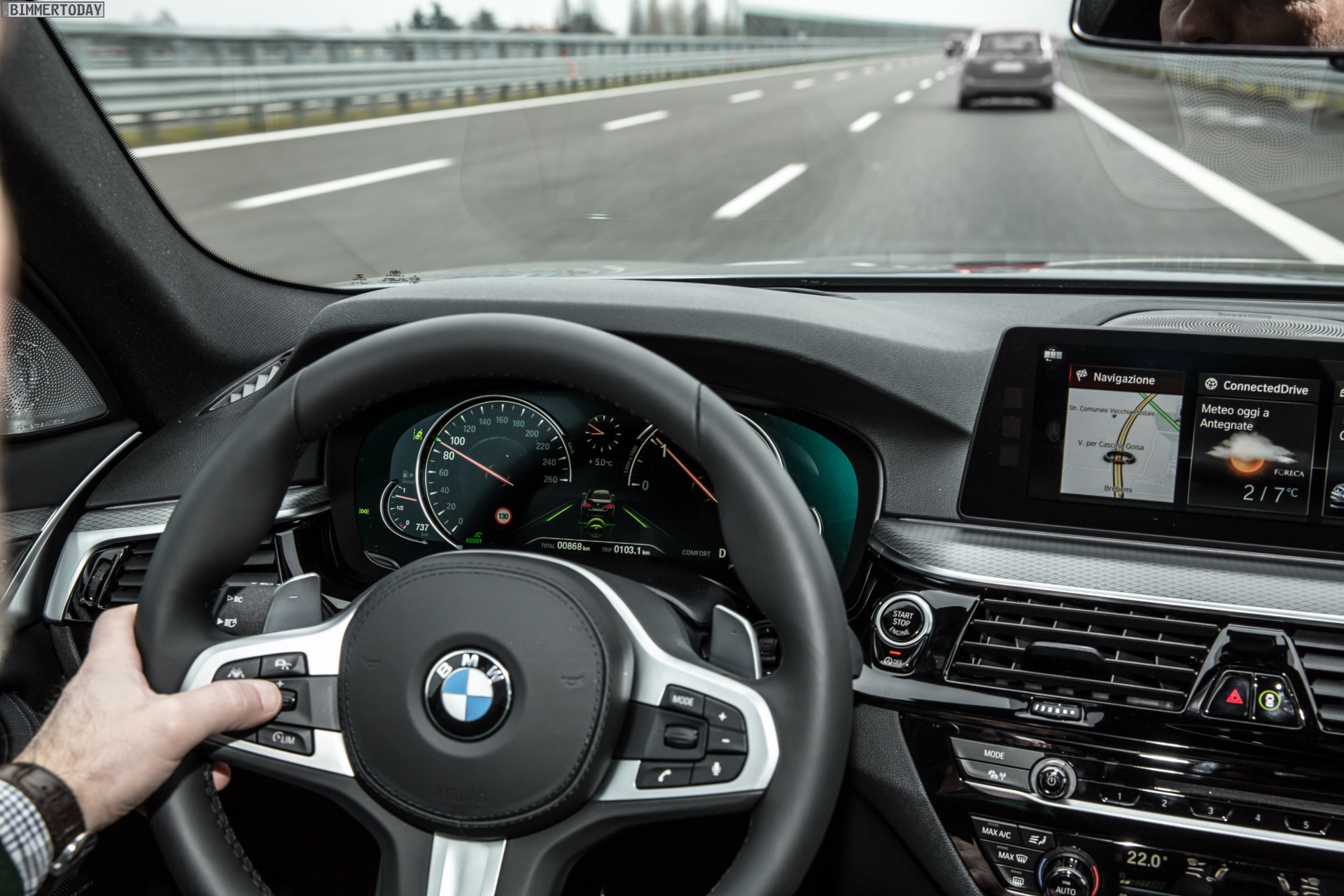 Vor diesem Hintergrund ist es keine Überraschung, dass auch die offiziellen Fotos von BMW Italien den BMW 5er G30 als 530d xDrive mit Allradantrieb zeigen. Der souveräne Sechszylinder-Diesel und der erstmals auch mit der etwas kryptisch als Integral-Aktivlenkung bezeichneten Allradlenkung kombinierbare Allradantrieb harmonieren auf kurvigem Untergrund hervorragend und machen den siebten 5er zu einem der handlichsten xDrive-BMW aller Zeiten.