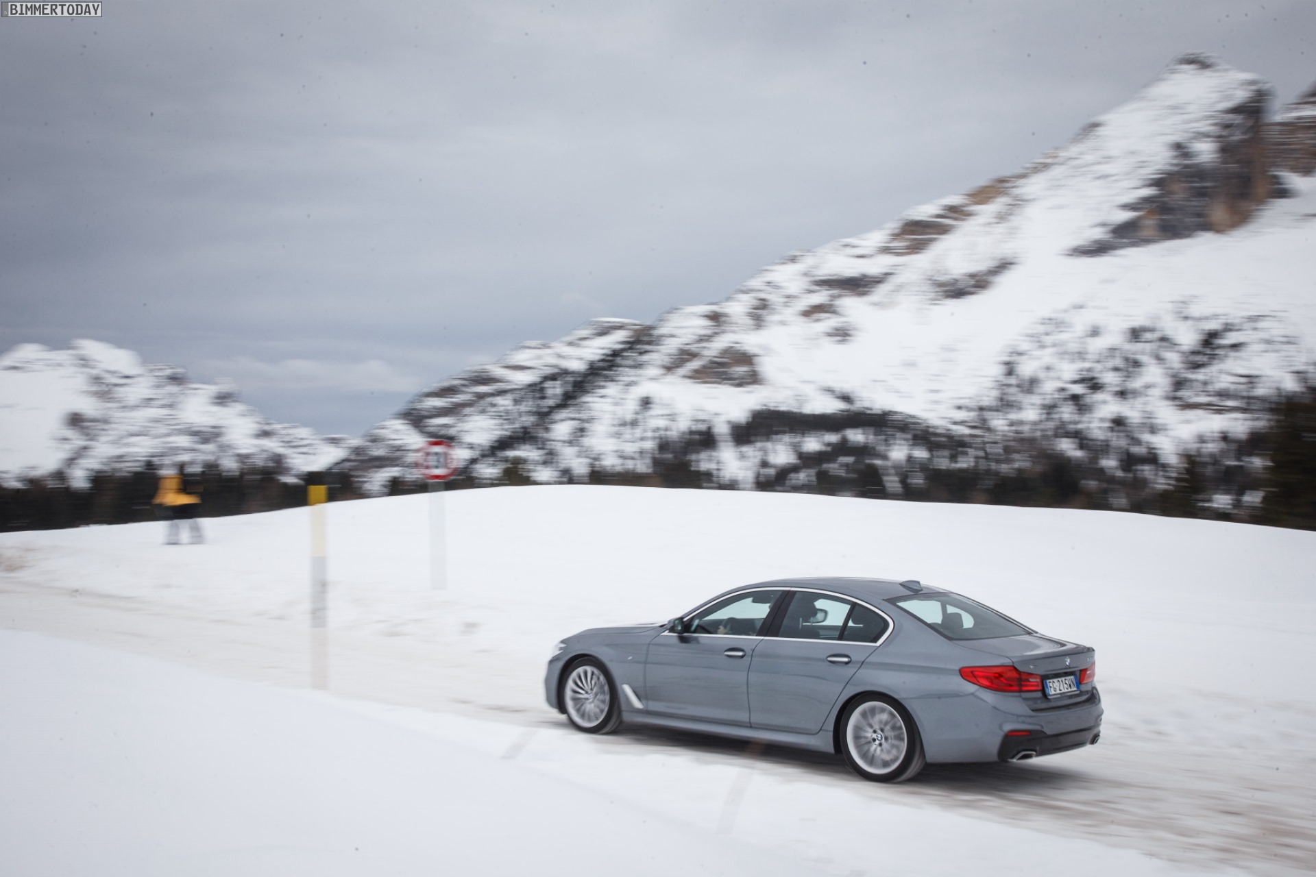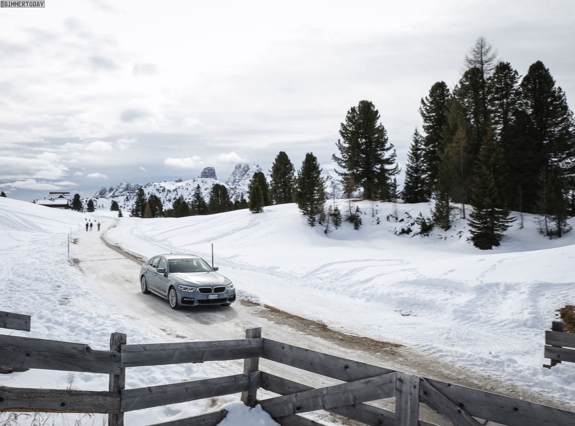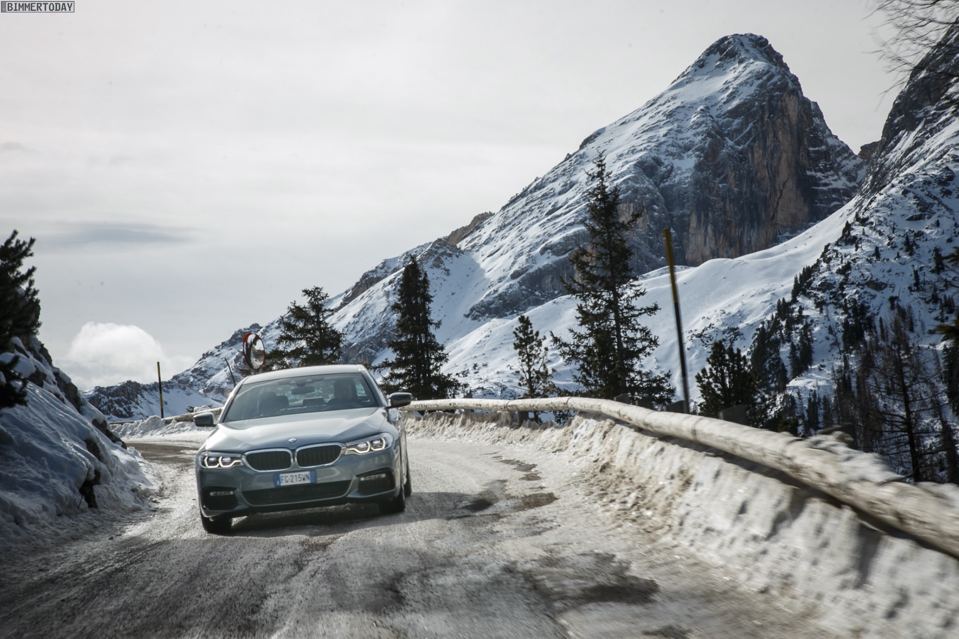 Nachdem die Italiener erst vor wenigen Tagen einige neue Fotos vom BMW 5er G30 in sommerlicher Umgebung veröffentlicht haben, folgen nun die ersten Bilder der siebten 5er-Generation auf verschneiten Straßen. Im Winter Nord-Italiens war der Allradantrieb der Limousine gefragt, denn bei der xDrive Experience in den Dolomiten war Schnee der deutlich häufiger anzutreffende Untergrund als trockener Asphalt.