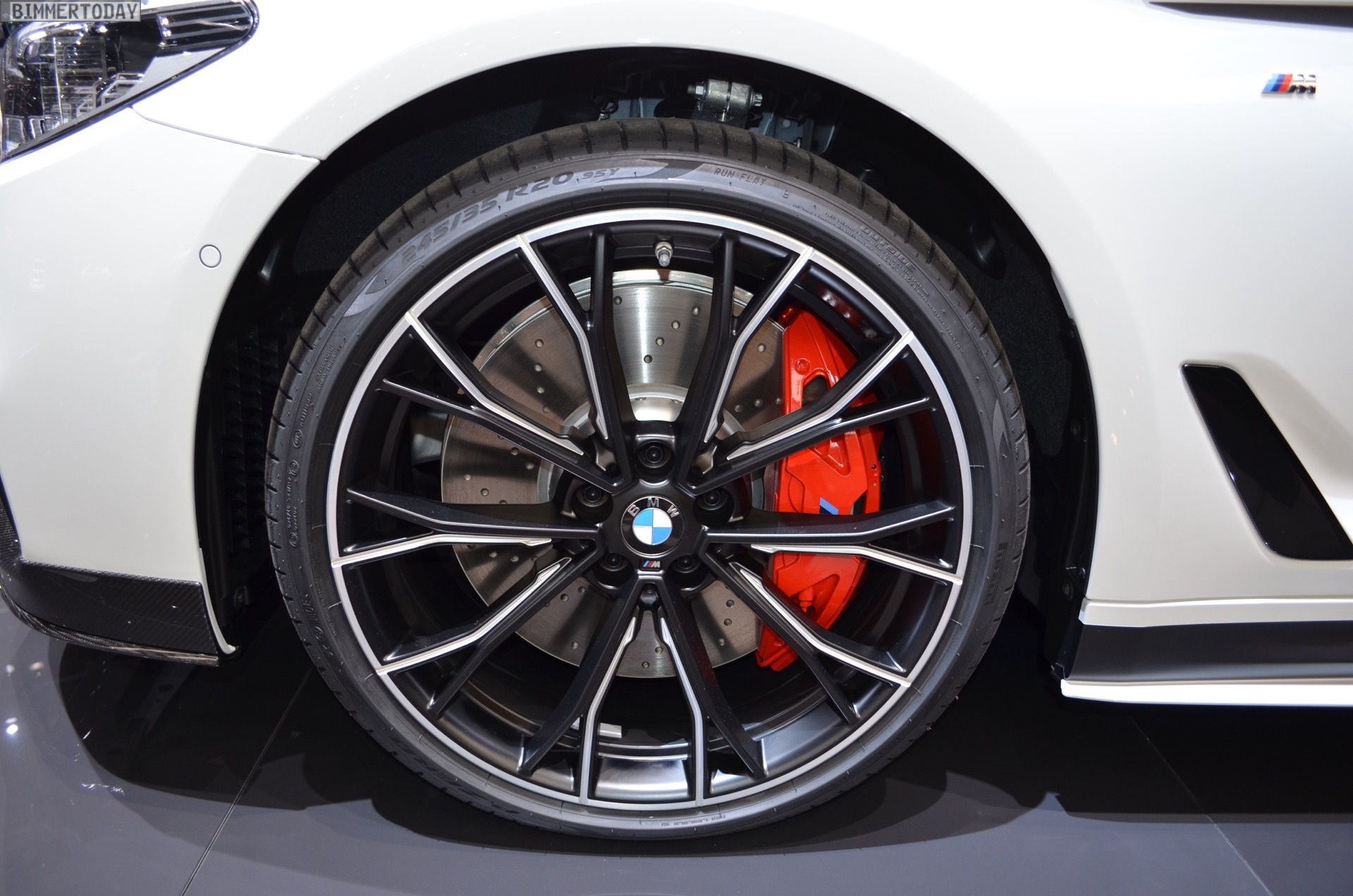 Nicht fehlen dürfen natürlich auch besonders dynamisch gestaltete Felgen. Die 20 Zoll großen Aluminium-Schmiederäder nutzen ein auf zwei Ebenen ausgeführtes Doppelspeichen-Design und sind sowohl in Orbitgrau als auch im Bicolor-Look erhältlich. Hinter den mit 245 und 275 Millimeter breiten Reifen bezogenen Leichtmetallrädern arbeitet die für alle Motorisierungen erhältliche M Performance Sportbremse auf ihren Einsatz. Die Bremsanlage ist mit Vier-Kolben-Festsattelbremse vorn und Einkolben-Faustsattel hinten auf hohe thermische Belastungen ausgelegt und soll auch bei anspruchsvoller Nutzung mit Ausdauer und konstanter Verzögerung punkten.