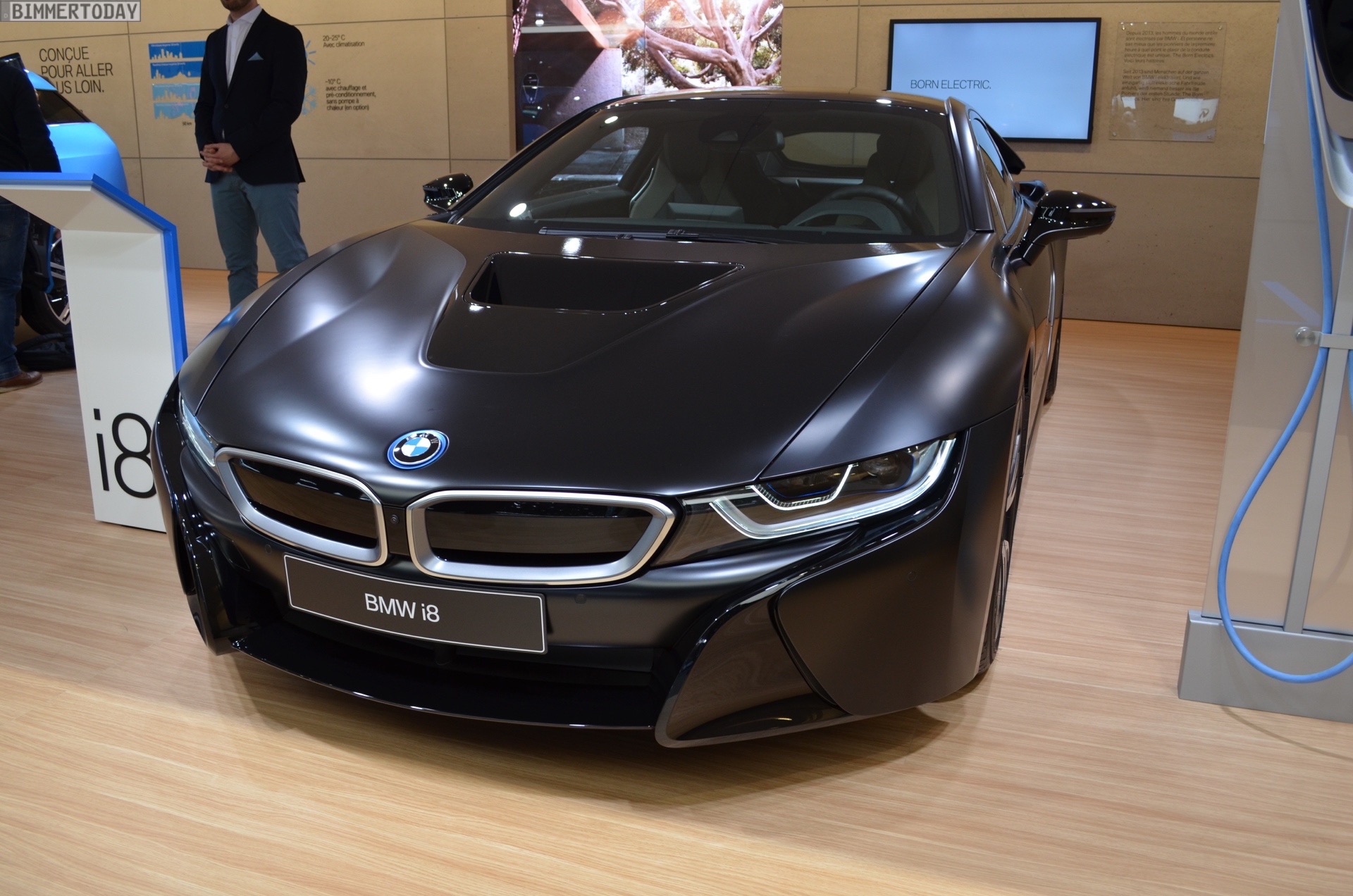 Wie schon auf den letzten großen Messen hat BMW i auch auf dem Genfer Autosalon 2017 seine Sonderedition des i8 präsentiert. Die BMW i8 Protonic Frozen Black Edition setzt dabei auf eine matte Lackierung, die im Alltag bekanntlich oft noch mehr Eindruck macht als auf Hochglanz polierte Fahrzeuge – und die im Fall des Flügeltürers noch etwas spezieller wirkt, weil die Elemente des Black Belt wie bei allen übrigen i8 weiterhin in glänzendem Schwarz ausgeführt sind. Die i8-typischen Akzente in Frozen Grey bleiben natürlich ebenfalls erhalten.