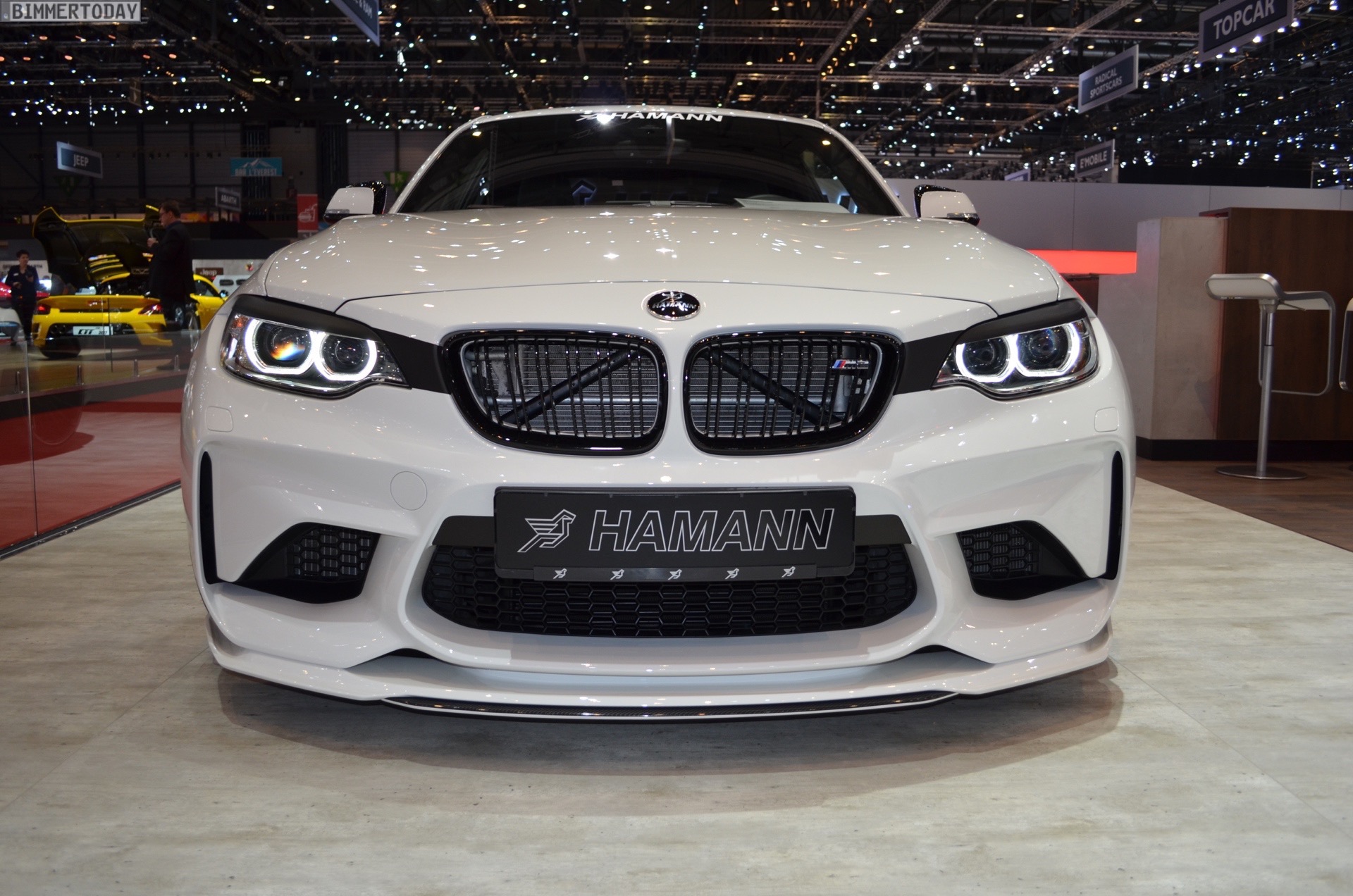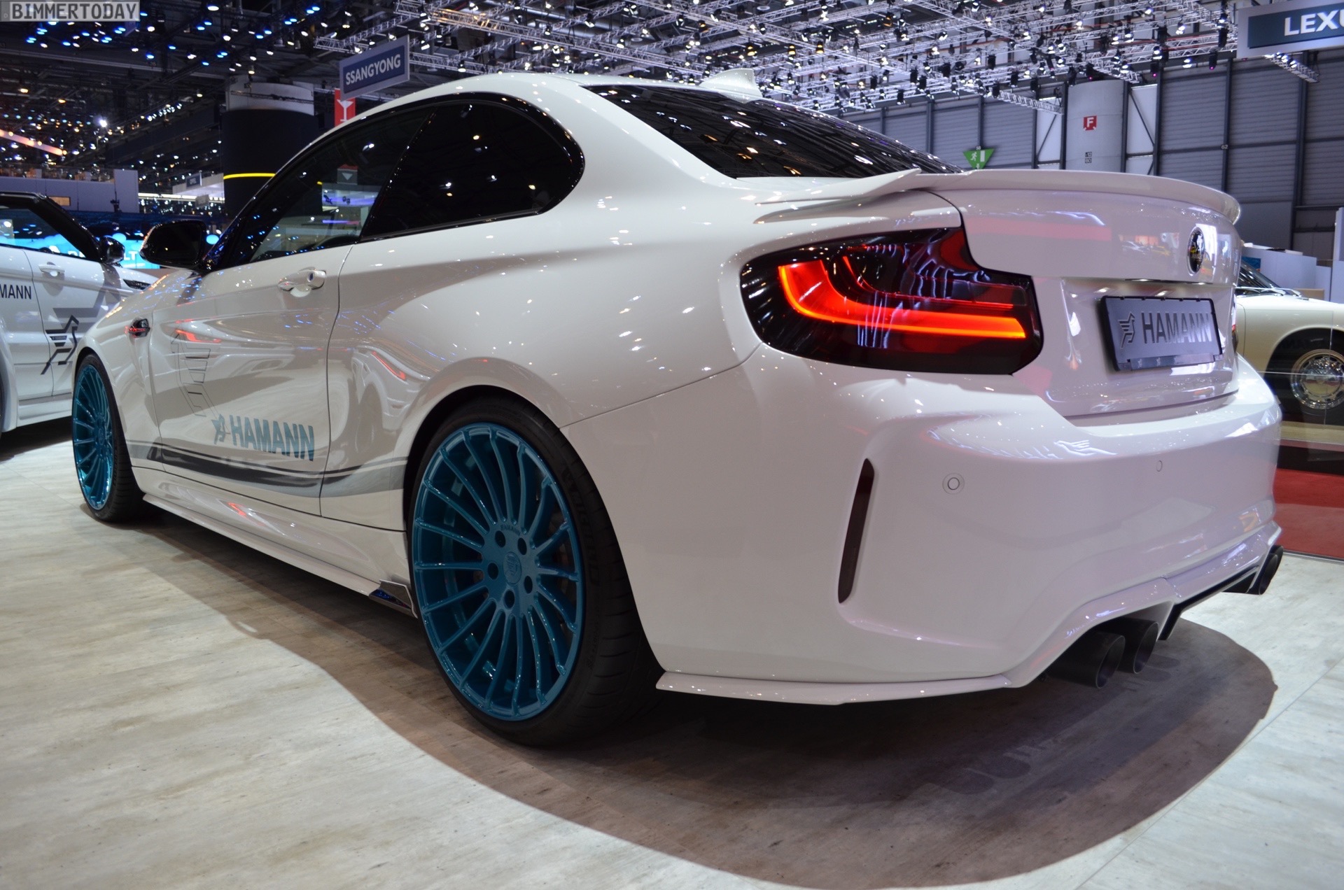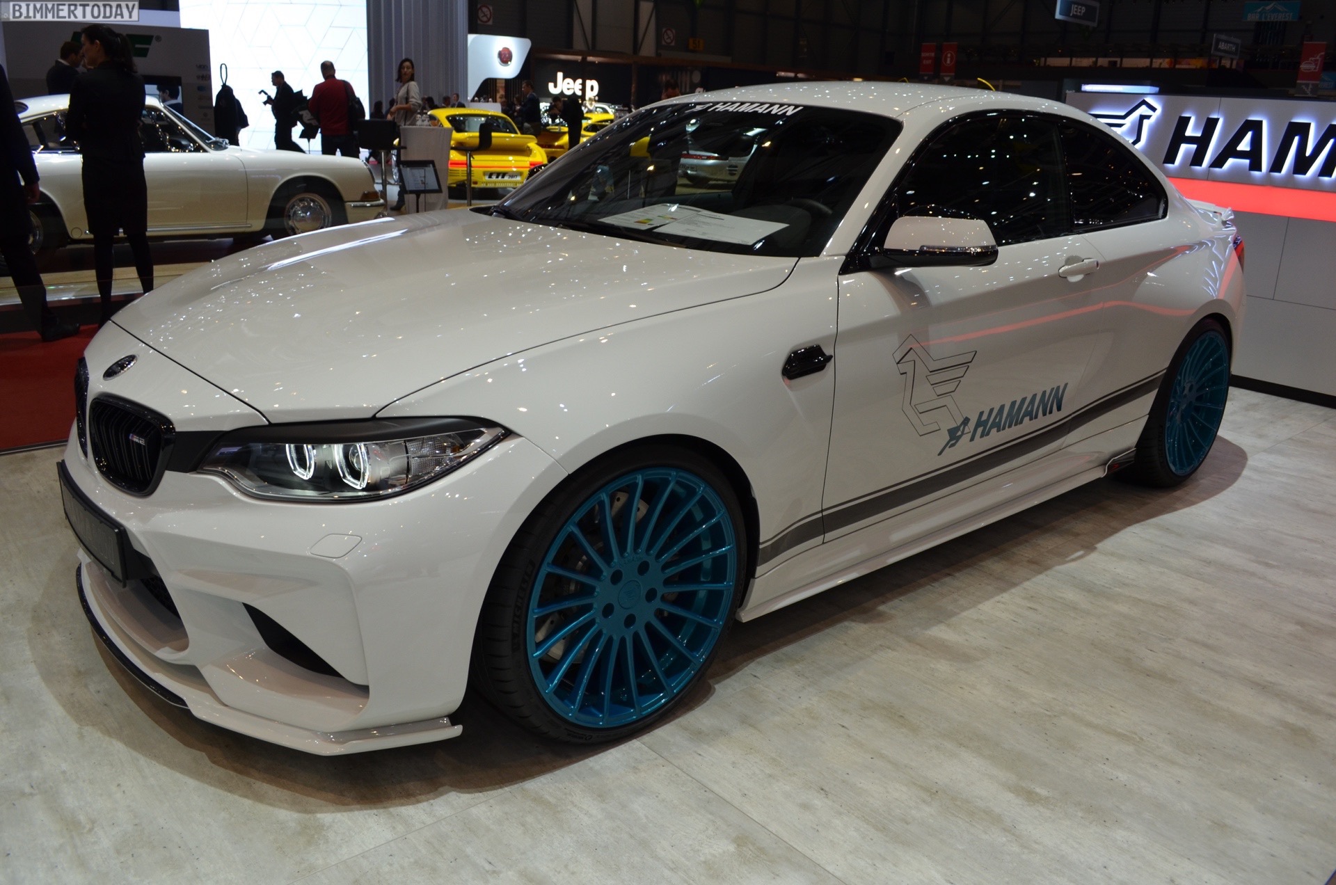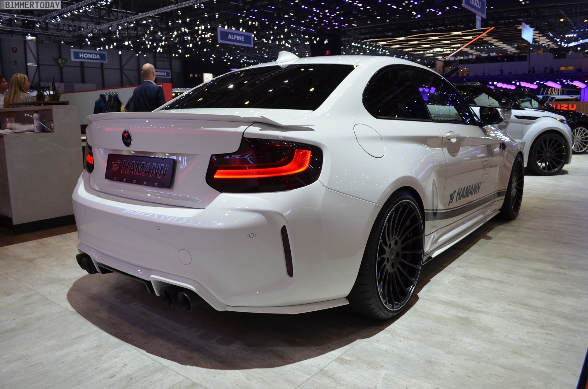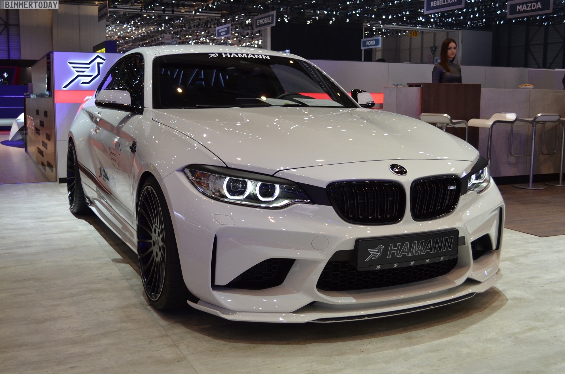Wenige Wochen nach seinem Debüt in Zürich durfte der von Hamann Motorsport veredelte BMW M2 natürlich auch auf dem Genfer Autosalon 2017 nicht fehlen. Der Kompaktsportler trägt dabei zahlreiche Tuning-Komponenten, die seine schon ab Werk imponierene Breite zusätzlich betonen und ihn noch mächtiger wirken lassen. Eine weitere Aero-Lippe für die Frontschürze, ein Aufsatz für die Heckschürze, Seitenschweller im gleichen Stil und ein Heckspoiler als Aufsatz für die Kofferraum-Klappe verleihen dem Coupé noch mehr Motorsport-Flair.