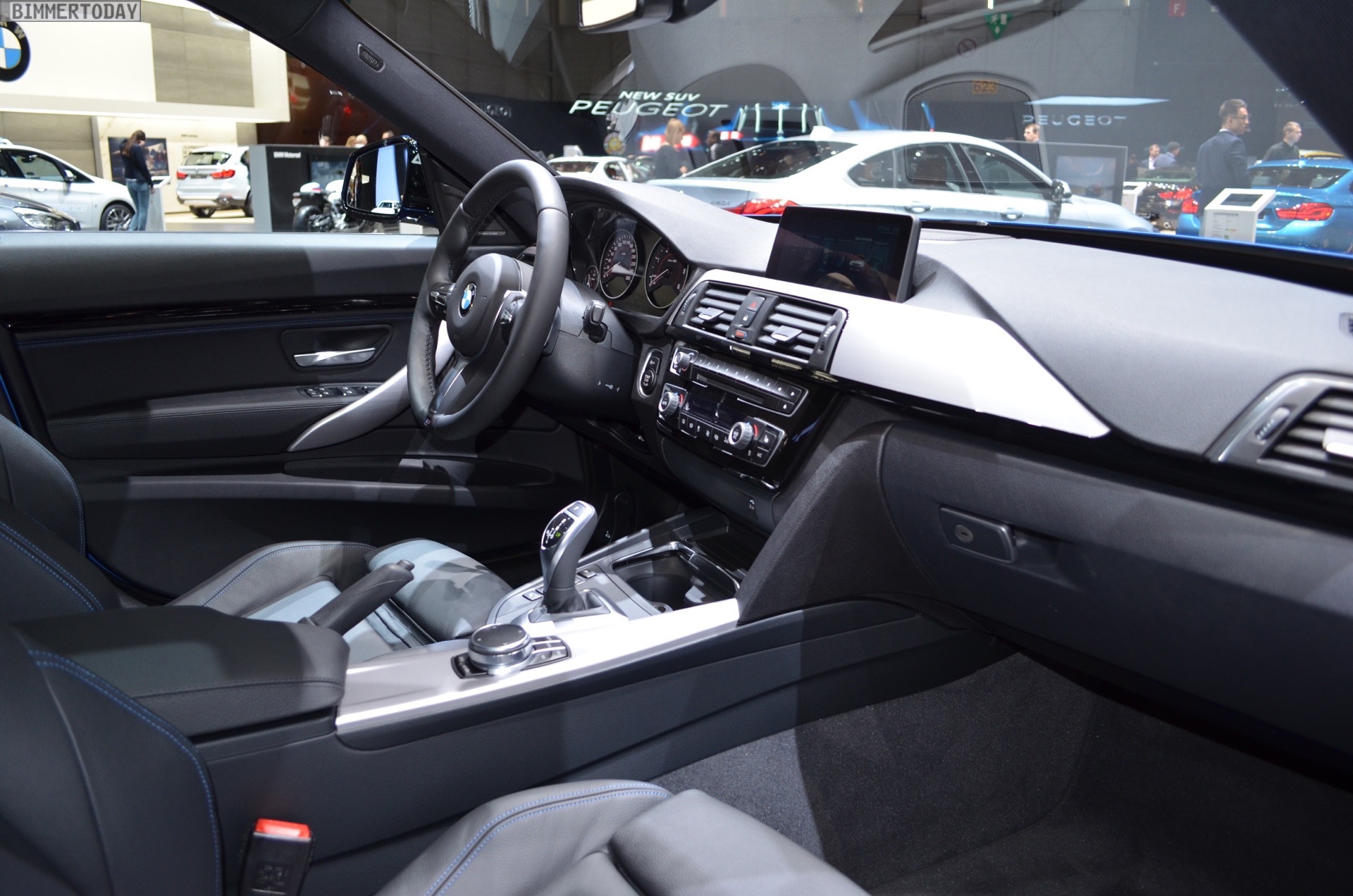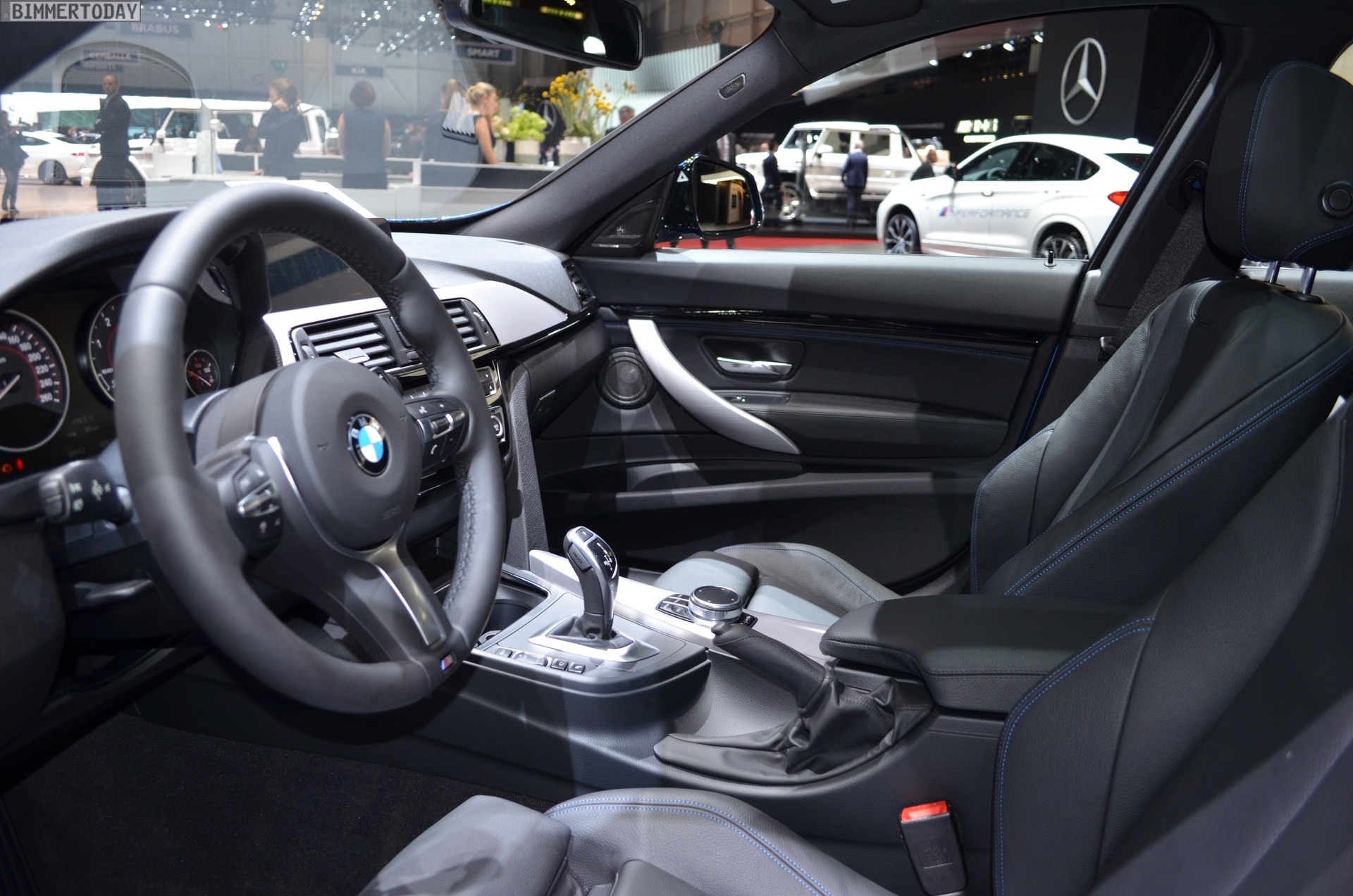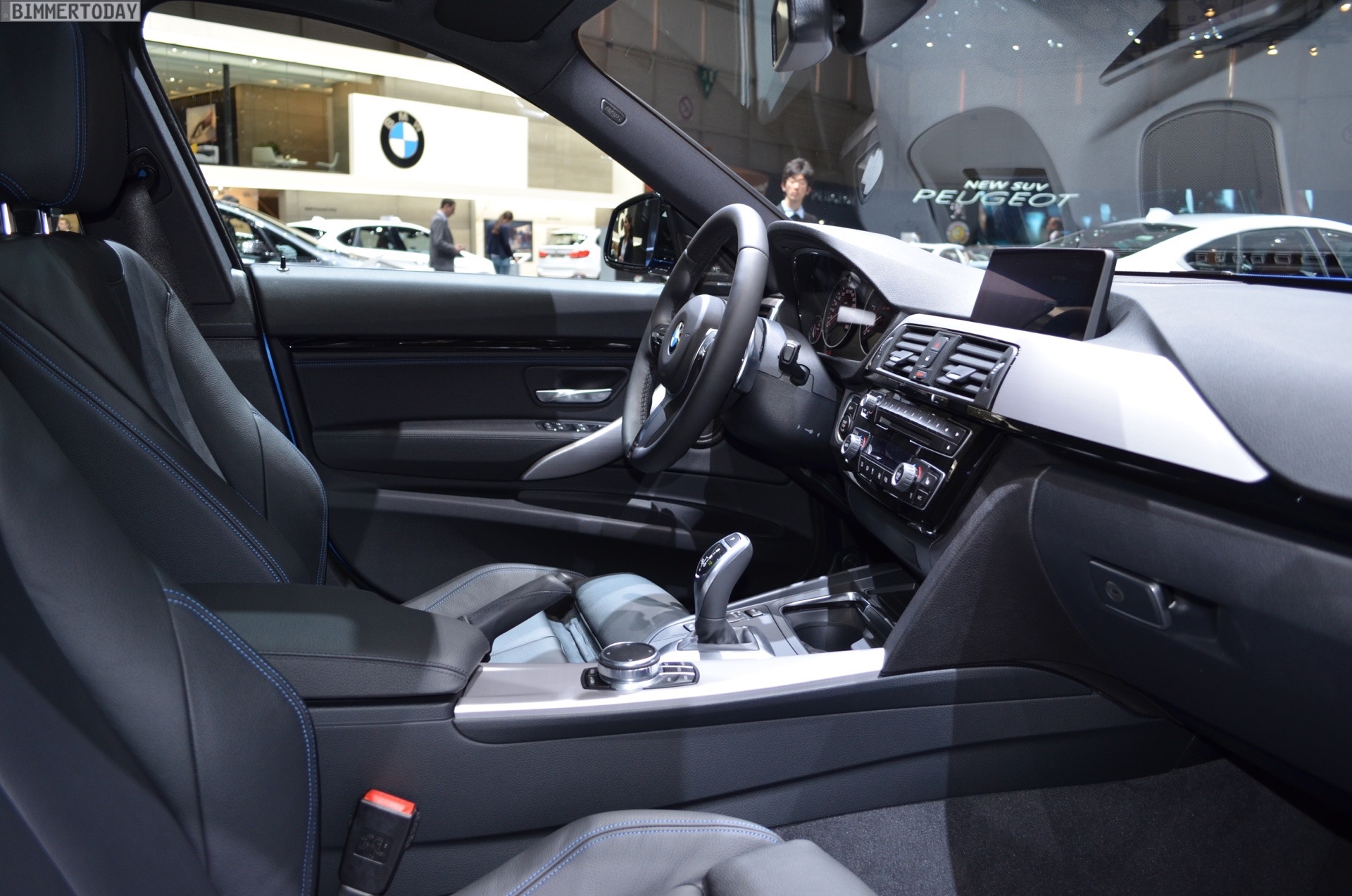 Im Innenraum trägt das BMW 3er GT Facelift vom Genfer Autosalon 2017 unter anderem Sportsitze mit der Lederaustattung Dakota in Schwarz, wobei blaue Kontrastnähte die Außenfarbe wieder aufgreifen und auch das Interieur noch etwas sportlicher wirken lassen. Sportlenkrad, Navigationssystem Professional und das Harman/Kardon Soundsystem runden den hochwertigen Eindruck des starken Gran Turismo ab.