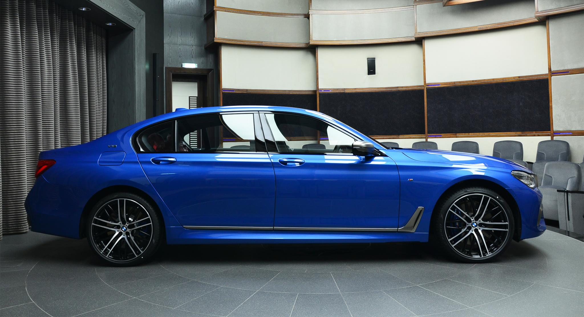 Seit wenigen Jahren gehört Estorilblau wieder zu den Bestsellern im BMW-Programm, aber im Fall der 7er-Reihe ist die Lackierung nur über BMW Individual erhältlich: Das normale Farbprogramm für die Luxuslimousine umfasst auch mit M Sportpaket keine derart lebendige Farbe, stattdessen konzentriert sich die Palette nach jahrelanger Erfahrung mit den Vorlieben der Zielgruppe auf eher gedeckte Farbtöne. Dass der aktuelle BMW 7er G11 / G12 auch in Estorilblau ausgesprochen gut aussehen kann, zeigen nun aber einige neue Fotos von BMW Abu Dhabi Motors.