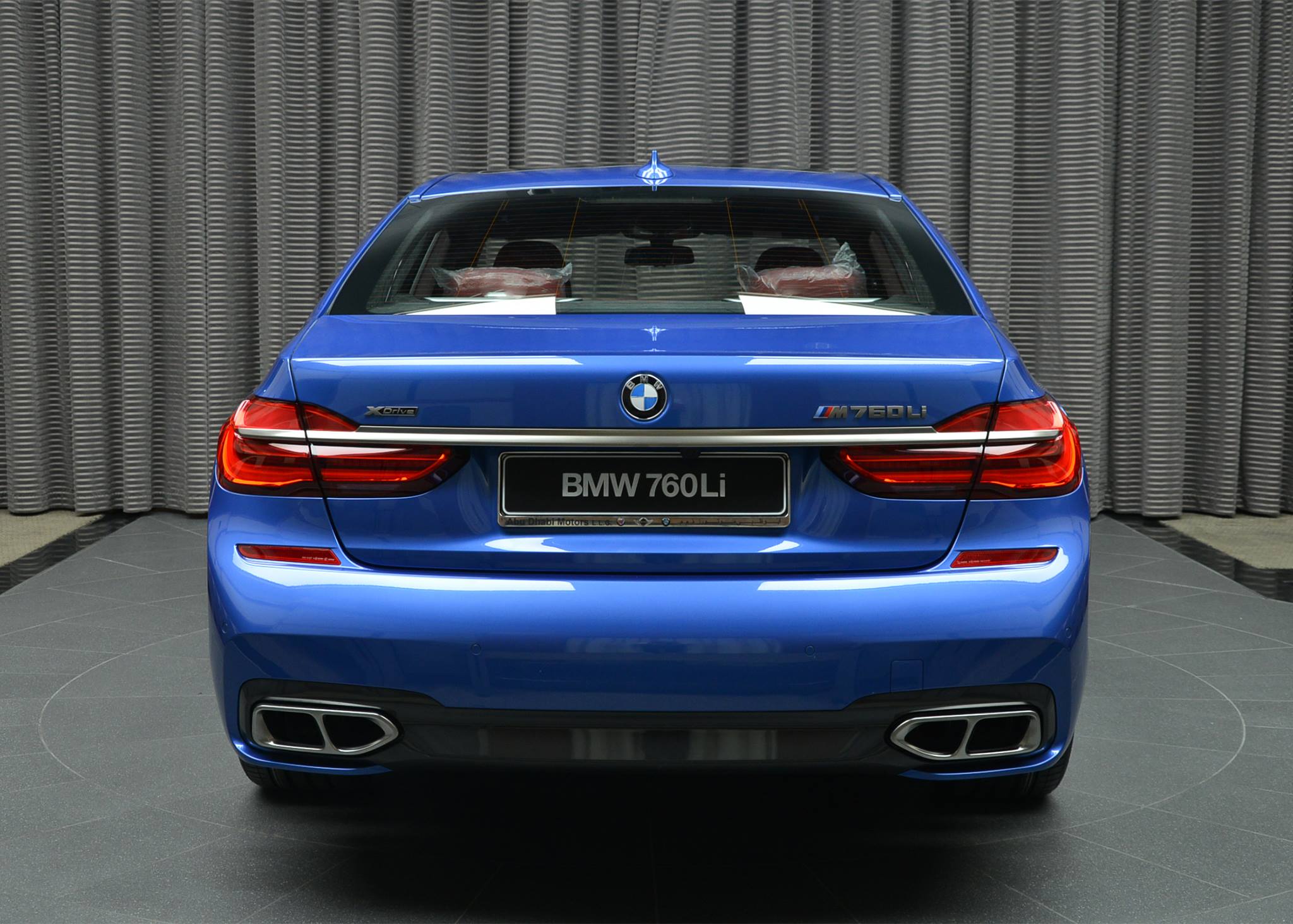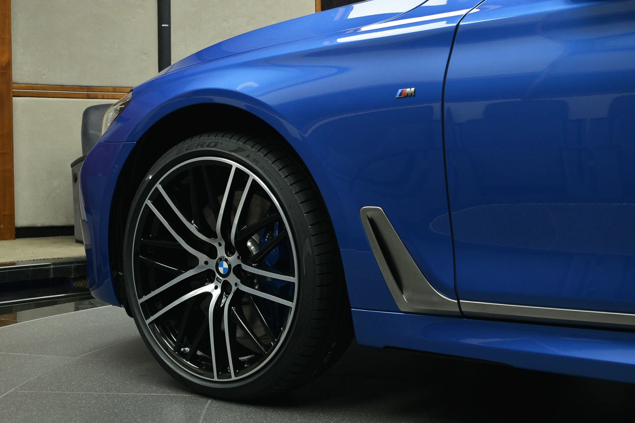 Die große Niederlassung in den Vereinigten Arabischen Emiraten hat einen ihrer ersten BMW M760Li xDrive mit Hilfe von BMW Individual in Estorilblau Metallic bestellt und sorgt so für einen ganz besonderen Hingucker im Showroom. Das von einem V12-Biturbo angetriebene Topmodell der Luxuslimousine ist von Haus aus nicht sonderlich zurückhaltend, sondern sichert sich mit dem speziell modifizierten M Sportpaket samt Akzenten in Cerium Grey ohnehin zusätzliche Aufmerksamkeit. In Kombination mit der extrovertierten Lackierung in Estorilblau wird der BMW M760Li xDrive aber endgültig zu einer Limousine, an deren Sportlichkeit schon auf den ersten Blick kein Zweifel besteht.