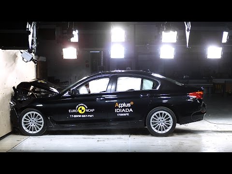 Bei den üblichen Crashtests zeigte die Fahrgastzelle des BMW 5er G30 ihre Stabilität und sorgte gemeinsam mit den Rückhaltesystemen für eine möglichst geringe Belastung der Insassen. Im Seitenaufprall-Test konnte die Limousine sogar die maximale Punktzahl erreichen und alle relevanten Bereiche des Körpers gut vor Verletzungen schützen. Auch im noch härteren seitlichen Pfahl-Test sowie in den beiden Frontal-Tests lieferte der 5er starke Ergebnisse. Wie die Crashtests genau abgelaufen sind, zeigt auch das folgende Video vom Euro NCAP.